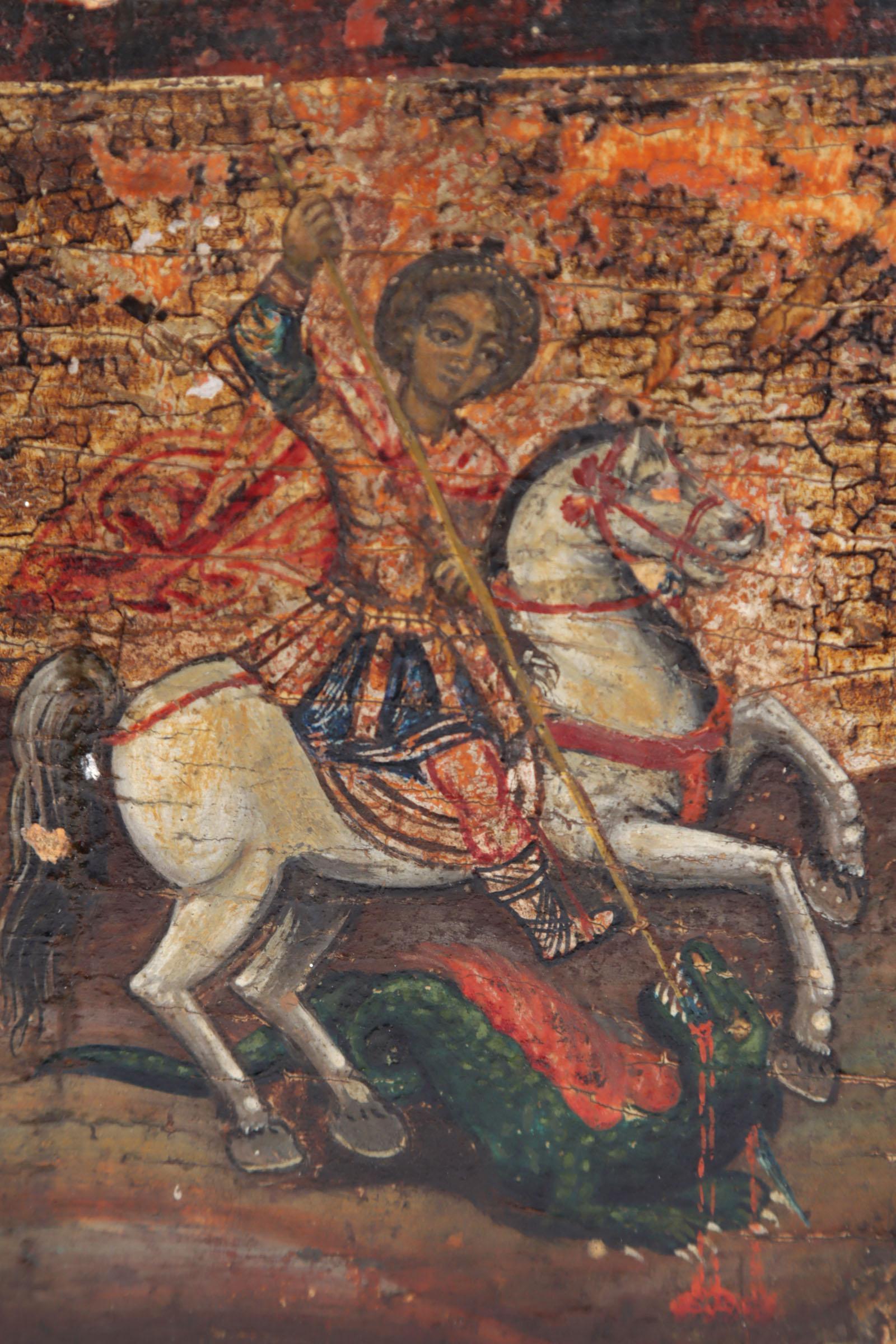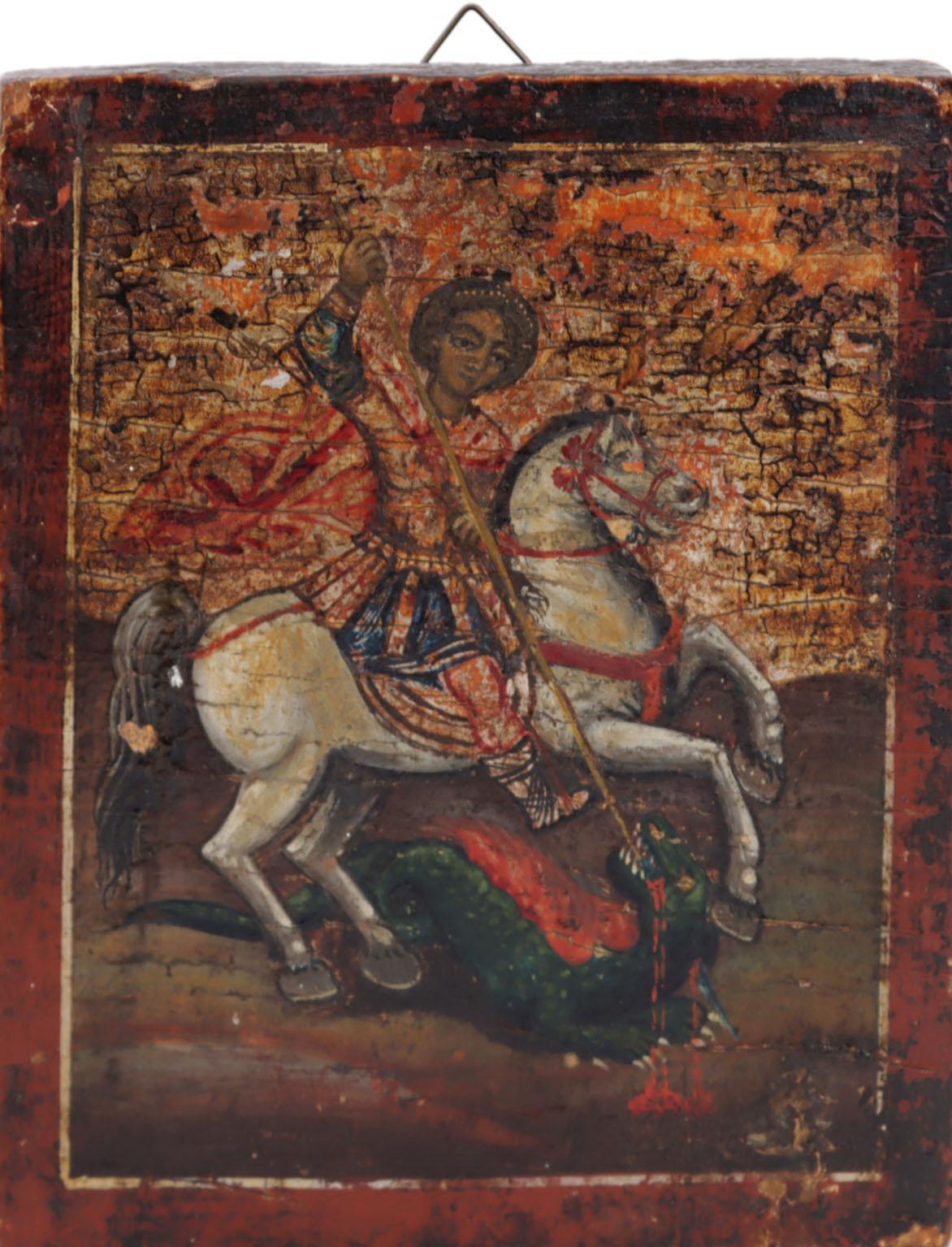 Oude ikoon, St. Joris en de Draak, tempra op paneel, 15 x 12 cm.