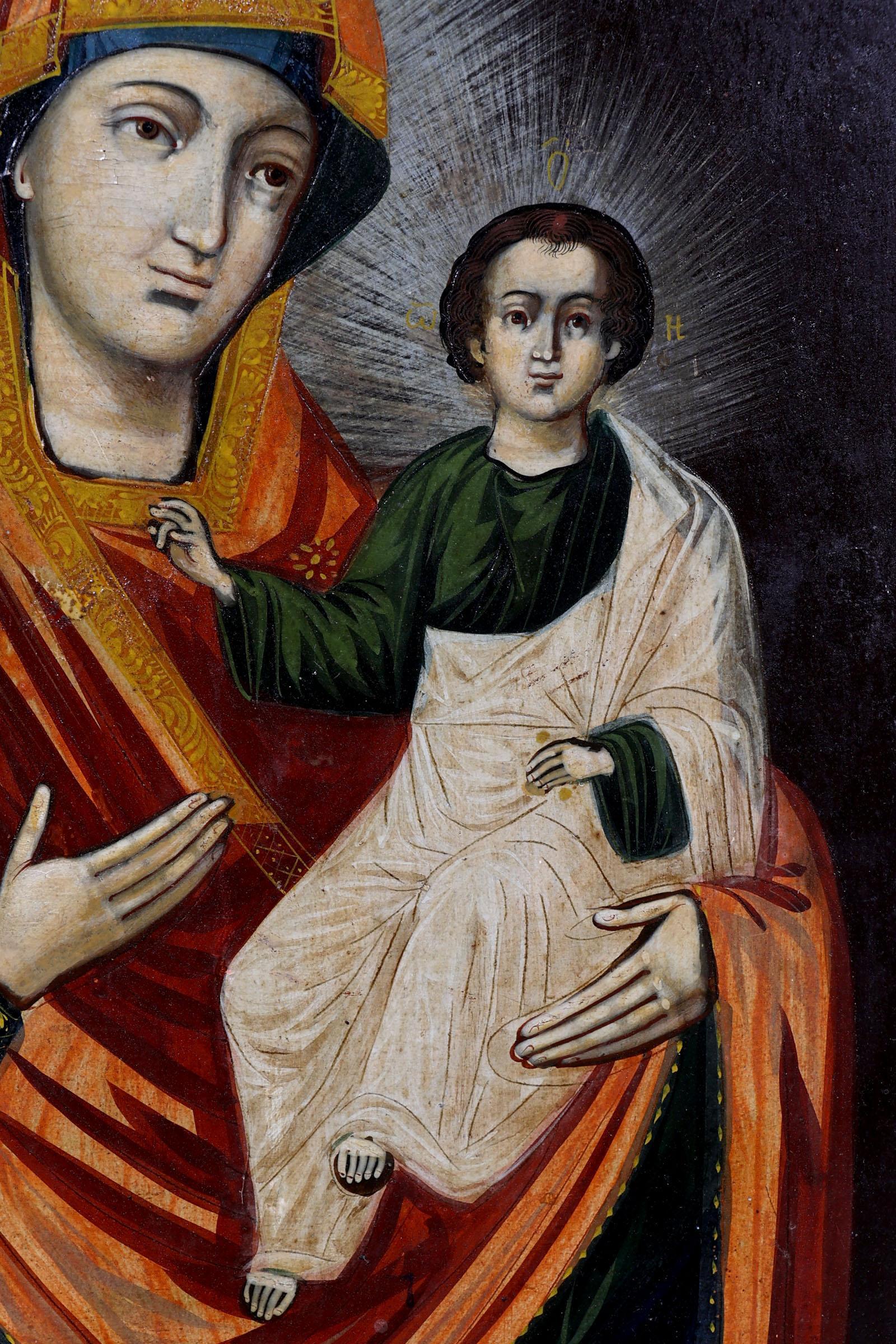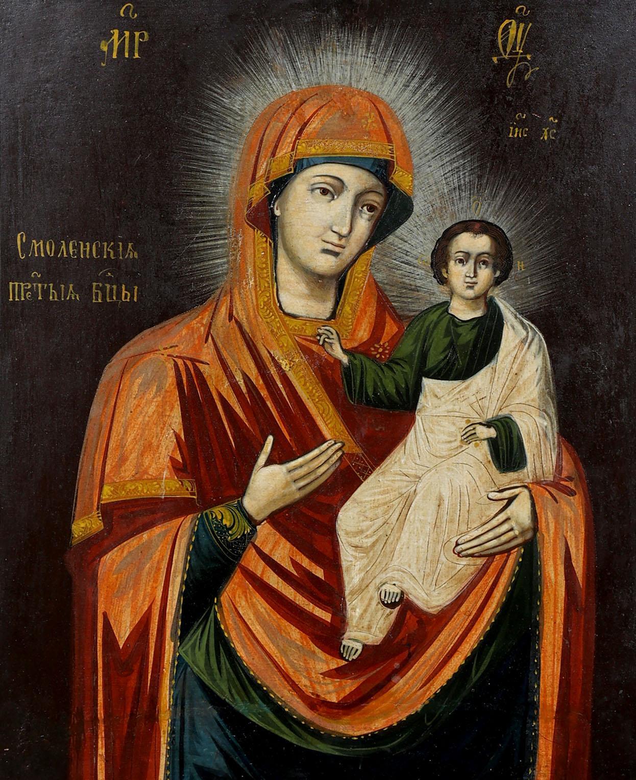 Griekse ikoon, Moeder Gods van Smolensk, tempra op paneel, 47,5 x 38 cm., 19e eeuw