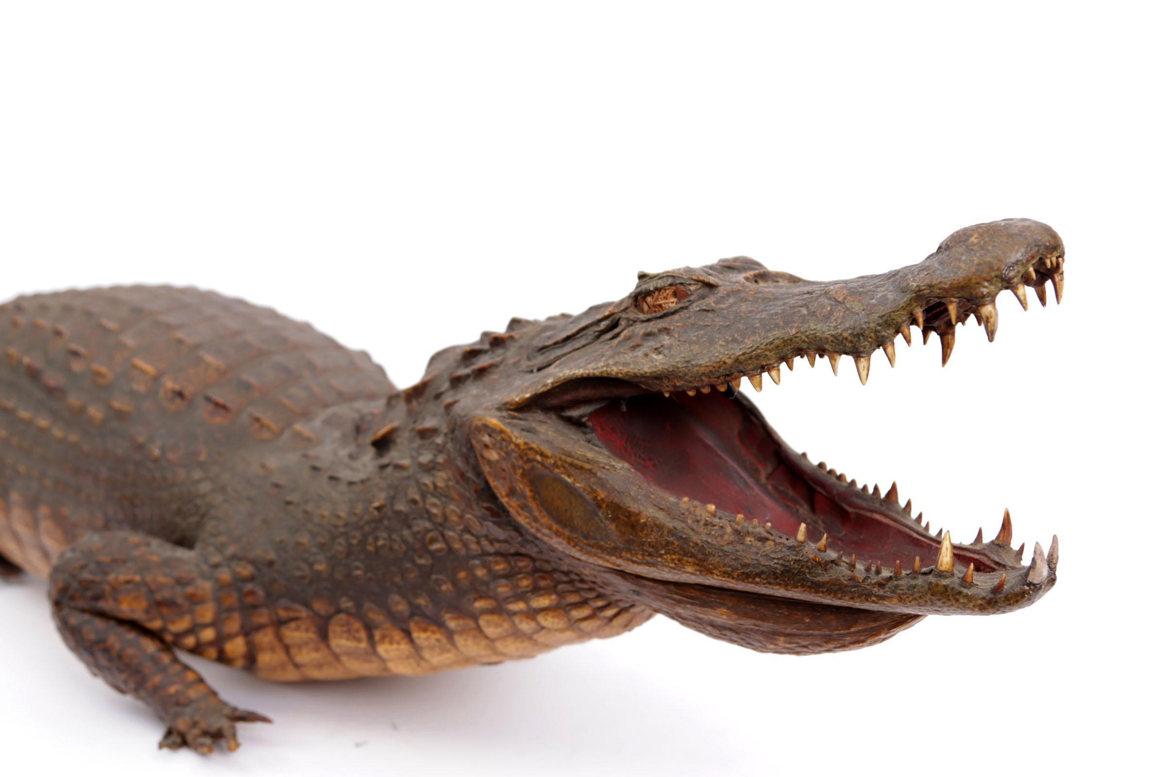 Geprepareerde krokodil, h.27 x L.136 x b.27 cm.
