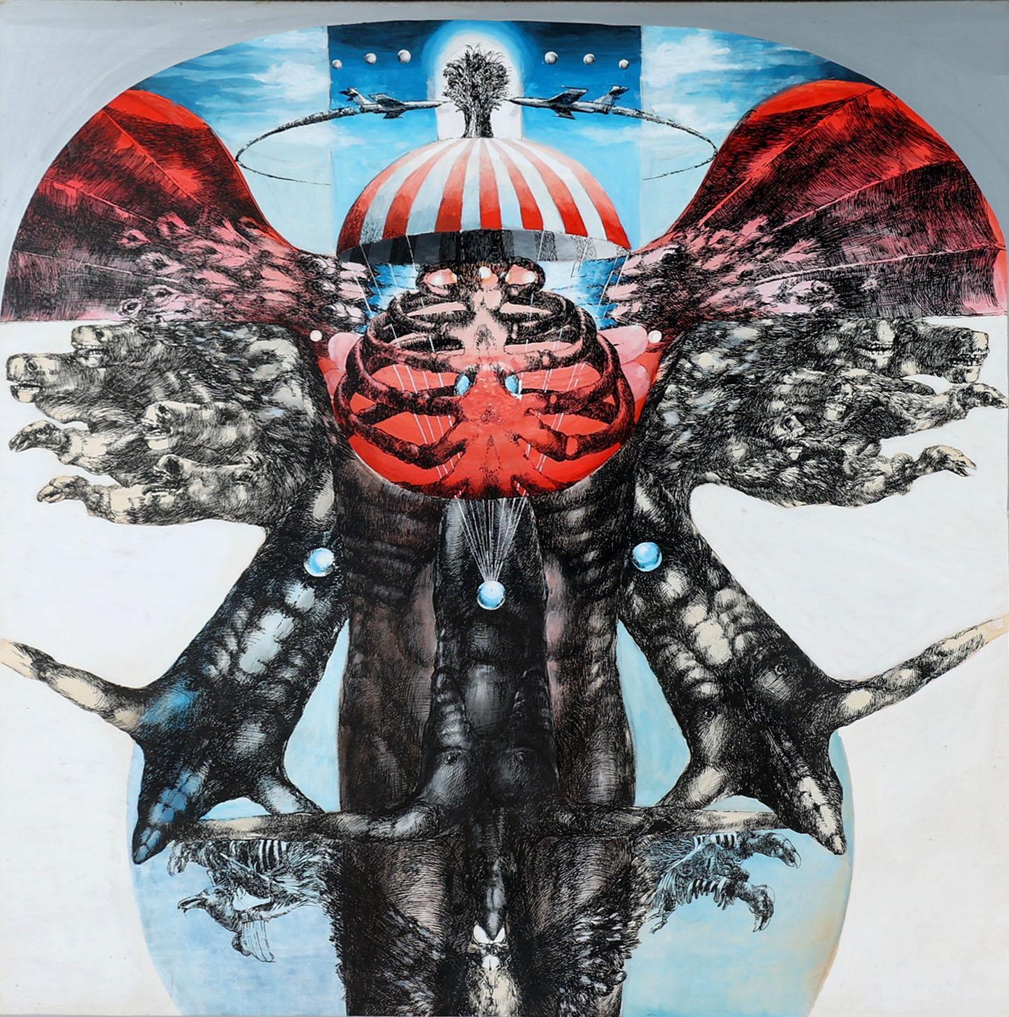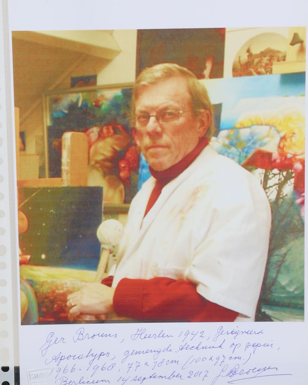 Ger Brouns (1942-2017), Apocalyps, gemengde techniek op papier, 77 x 78 cm. (met lijst 100 x 97 cm.), inclusief echtheidscertificaat