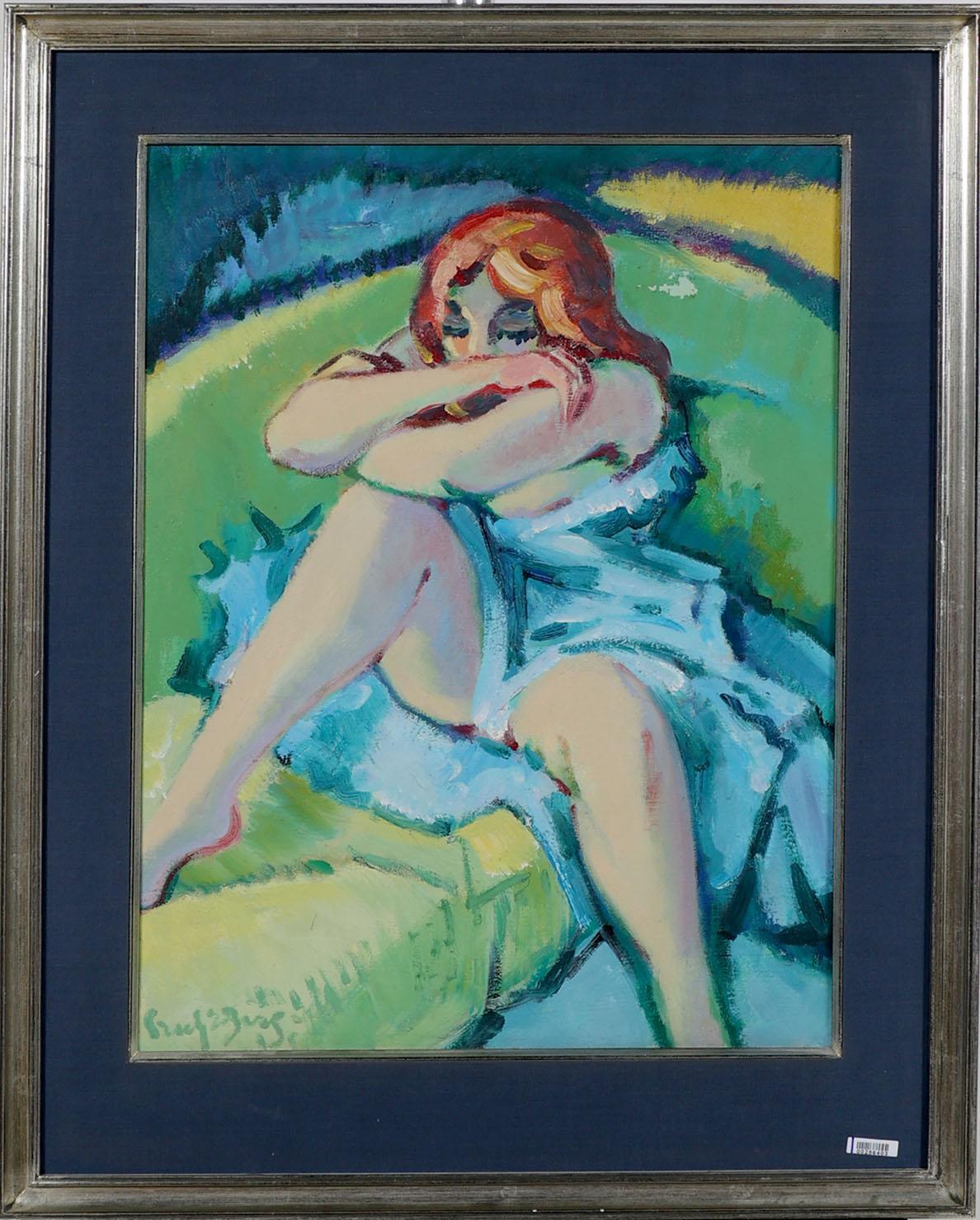 Johannes Fredericus (Freek) van den Berg (1918 2000), Portret van een zittend meisje, olieverf op doek, Provenance Christies, kleine beschadiging doek, 60 x 44cm.