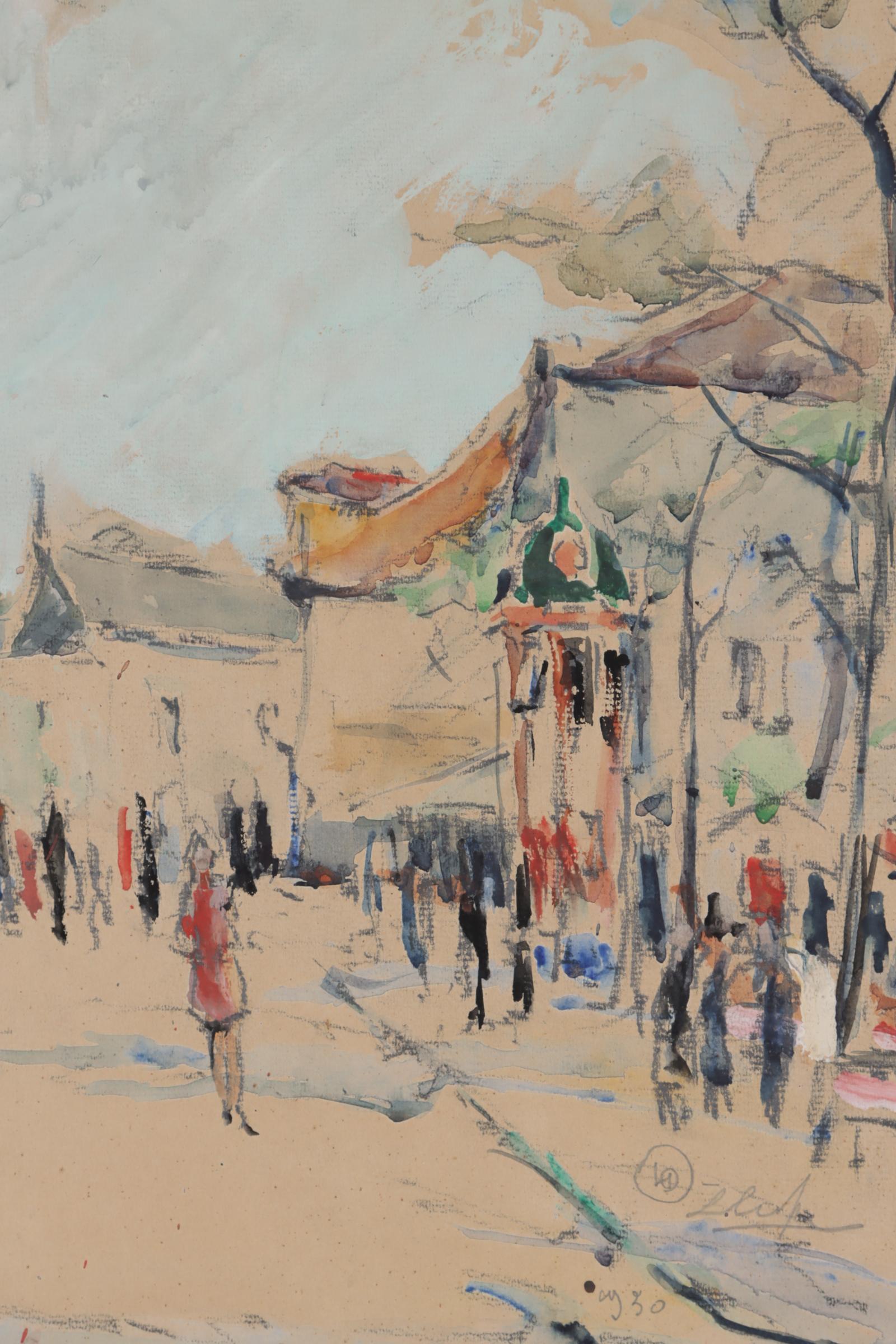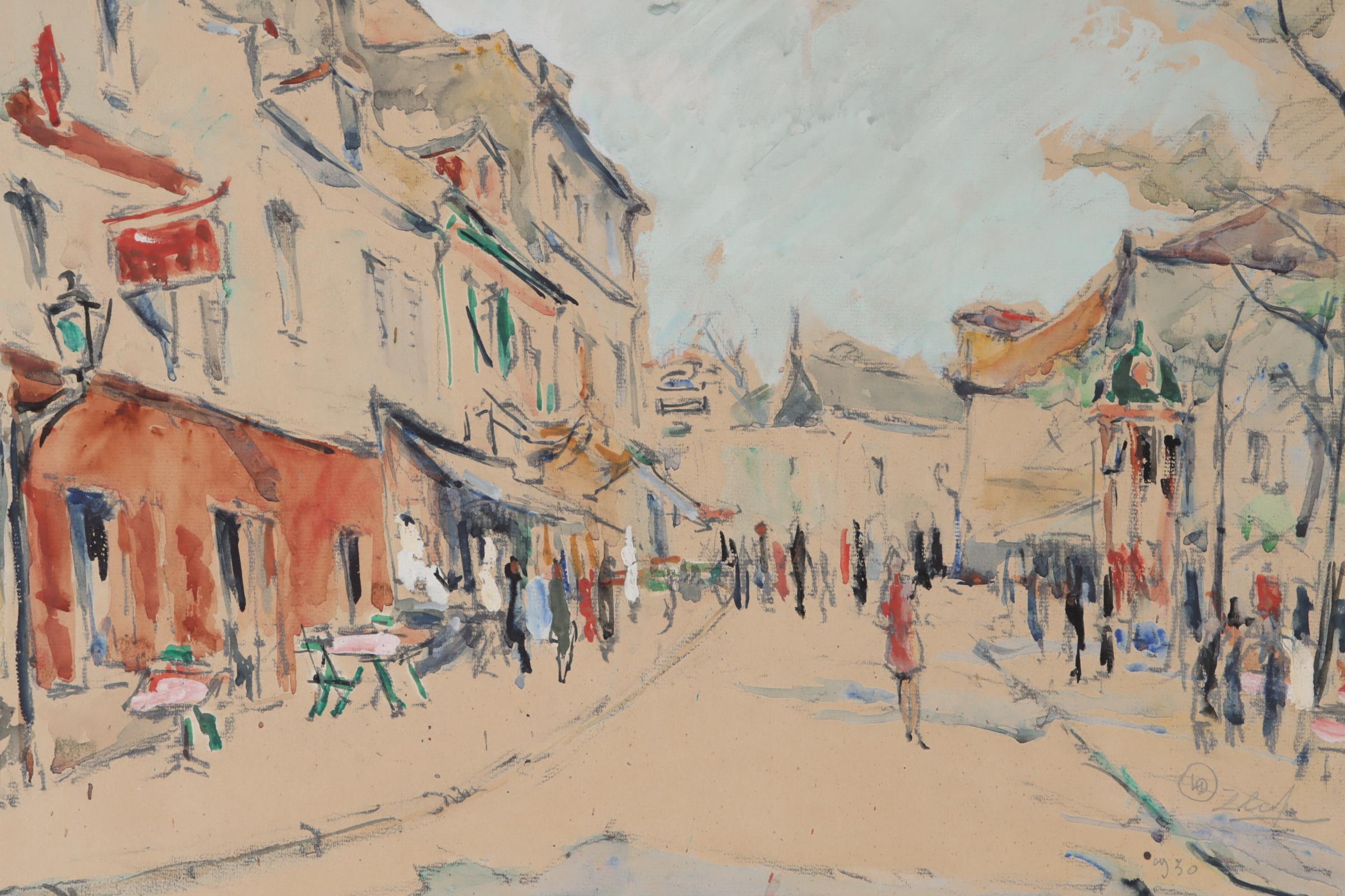 Ond.gesign., Frans straatje, gouache op papier , gedateerd 1930, 58 x 48 cm.