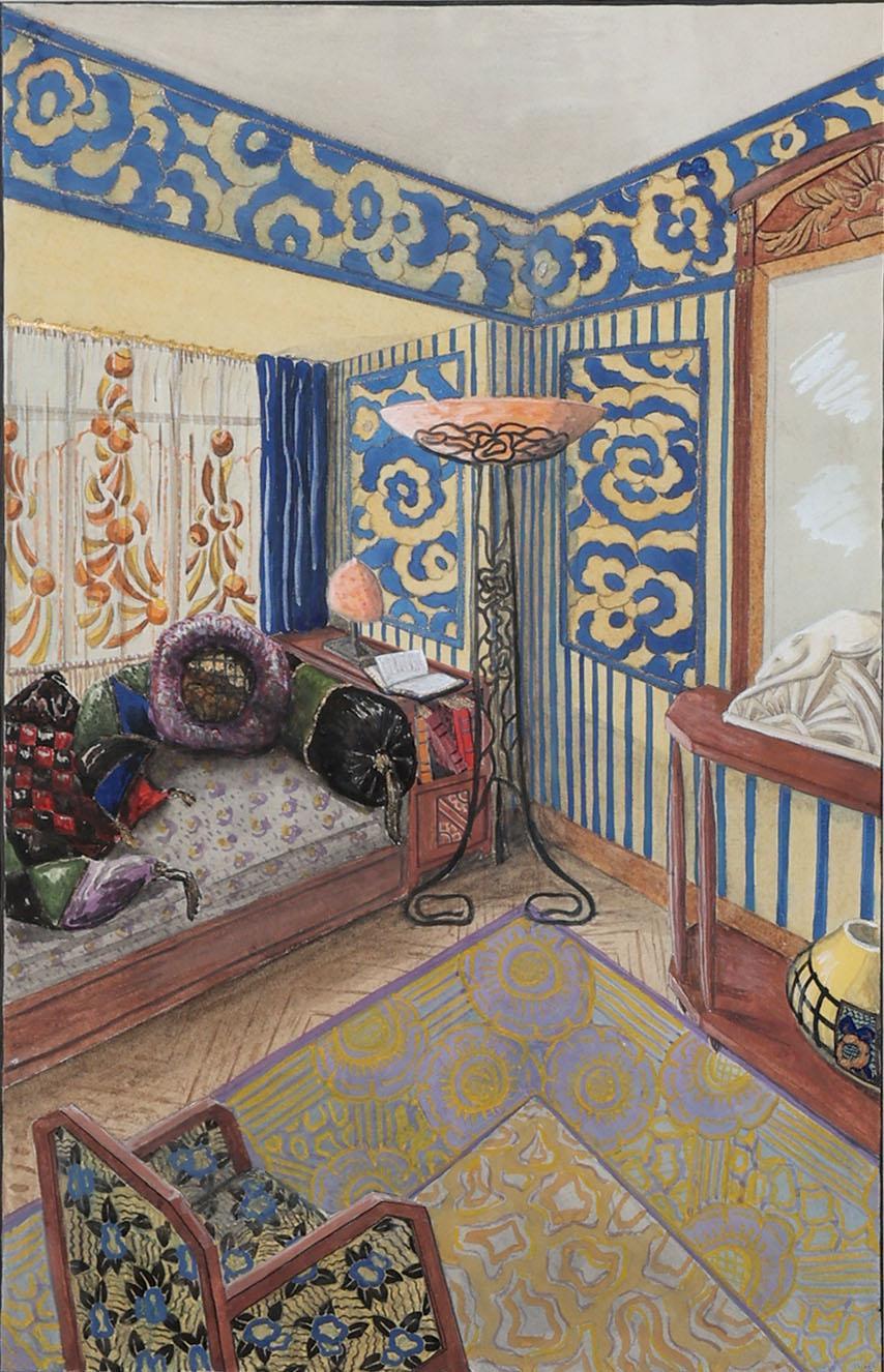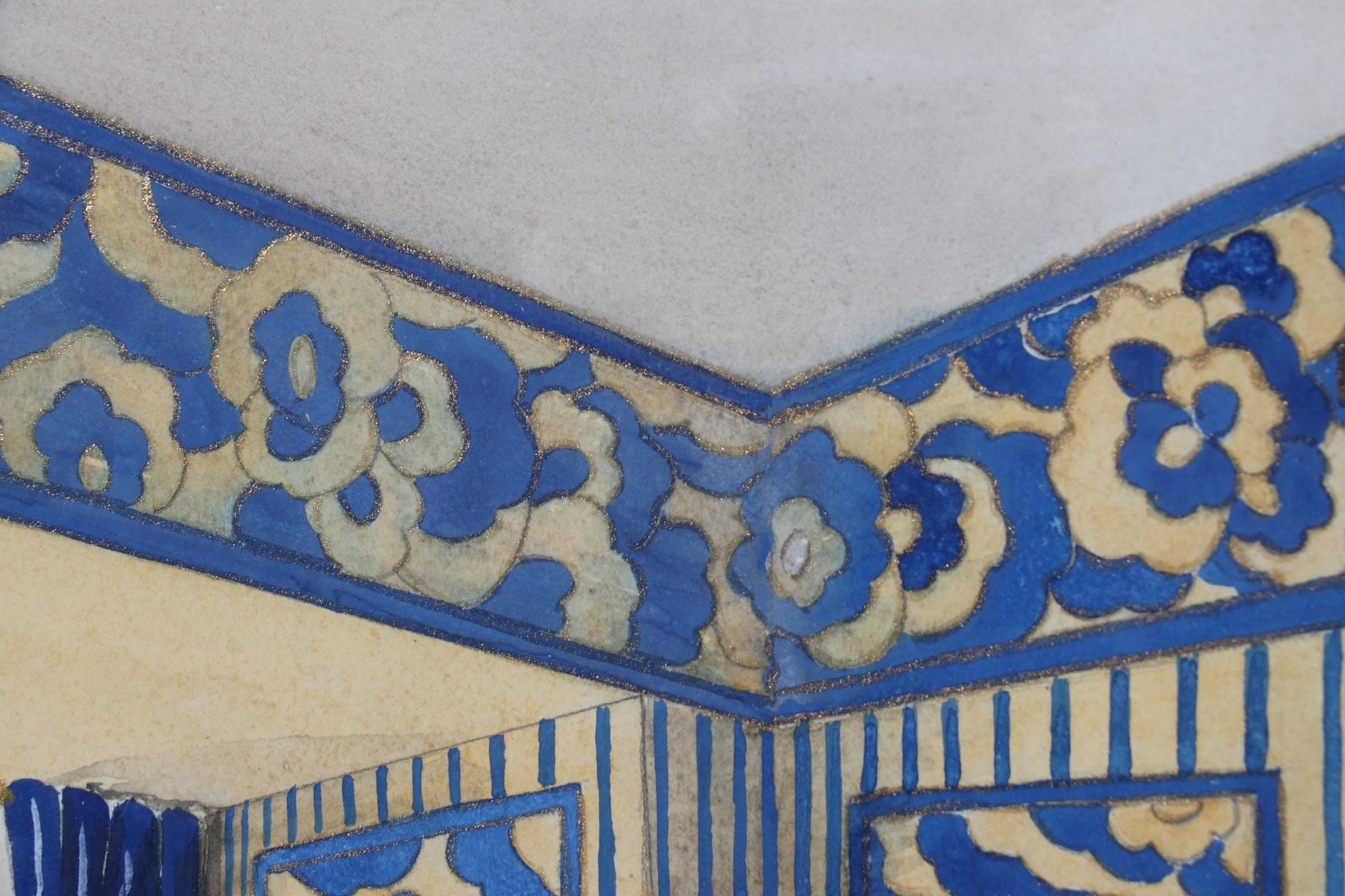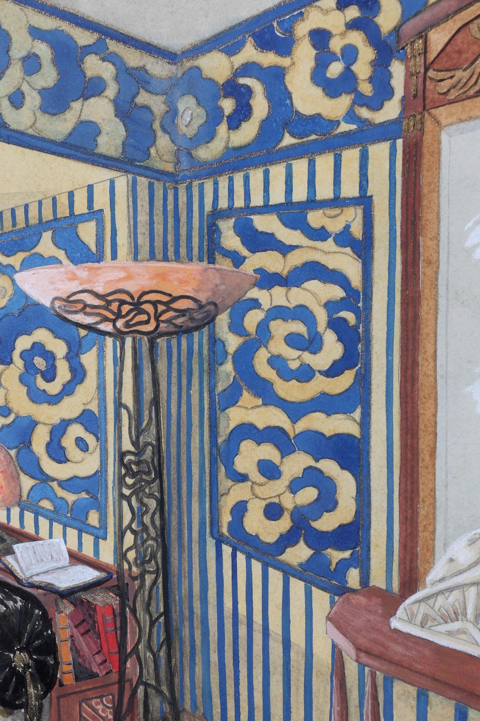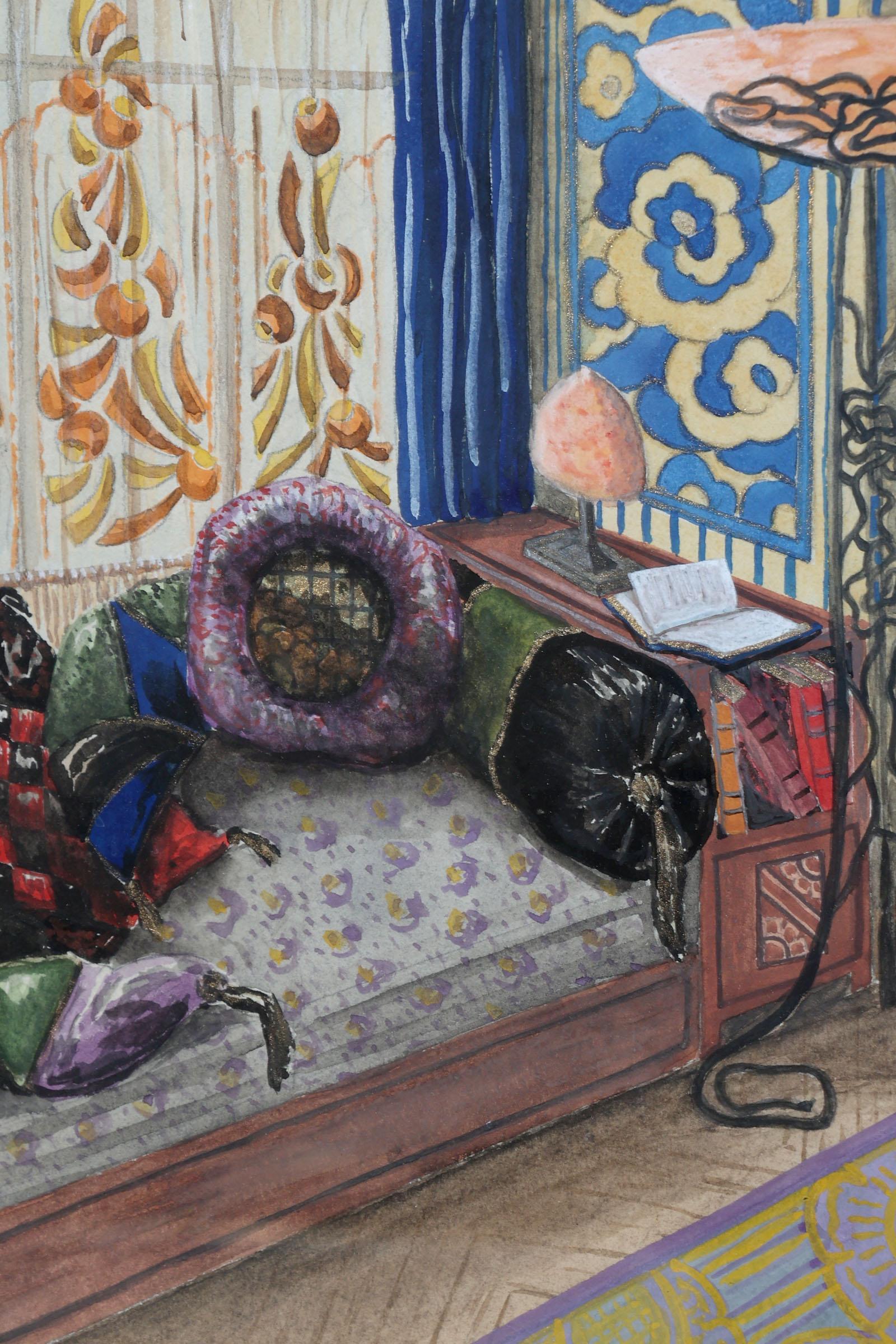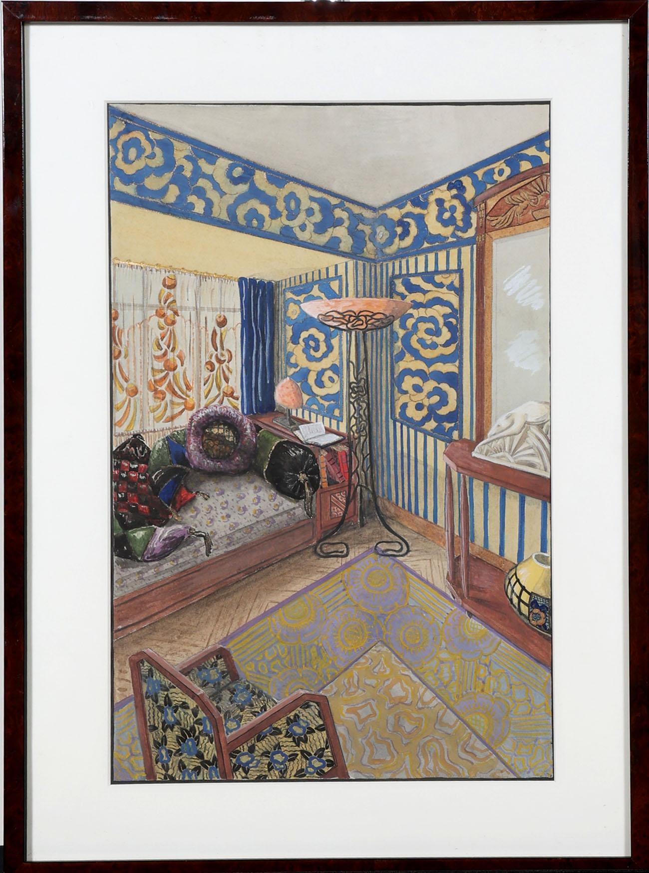 Onb.meester, Interieur, gouache op papier, 50 x 32 cm.