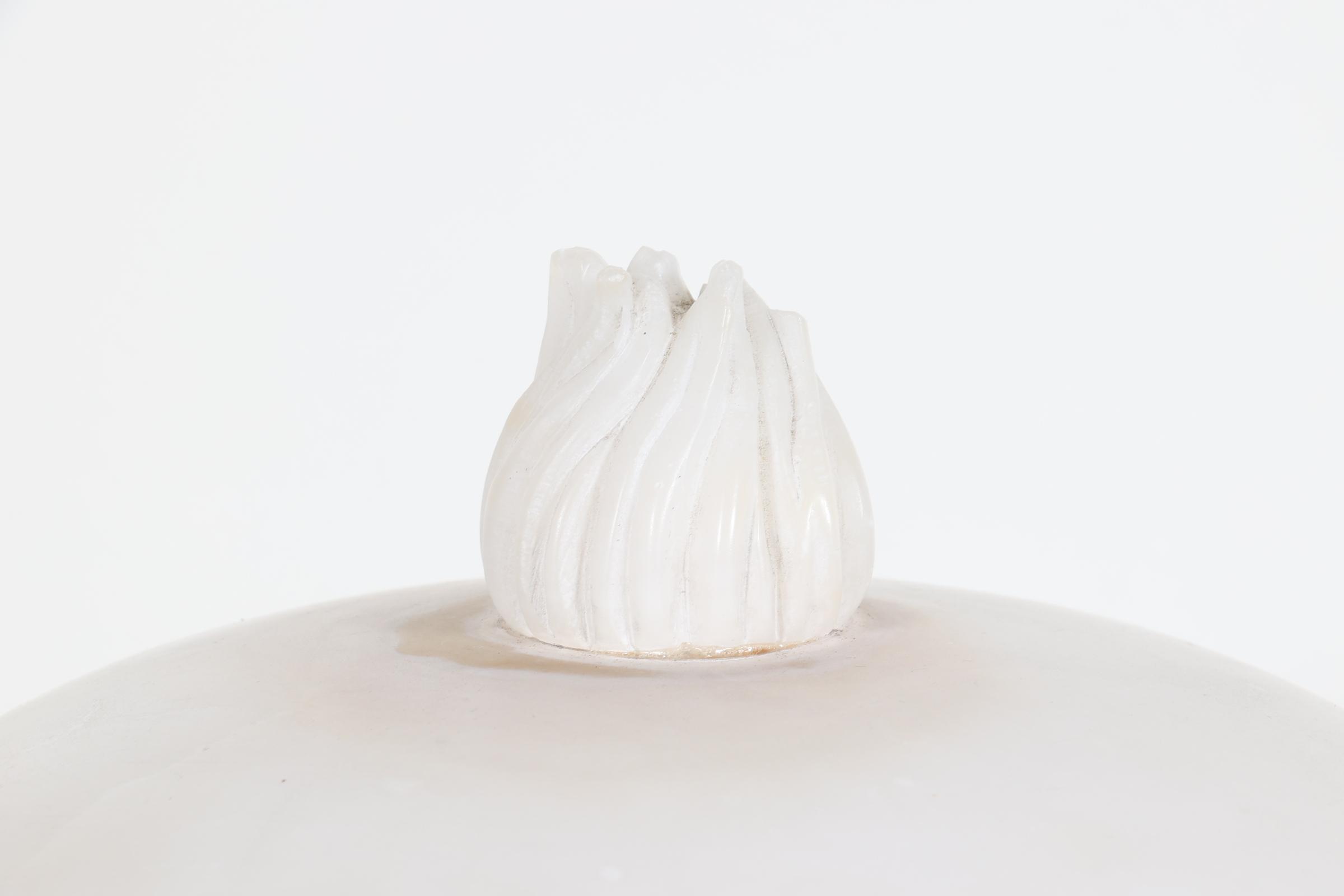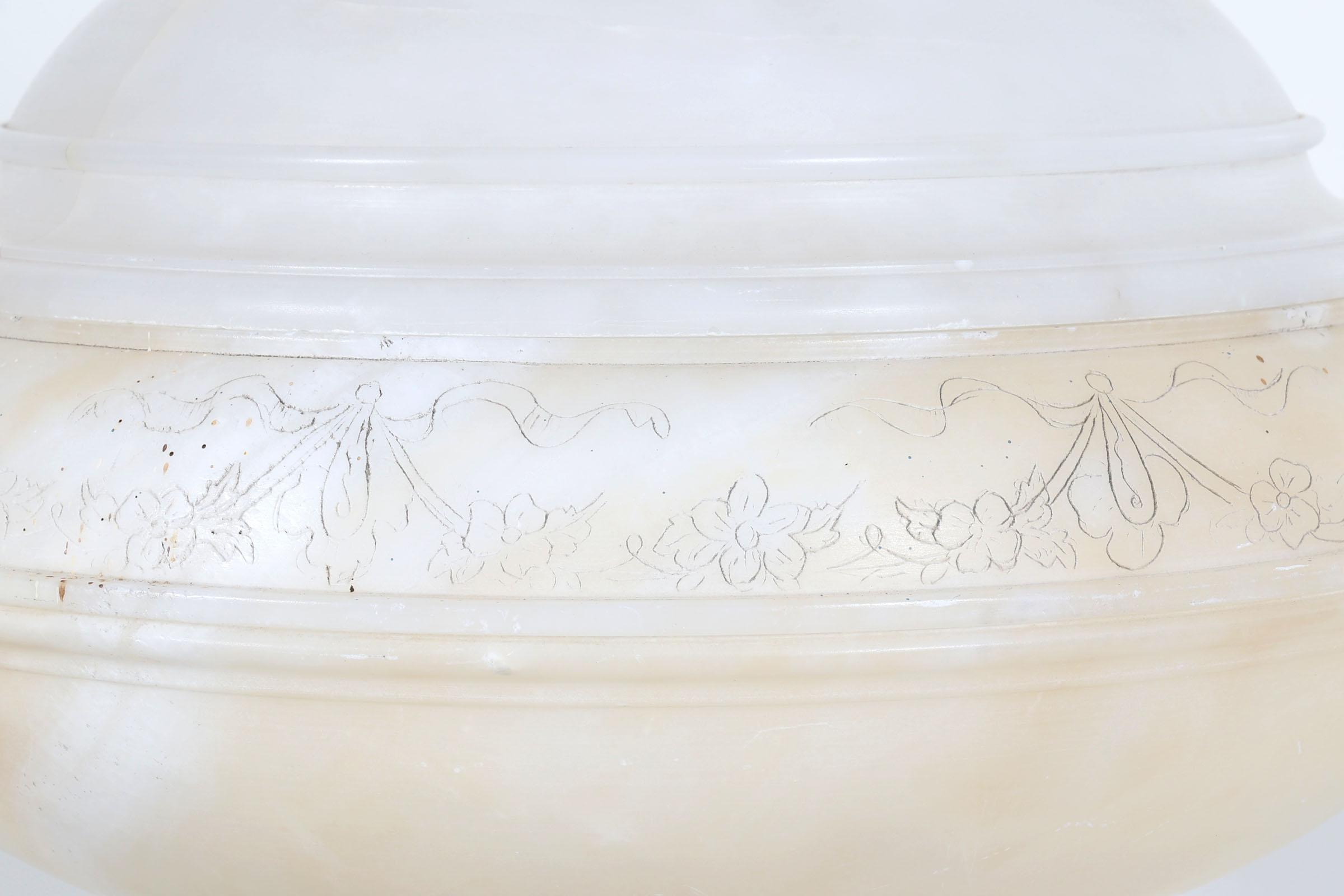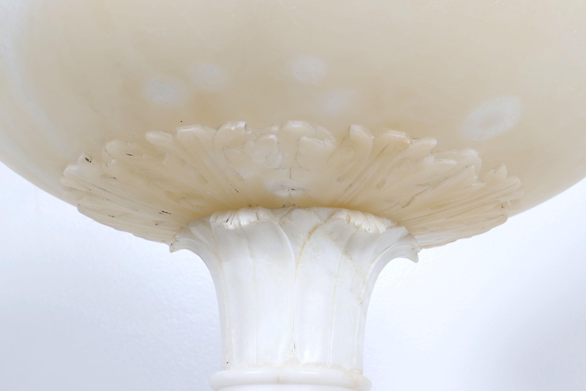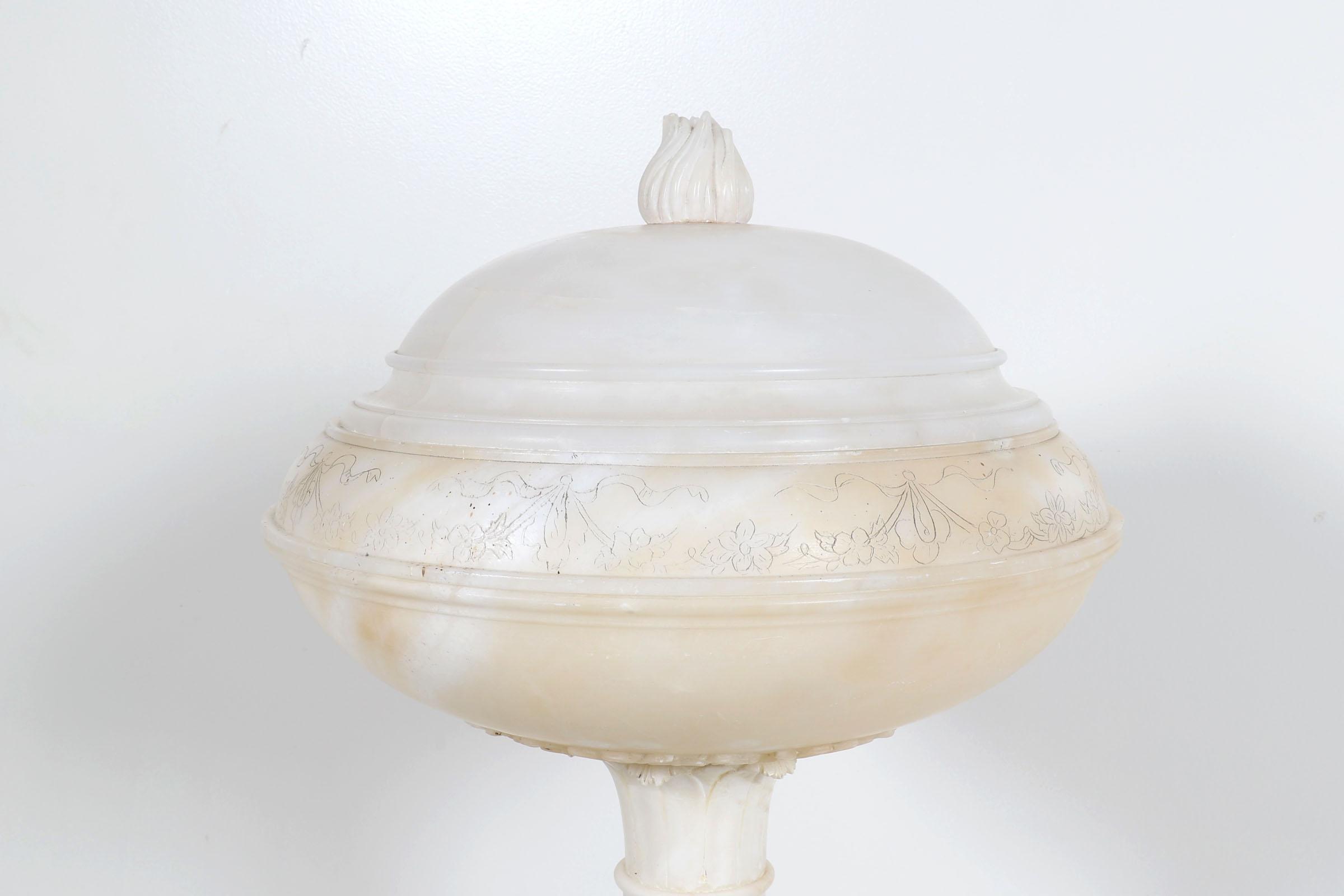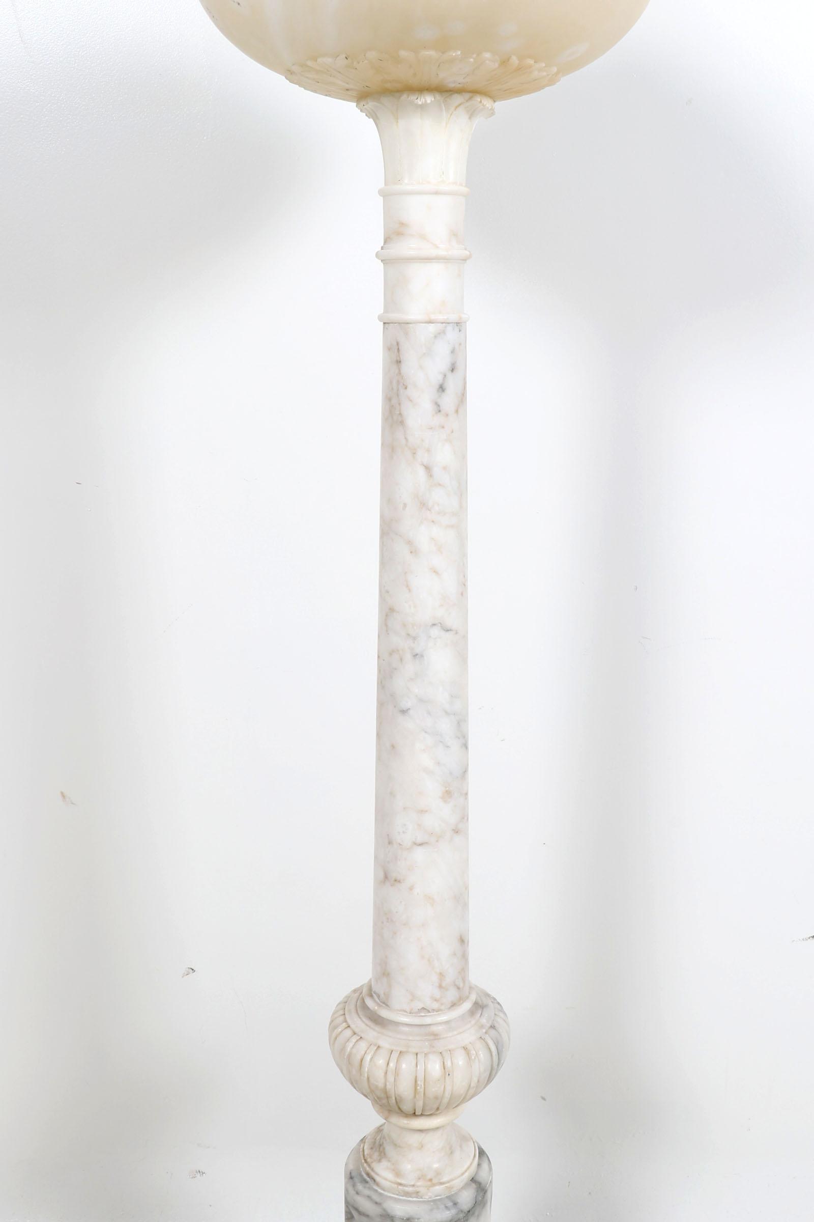 Albasten staande schemerlampvoet met kap, h.170 cm.