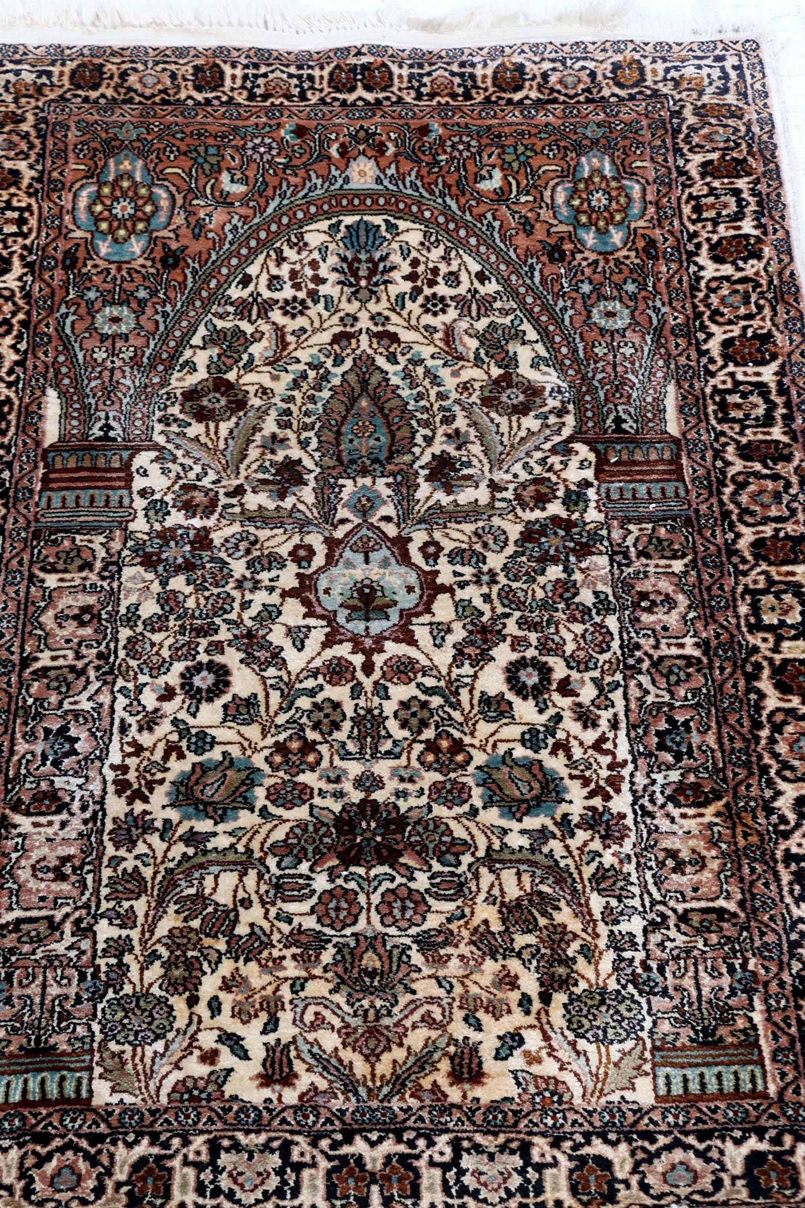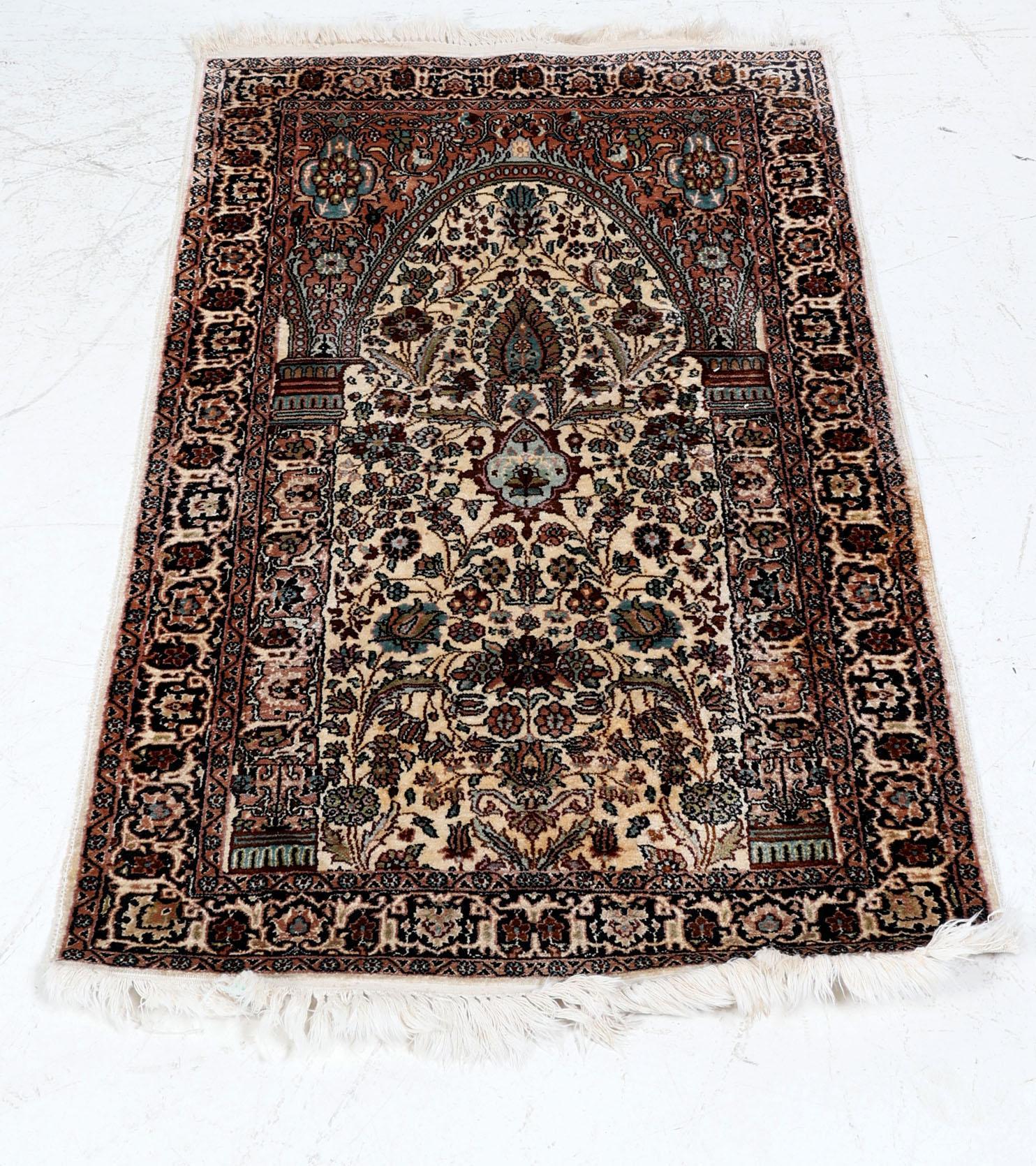 Handgeknoopt wol met zijden kleed, 129 x 78 cm.