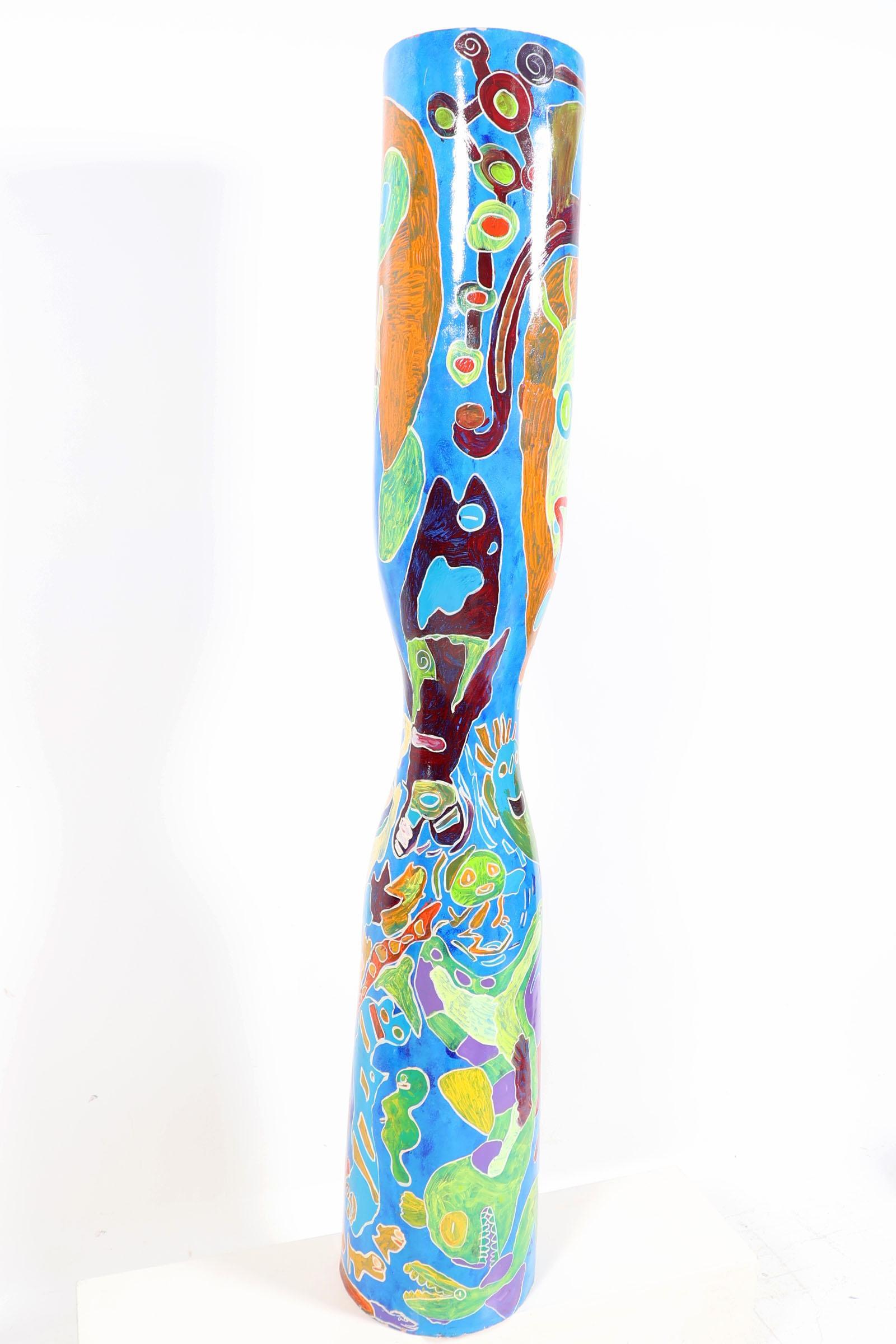 Kunst & Ko Eindhoven, grote polychroom beschilderde vaasvormige sculptuur, h.203 cm.
