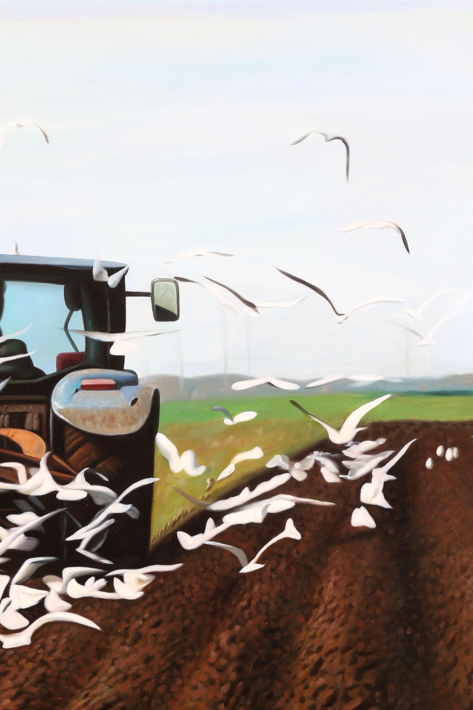 Onb. meester, Tractor in landschap, olieverf op doek, 180 x 150 cm.