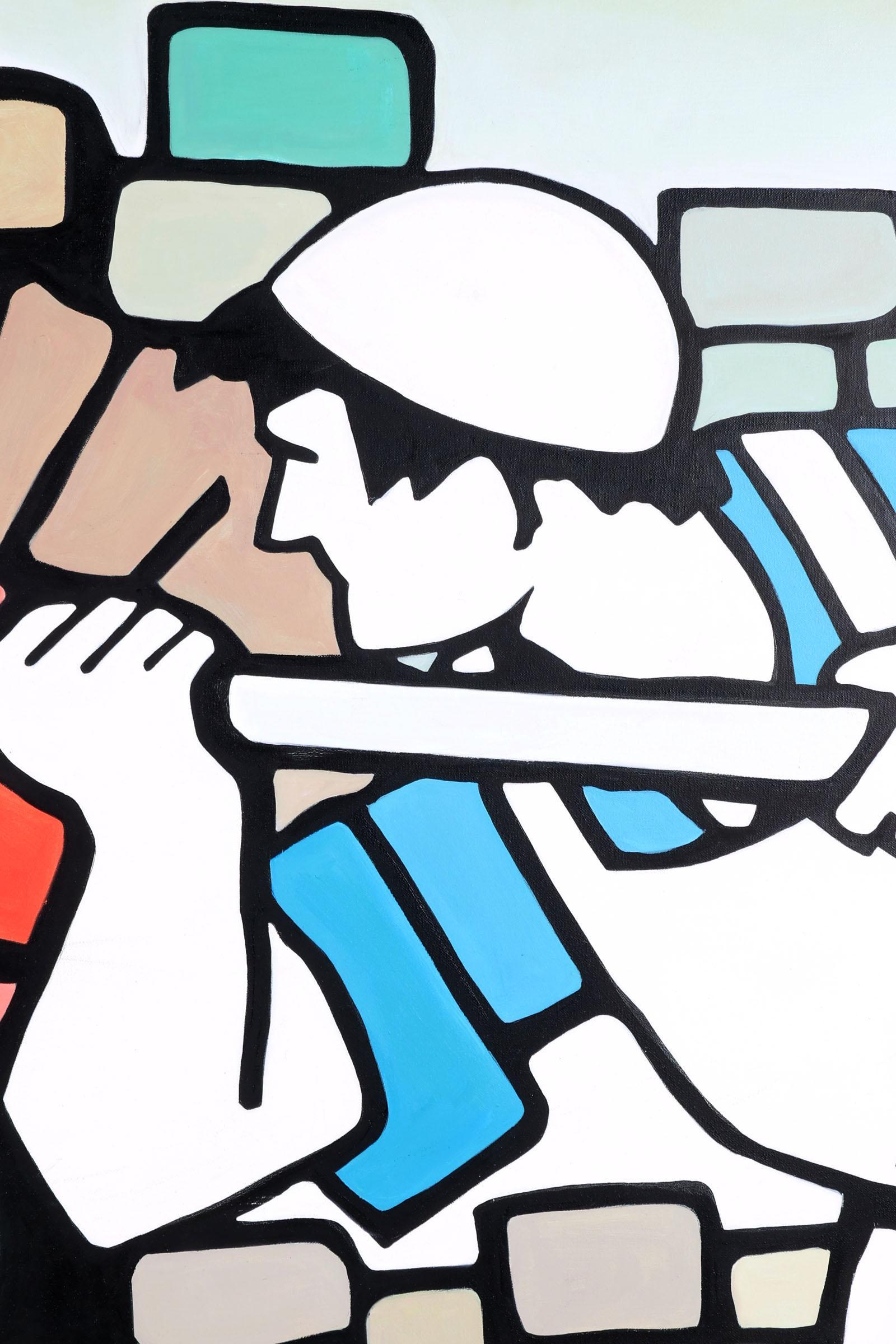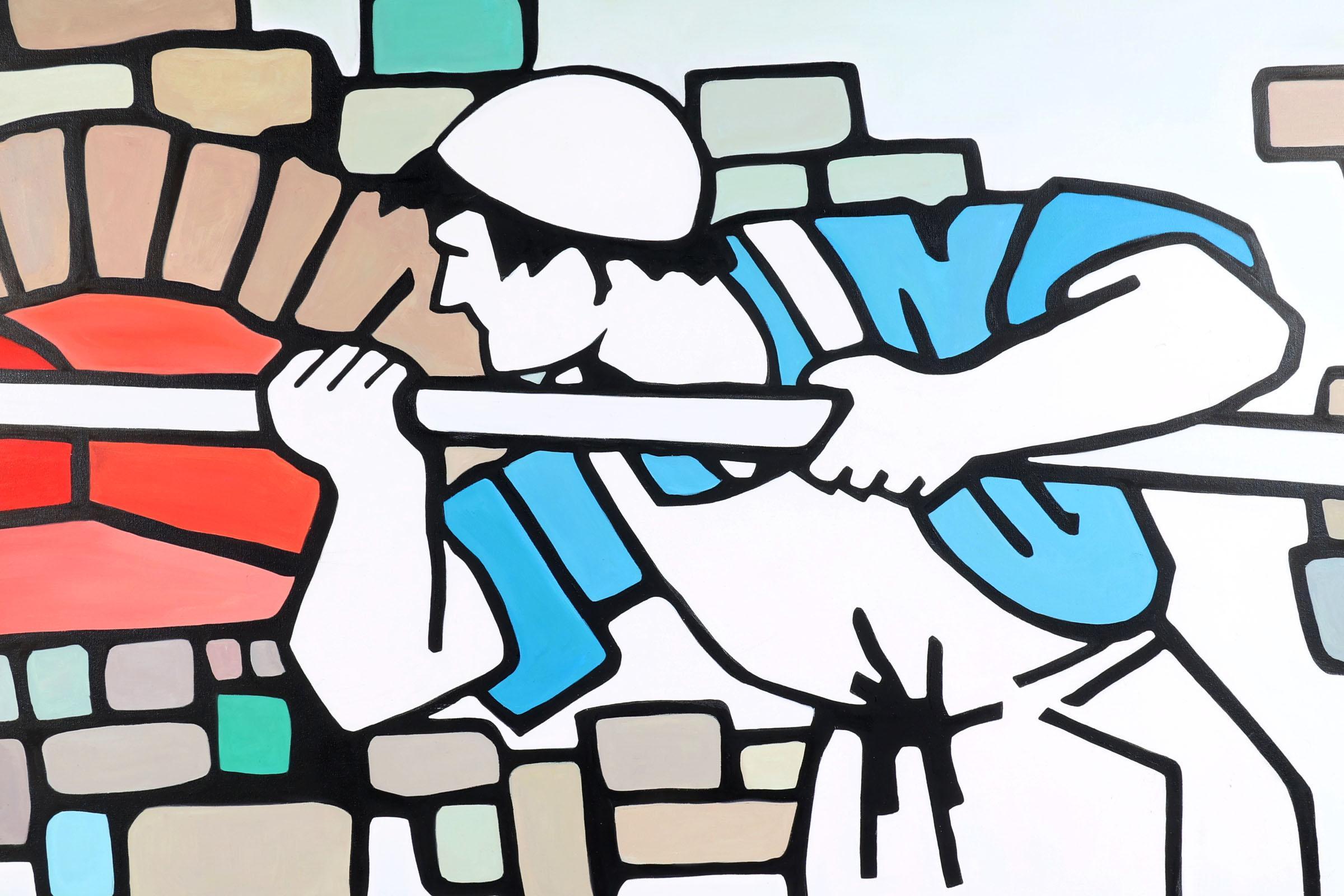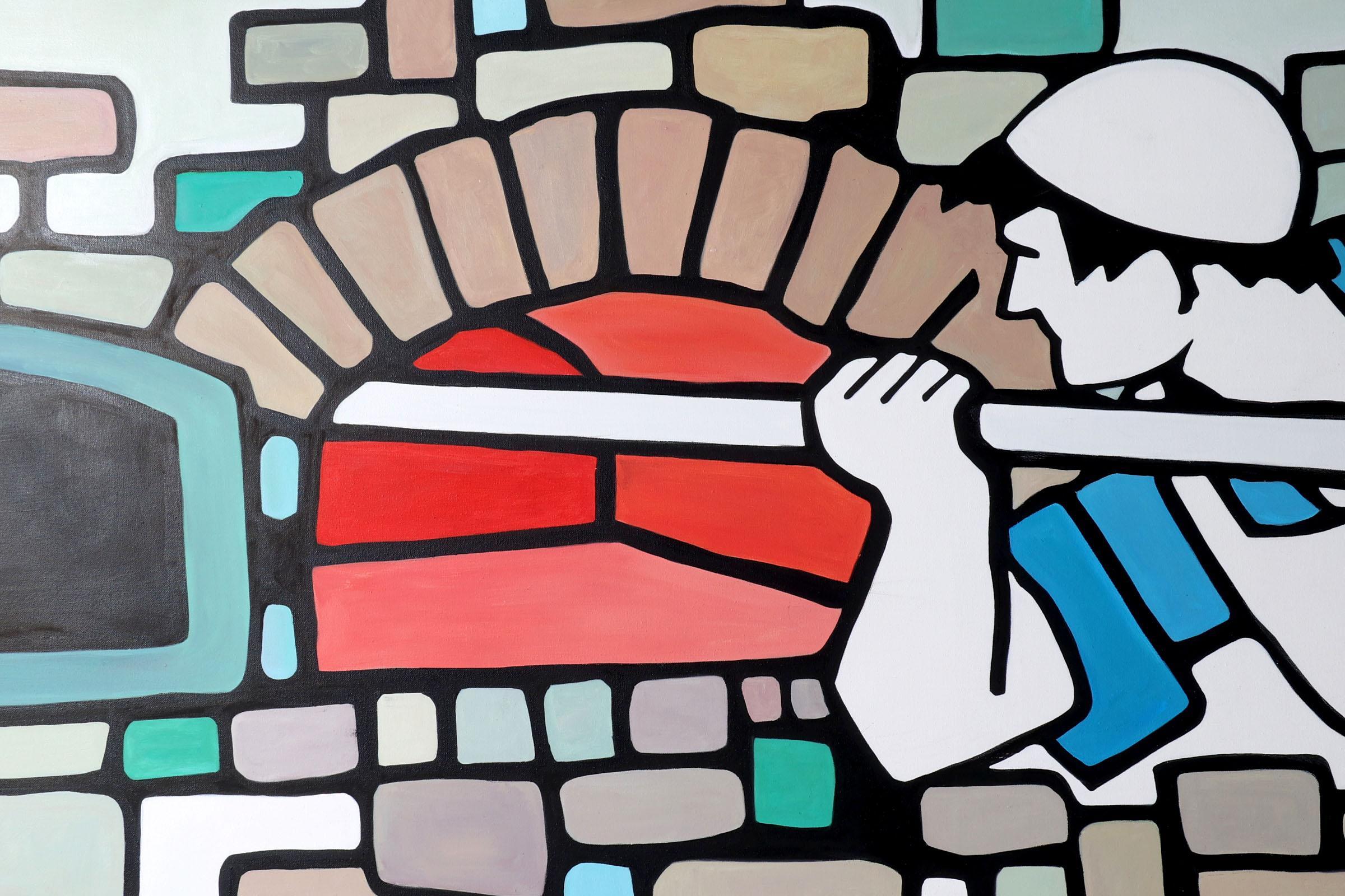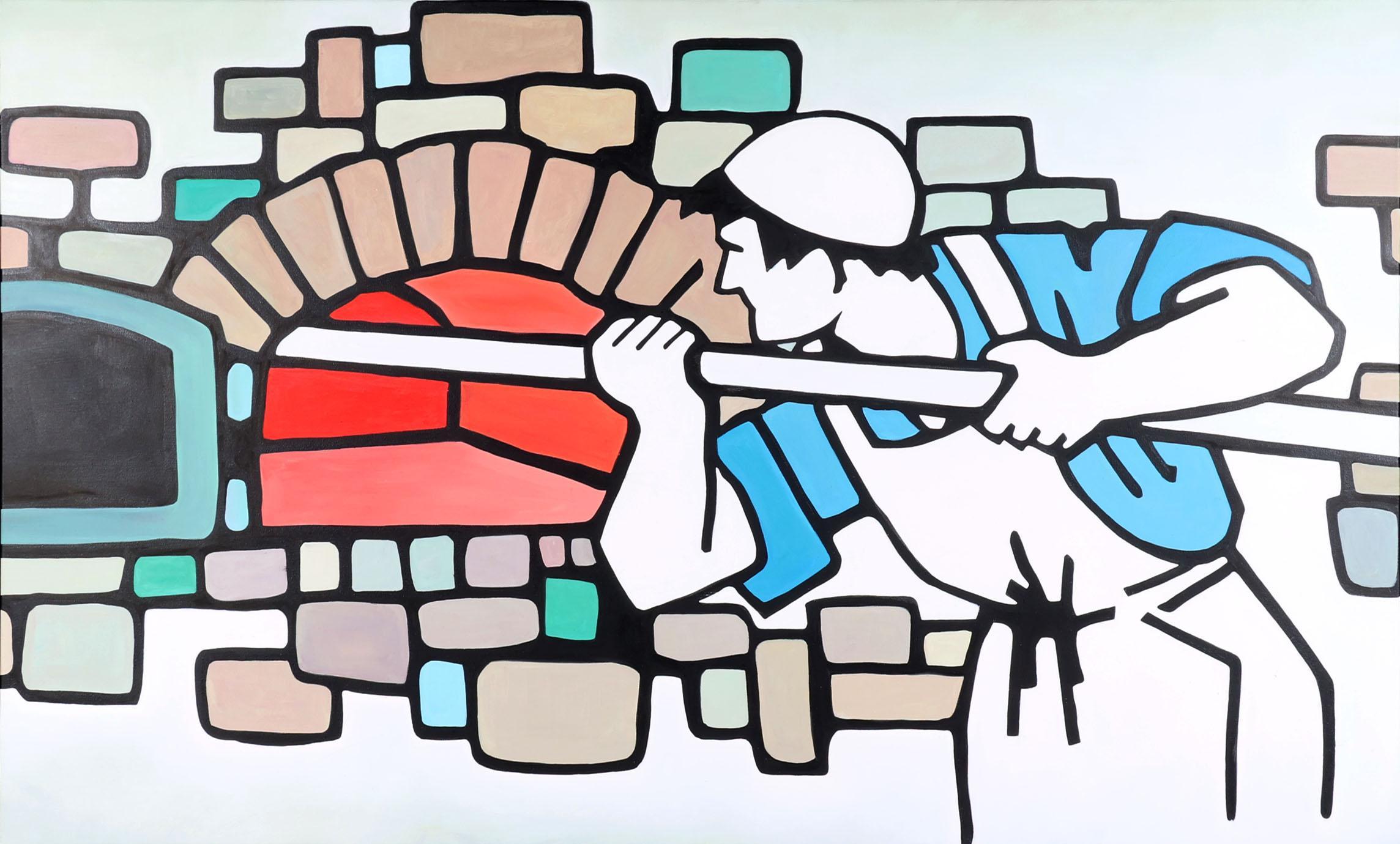 Onb. meester, Pizzabakker bij houtoven, olieverf op doek, 110 x 190 cm.