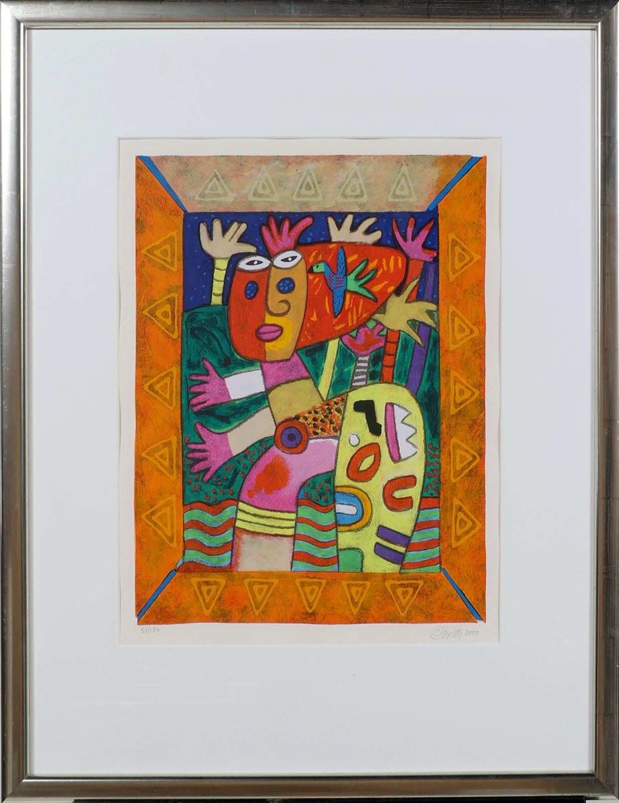 Clemens Briels (1946), Margaritha go to the river unload your flames, handgesigneerde zeefdruk, genummerd 53/150, gedateerd 2000, 53 x 42,5 cm.