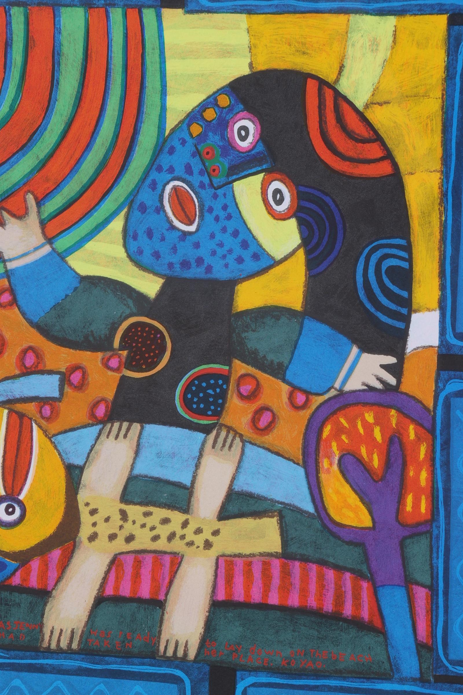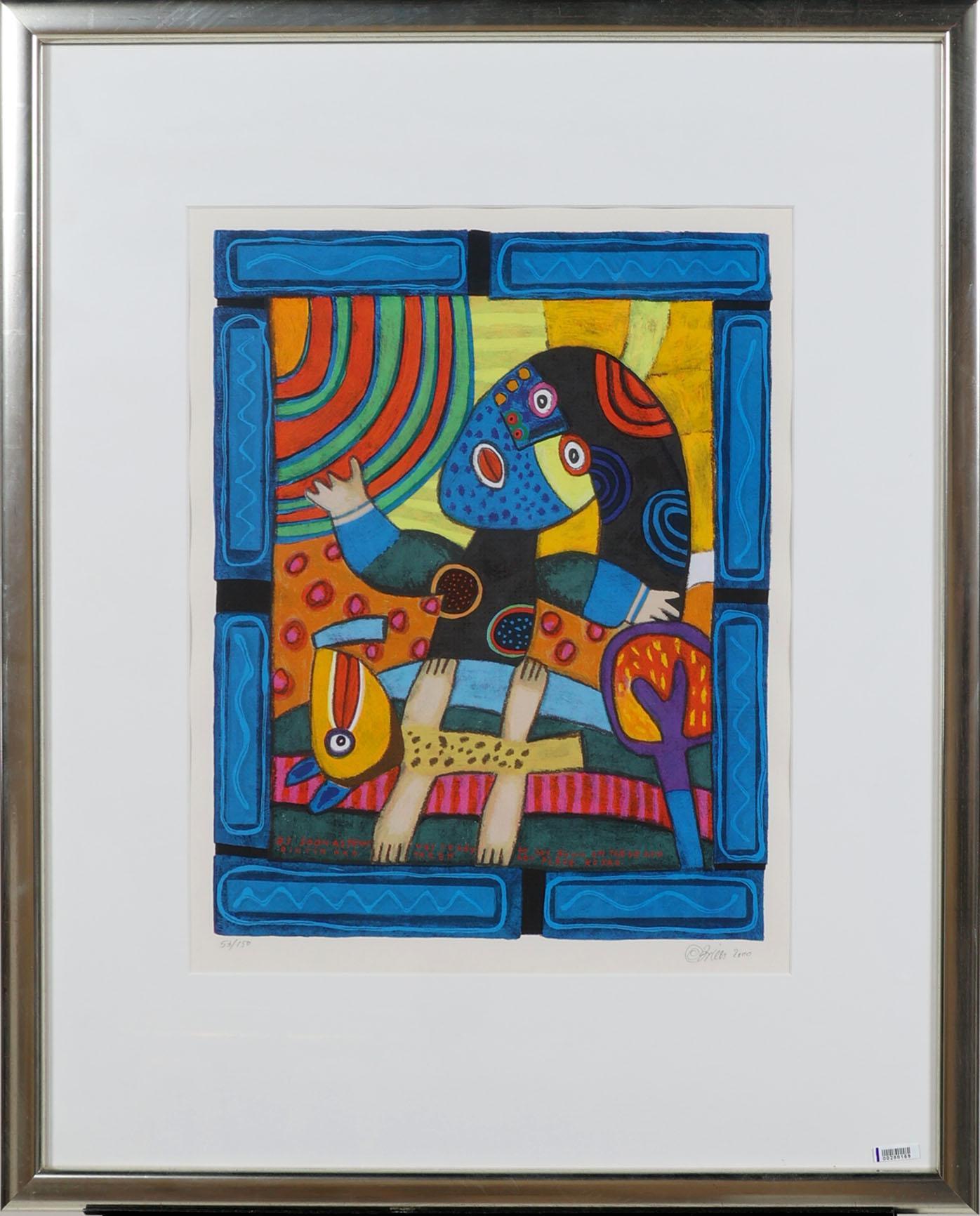 Clemens Briels (1946), As soon as Jenny was ready to lay down on the beach, Rintin had taken her place, handgesigneerde zeefdruk, genummerd 53/150, gedateerd 2000, 53 x 42,5 cm.