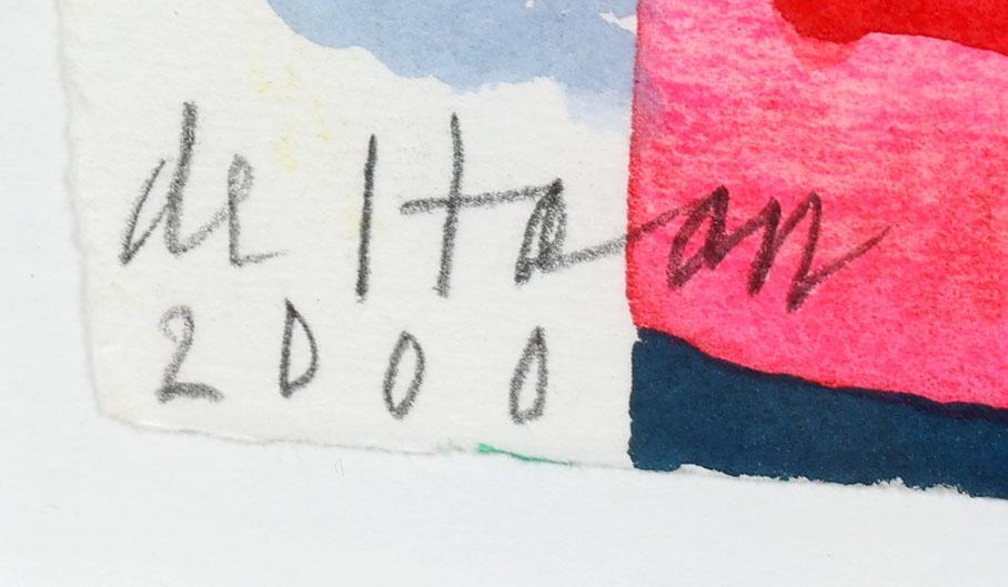 Jurjen de Haan (1936 - 2018), Compositie met figuur, gouache op papier, gedateerd 2000, 12 x 12 cm.