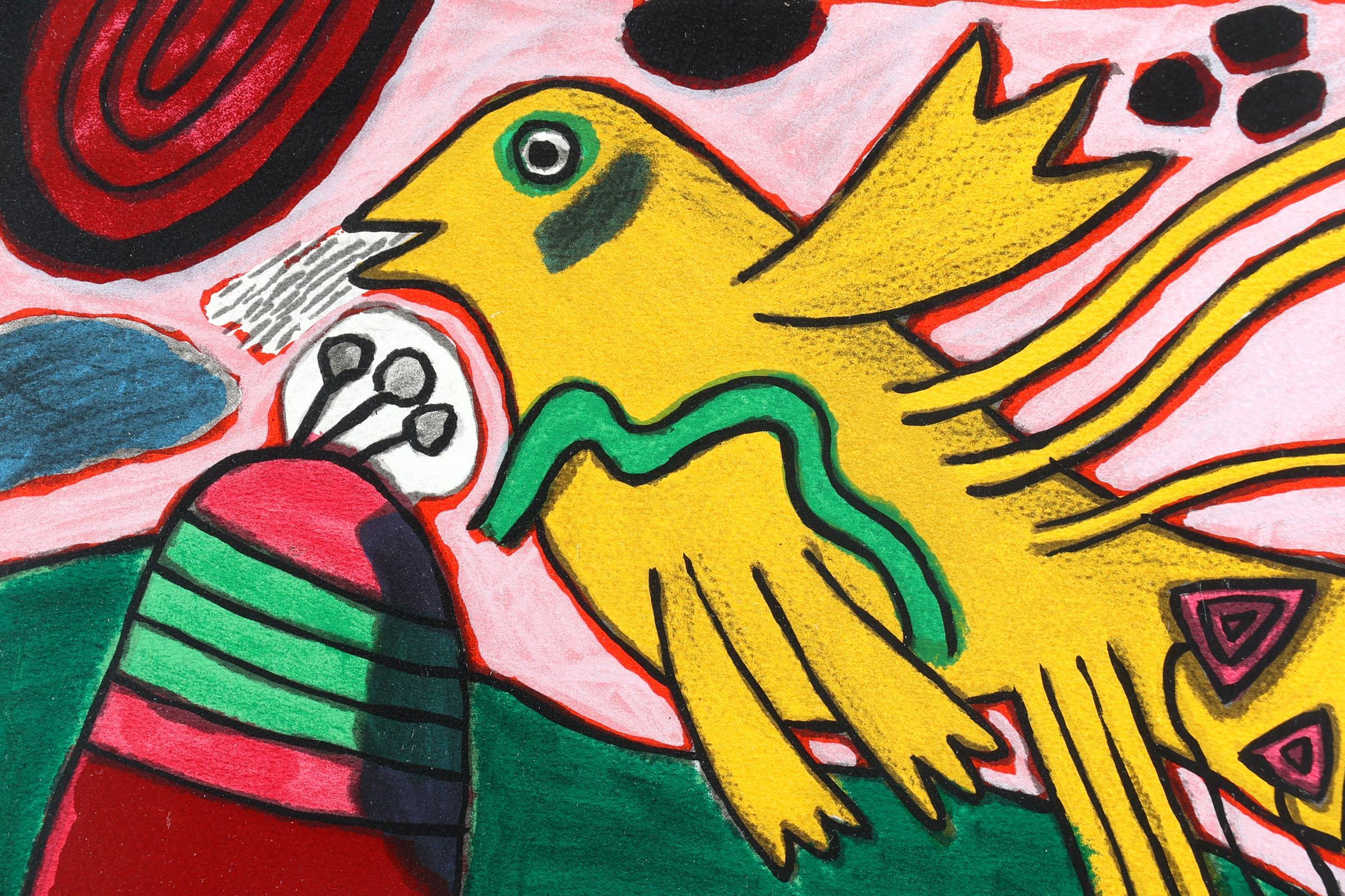 'Corneille', alias van Cornelis Guillaume van Beverloo, (1922- 2010), l'Oiseau jaune, handgesigneerde zeefdruk, genummerd 129/200, gedateerd 1995, 28 x 38 cm.