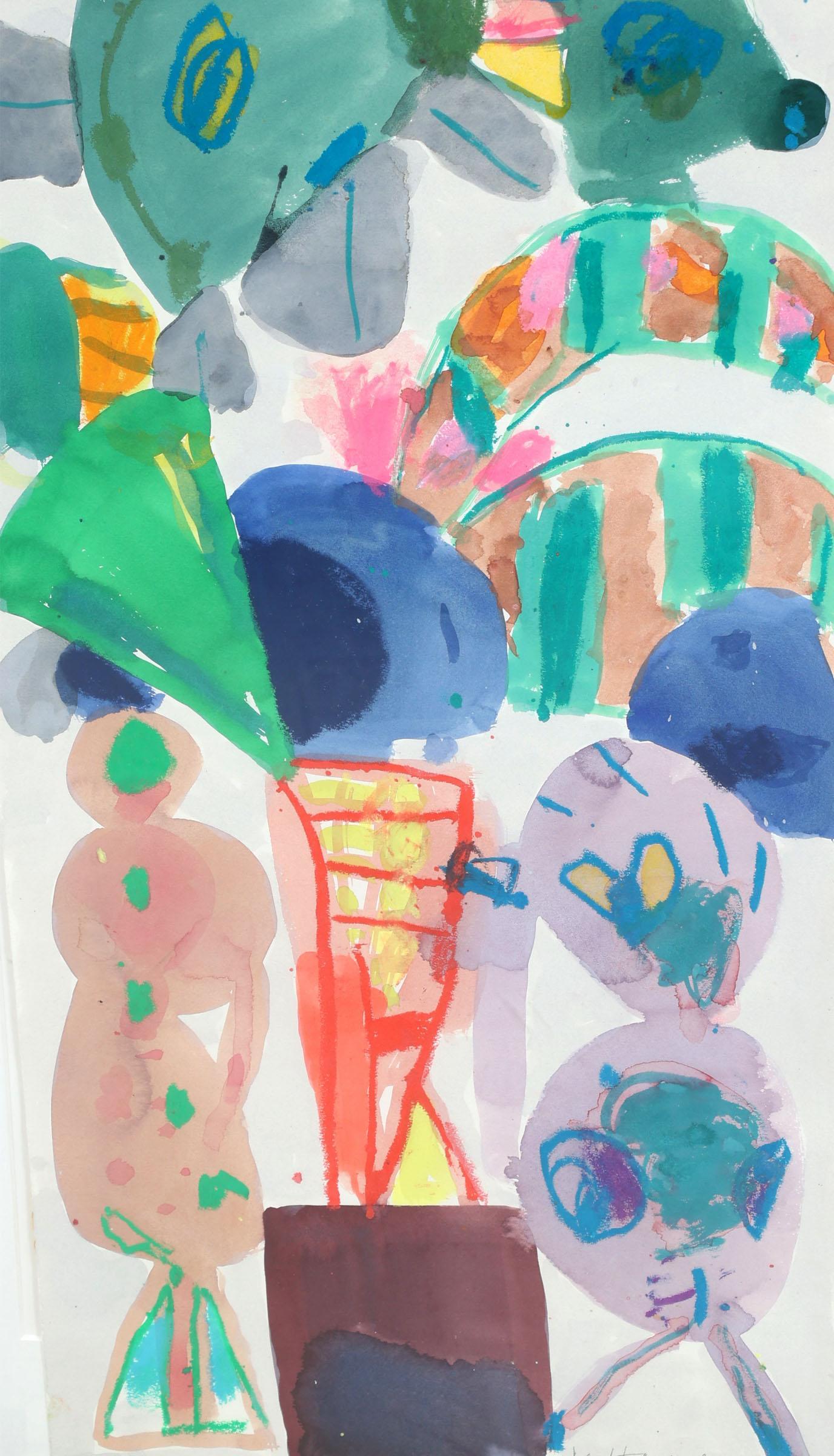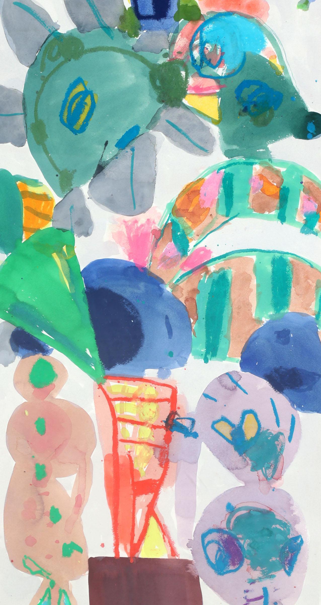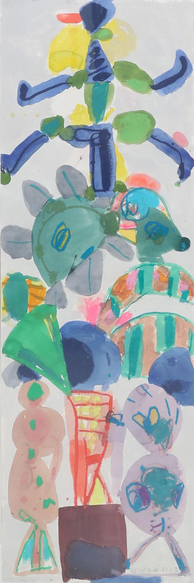 Jurjen de Haan (1936 - 2018), Totempaal, gouache op papier, gedateerd 2002, 120 x 40 cm.