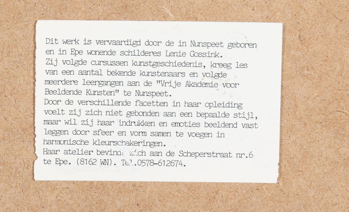 Leenie Gossink, Landschap, marouflé, 58 x 78 cm.