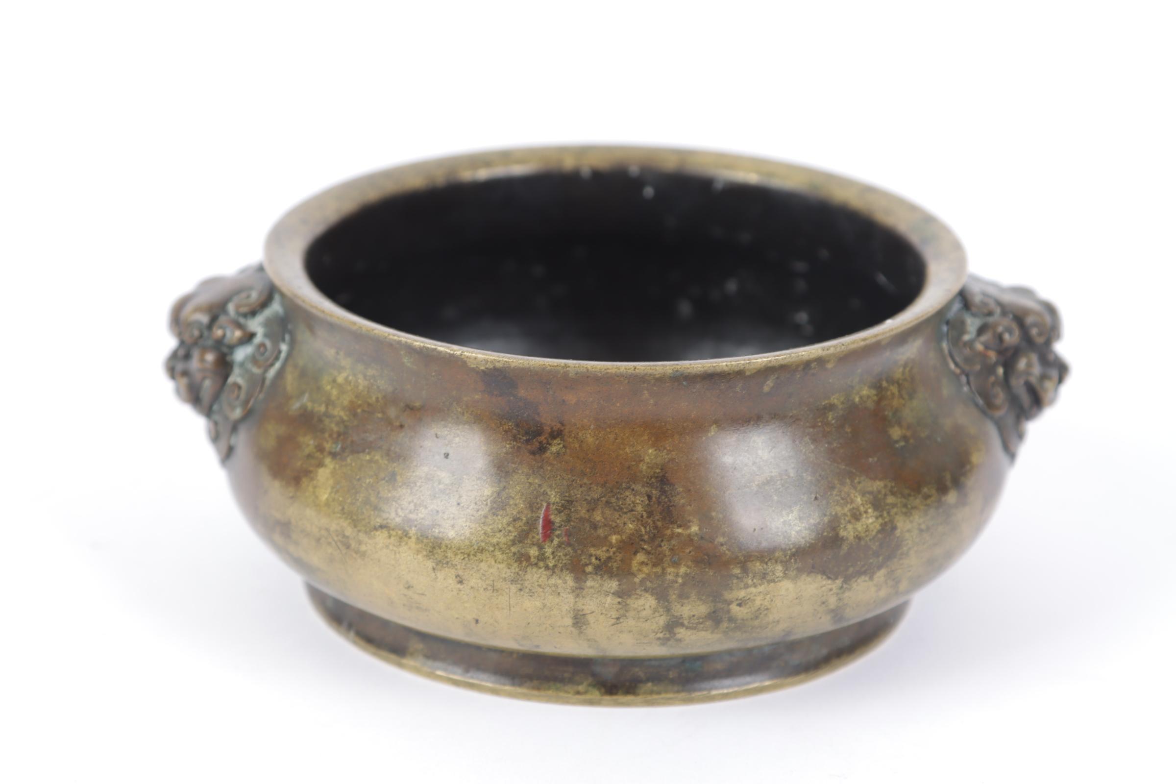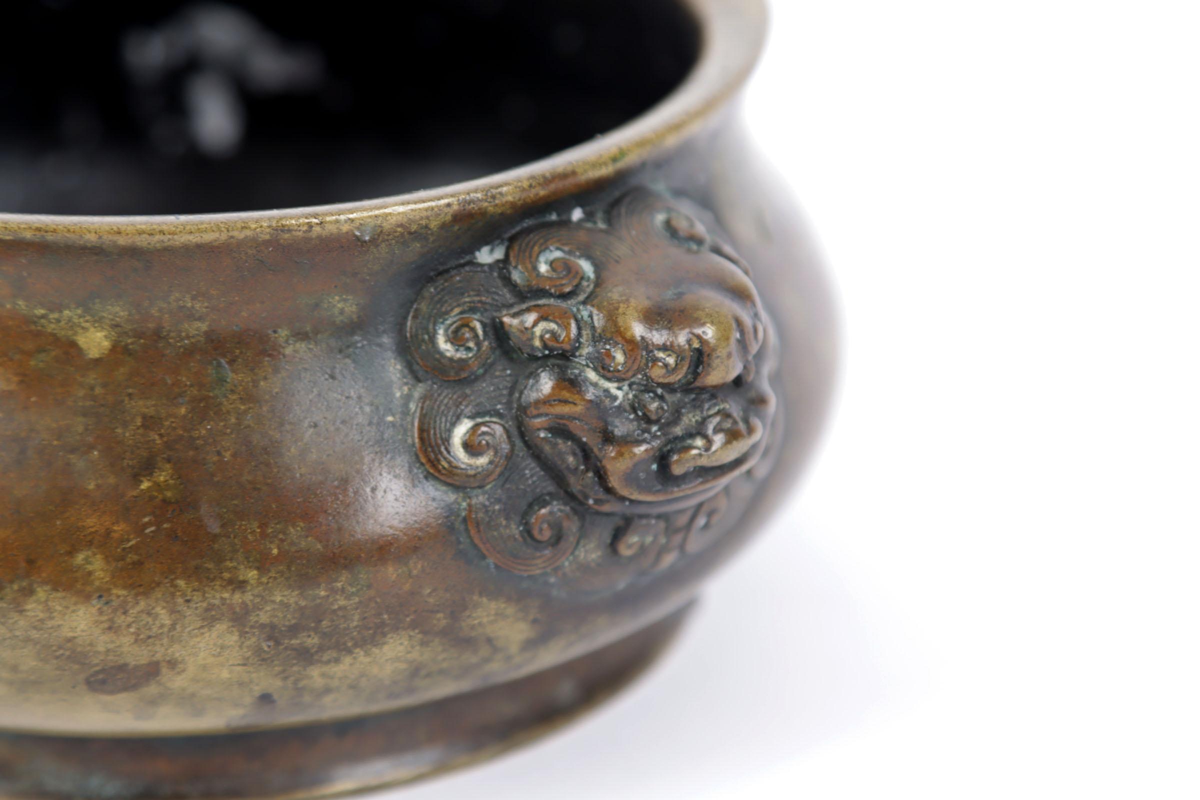 Een wierookbrander van gegoten brons met handvatten in de vorm van leeuwenkoppen, vermoedelijke Xuande zeskaraktermerk, 17e/18e eeuw.