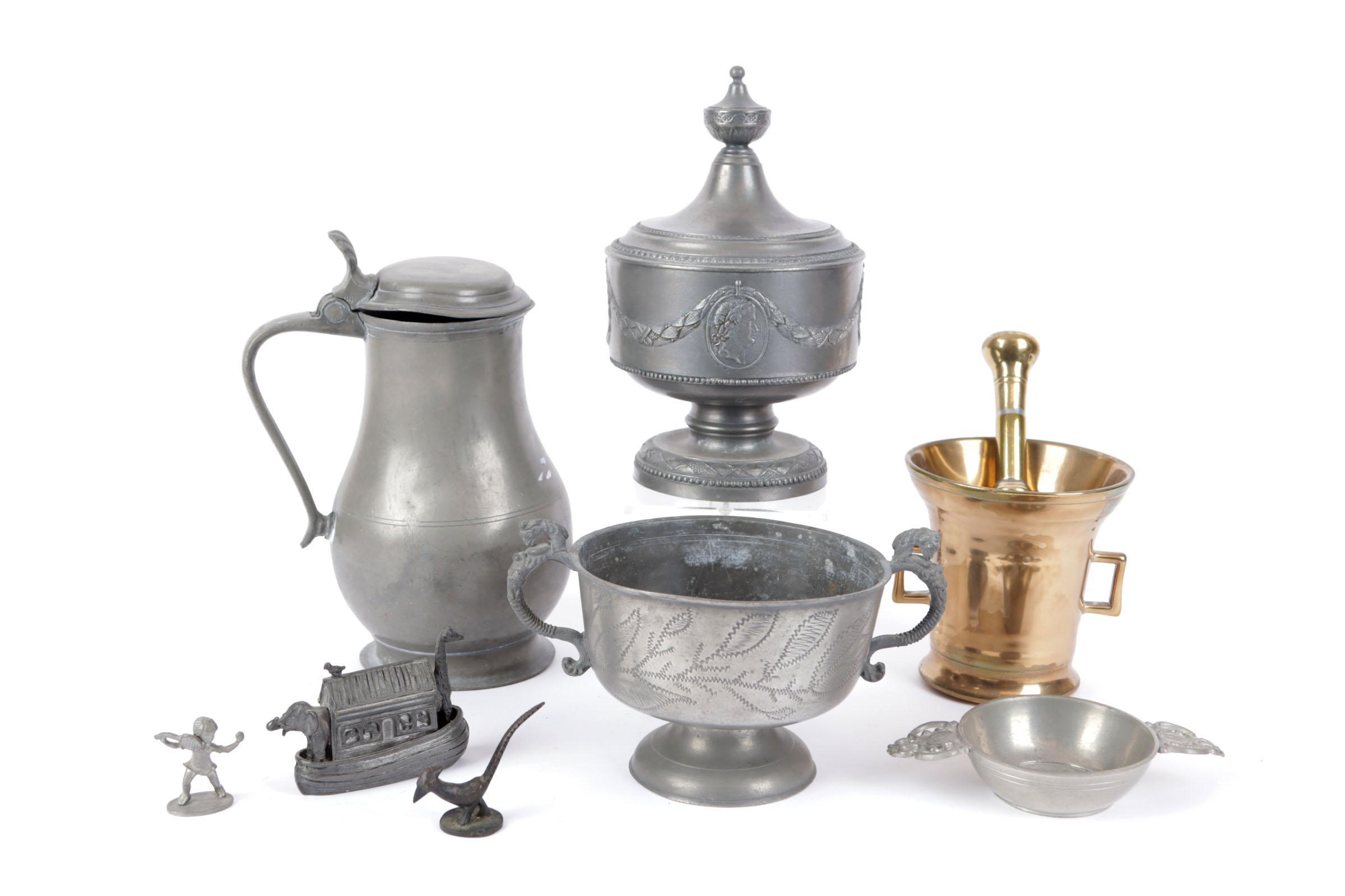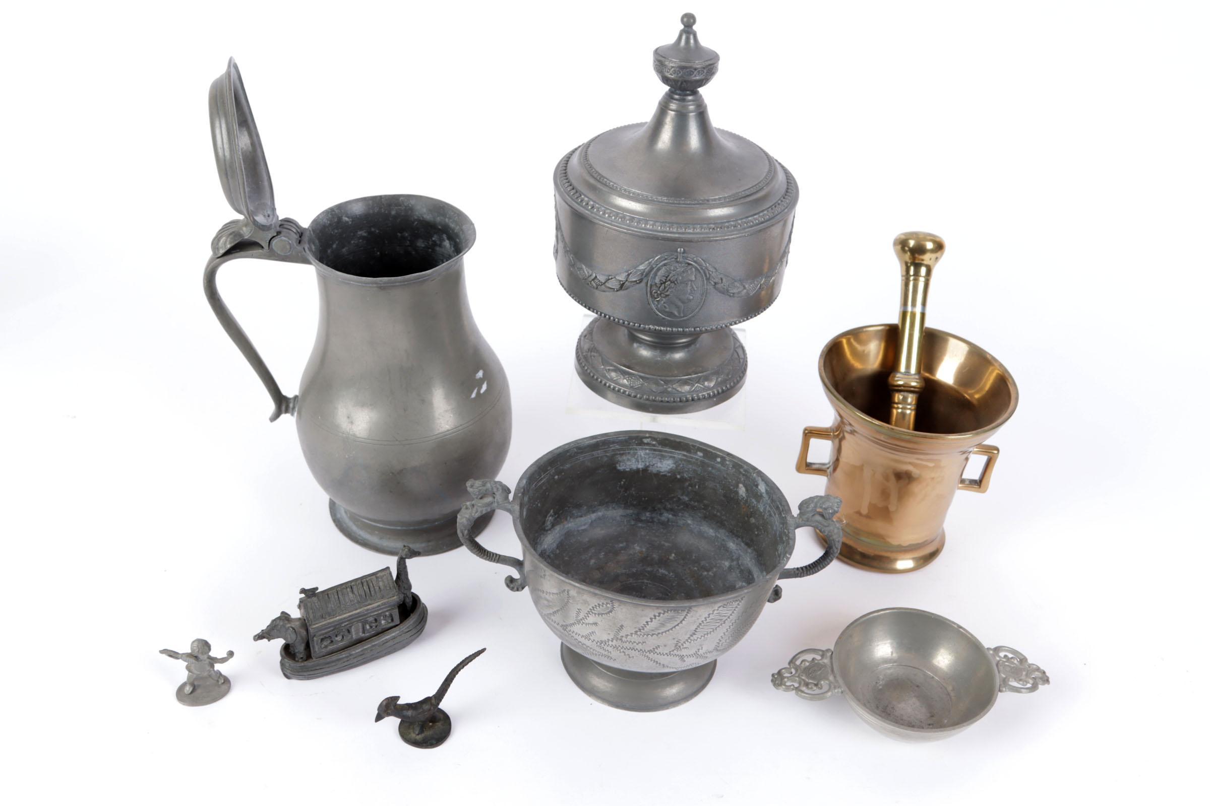 Koop divers tin, waaronder een tinnen neo-Empire tabakspot, 19e eeuw