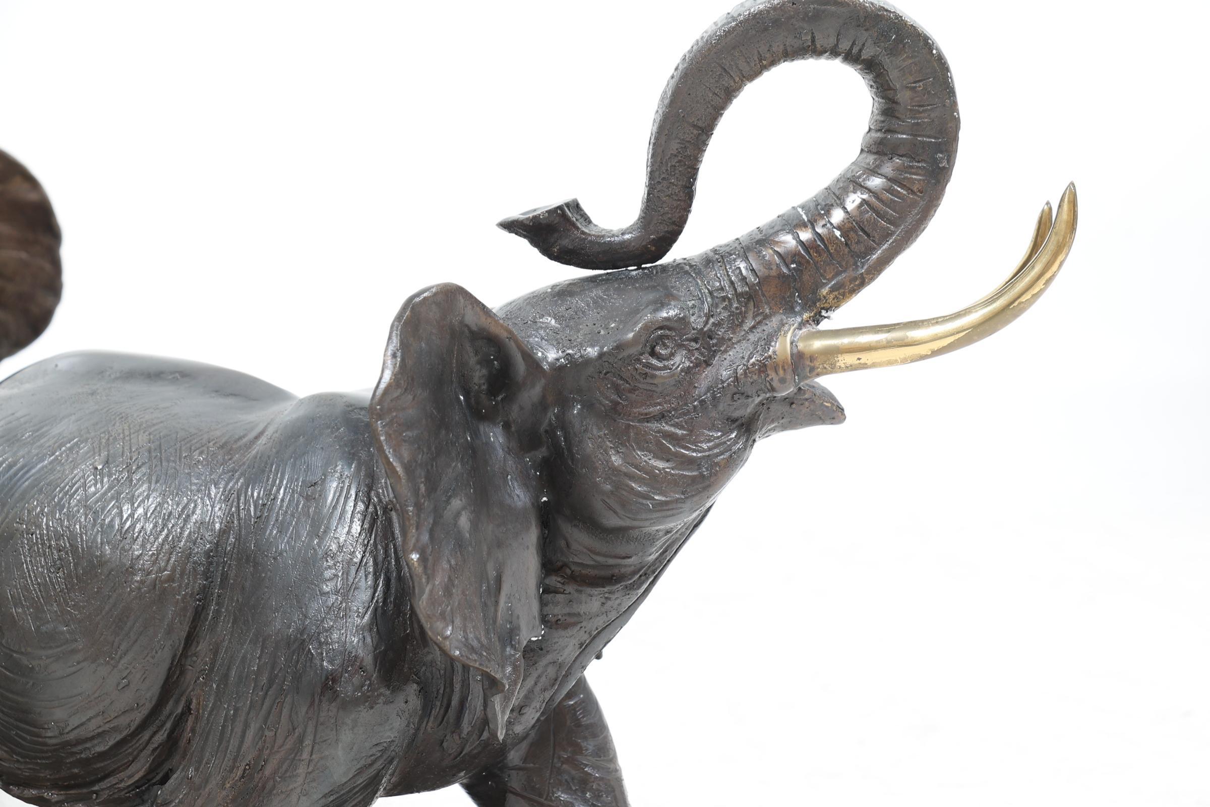Salontafel met glazen blad en onderstel met 3 bronzen olifanten, h.48 x diam.130 cm.