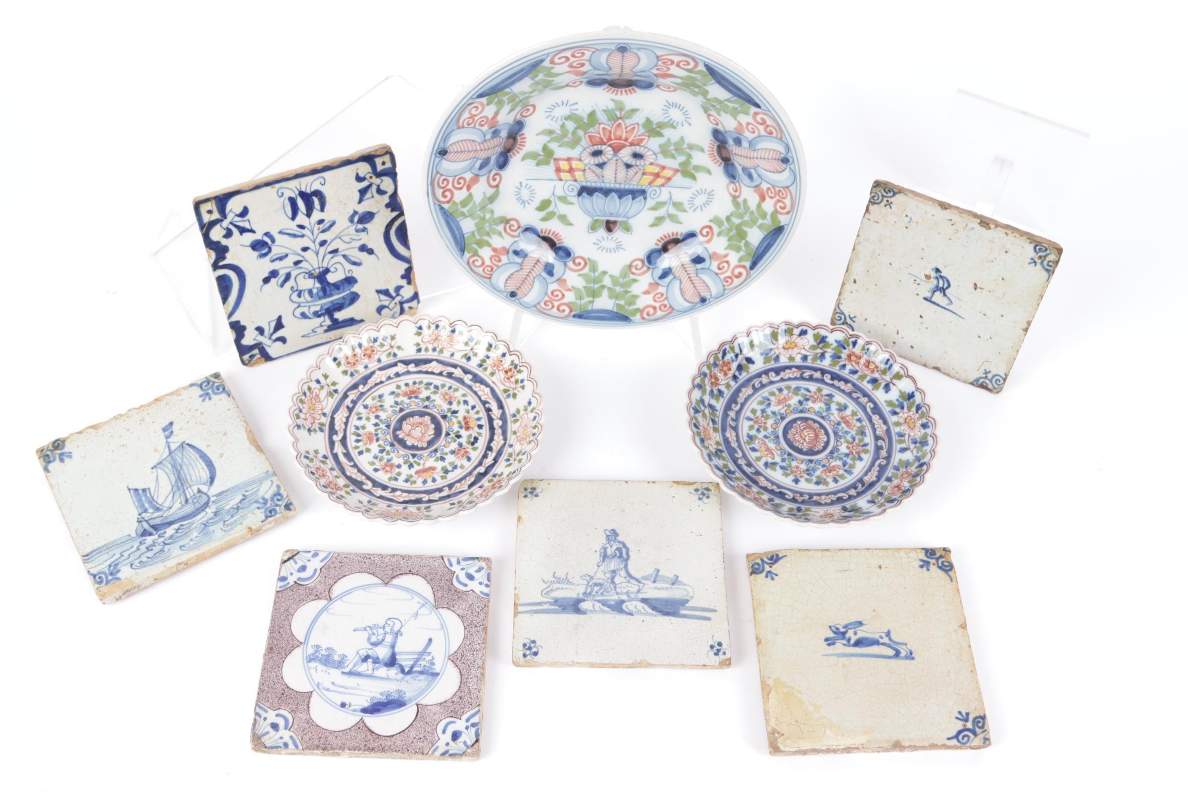 Koopje van 3 diverse Makkum bordjes en diverse tegeltjes