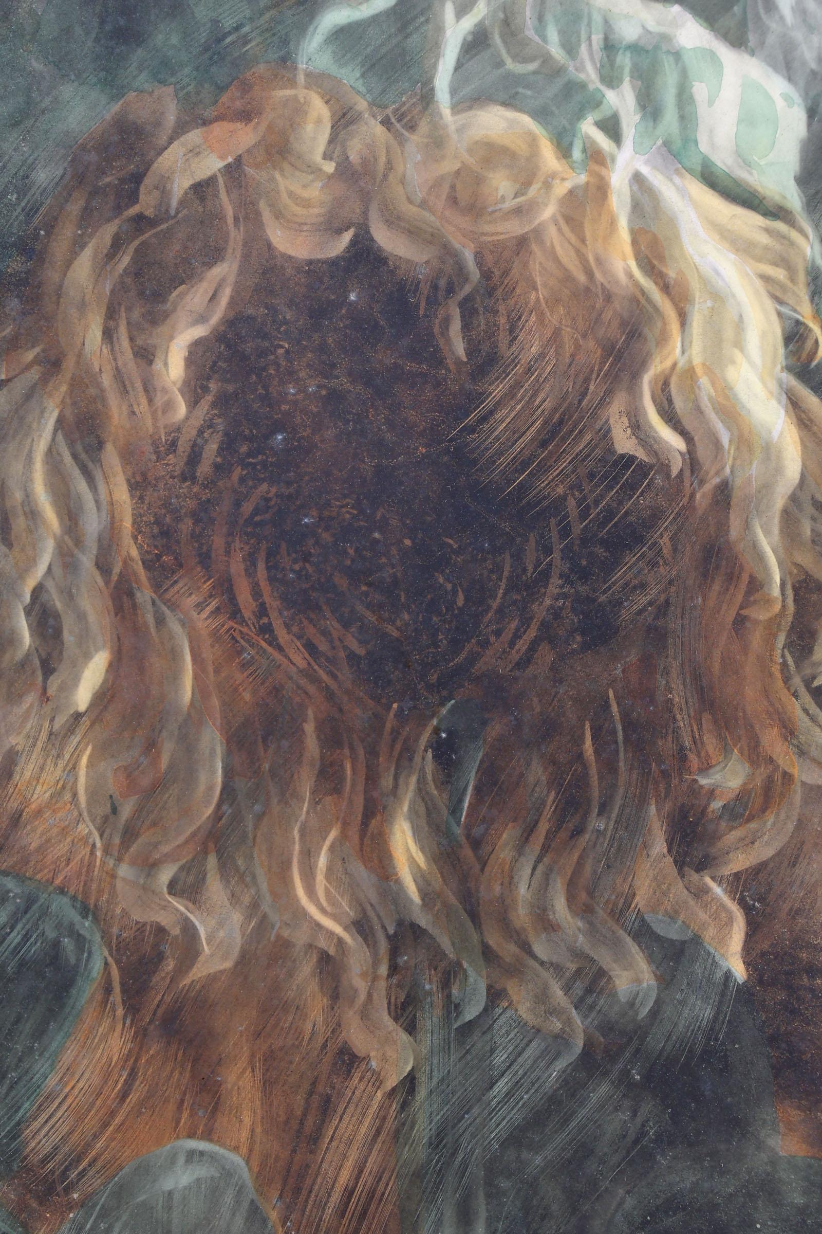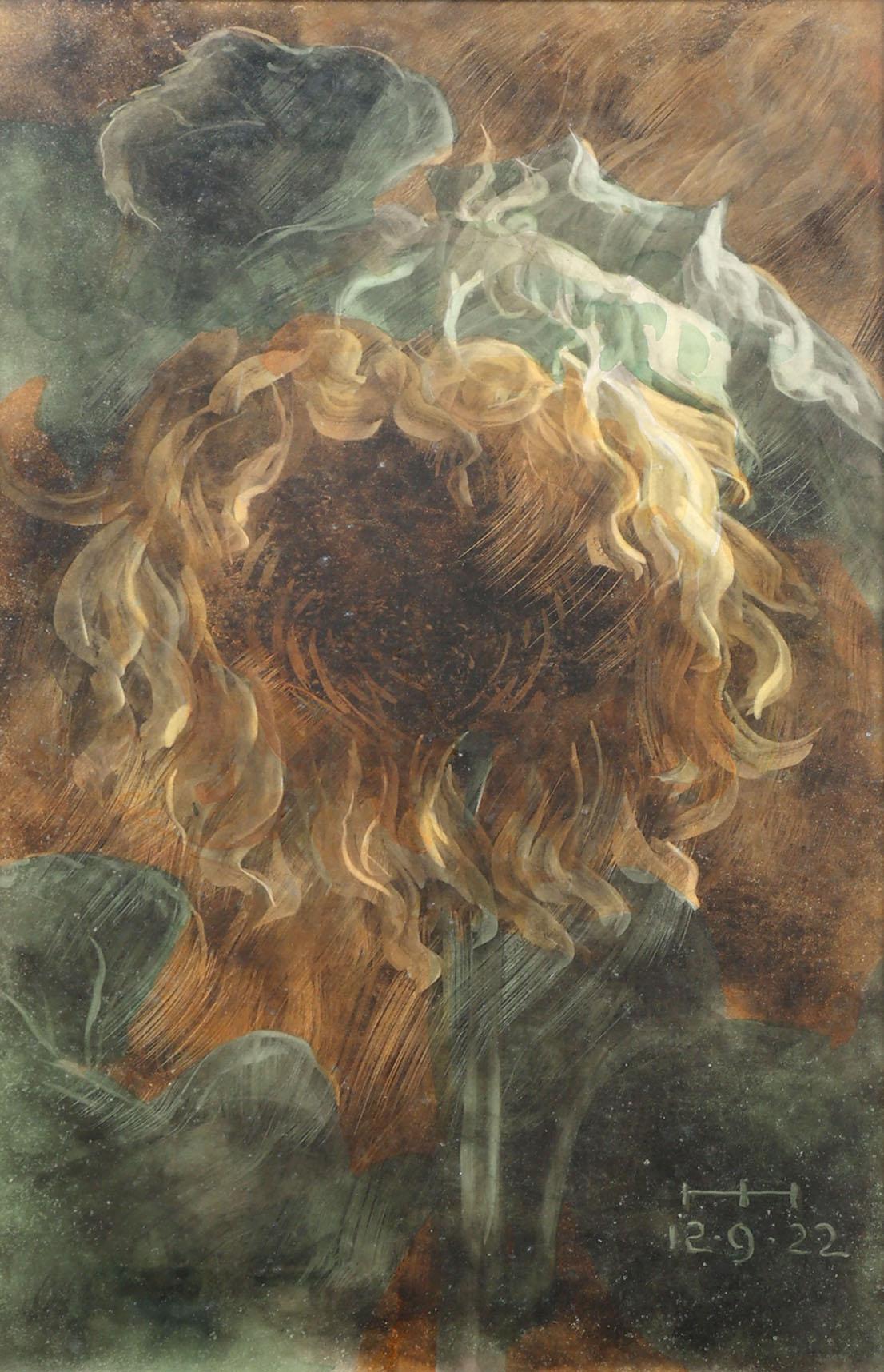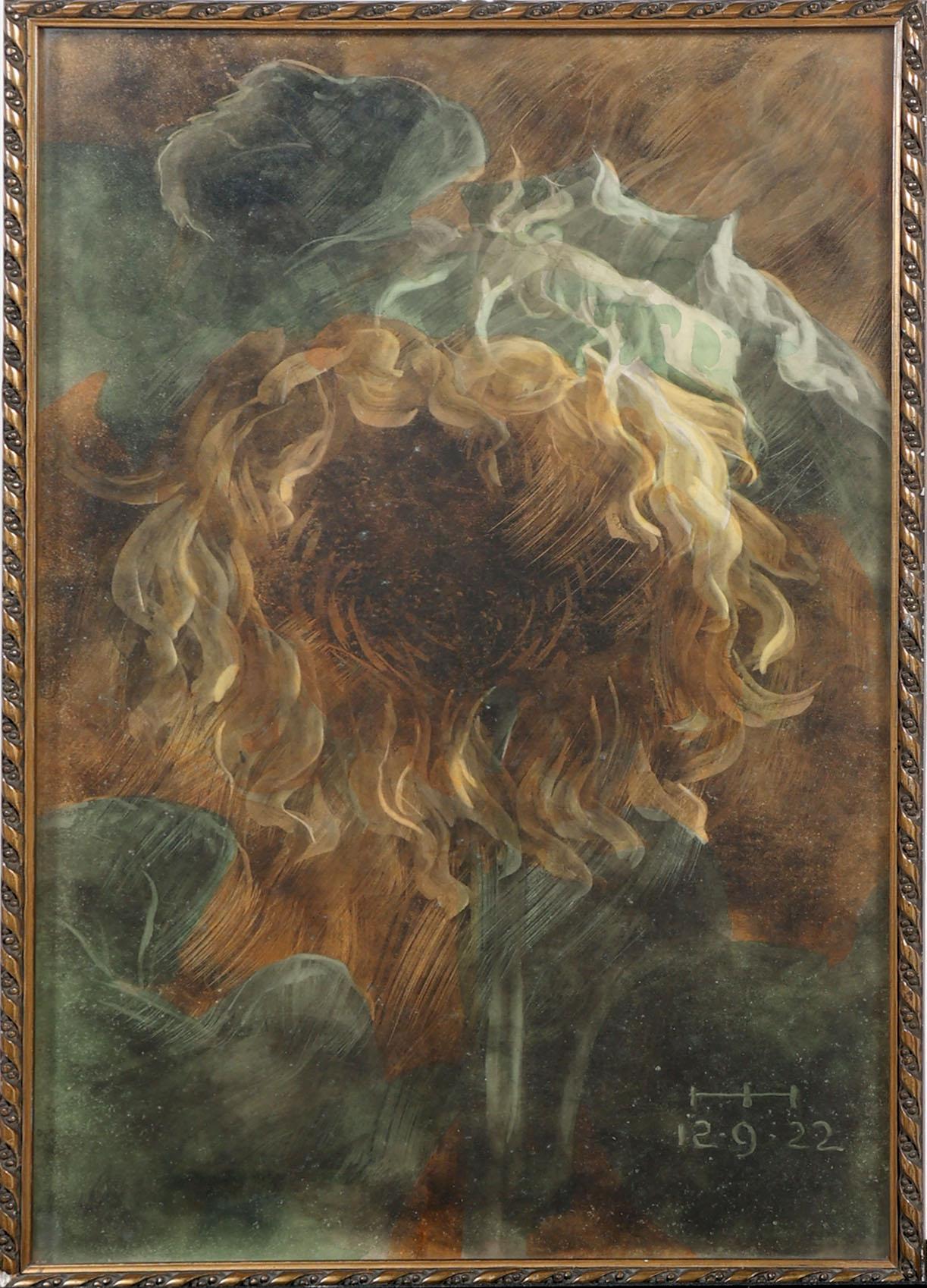 Ond. monogram, Zonnebloem, gouache op papier, 71 x 41 cm.