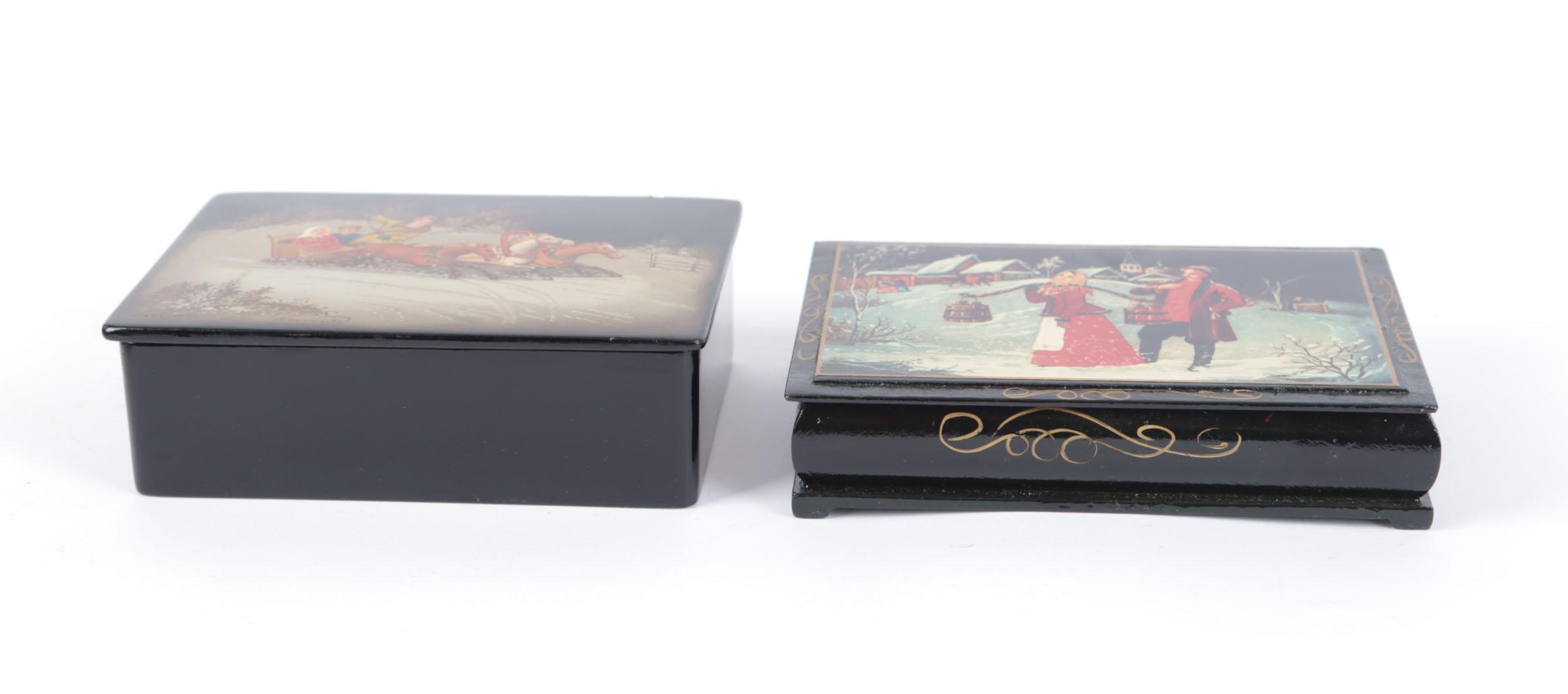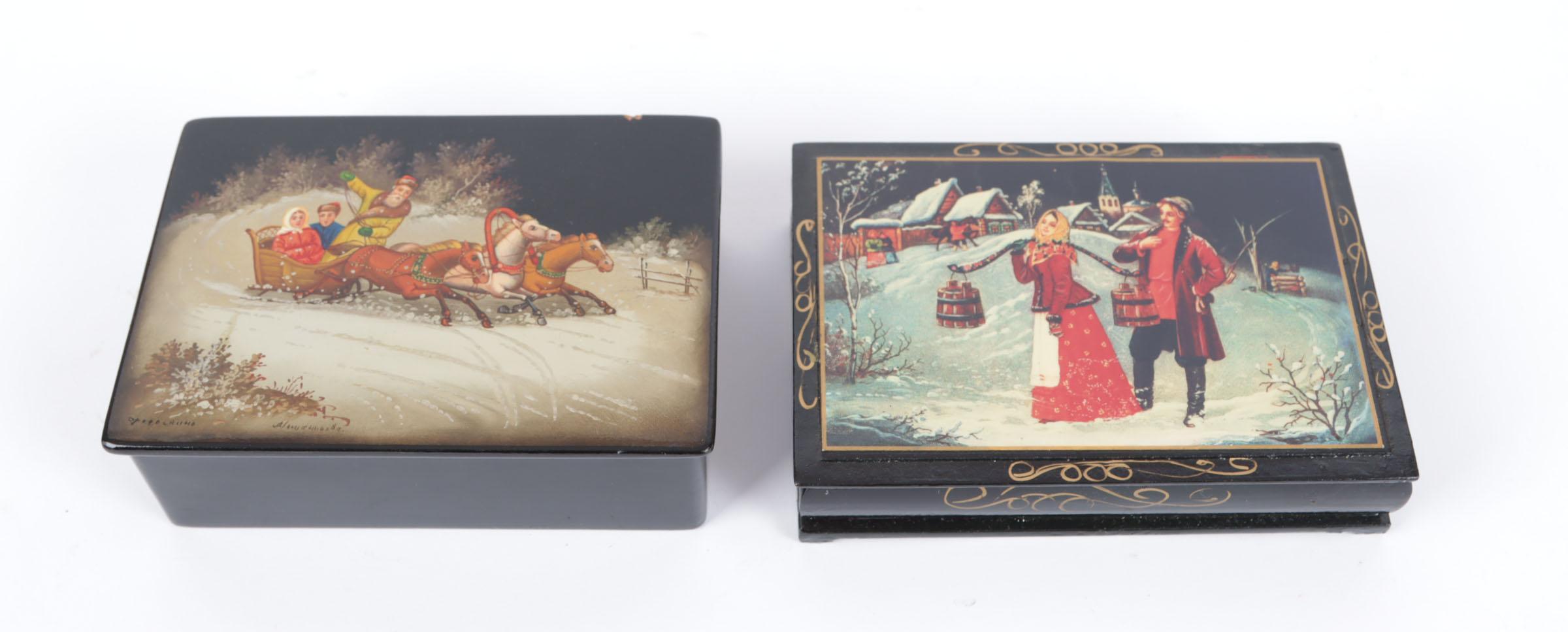 2 diverse Russische lakwerk doosjes