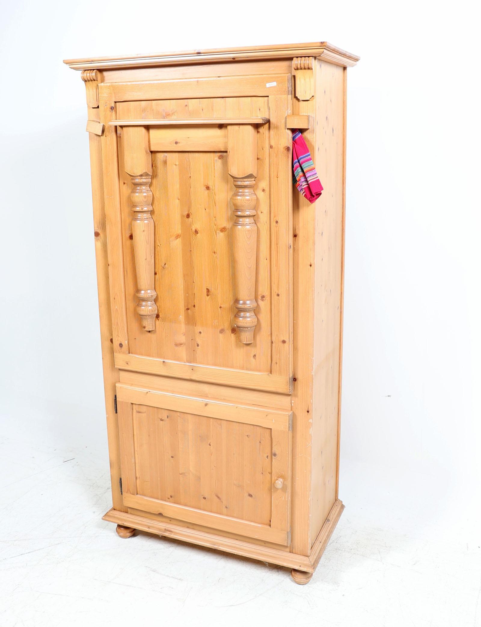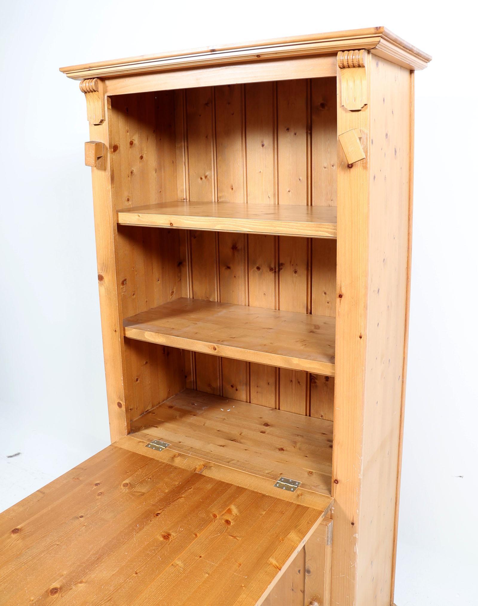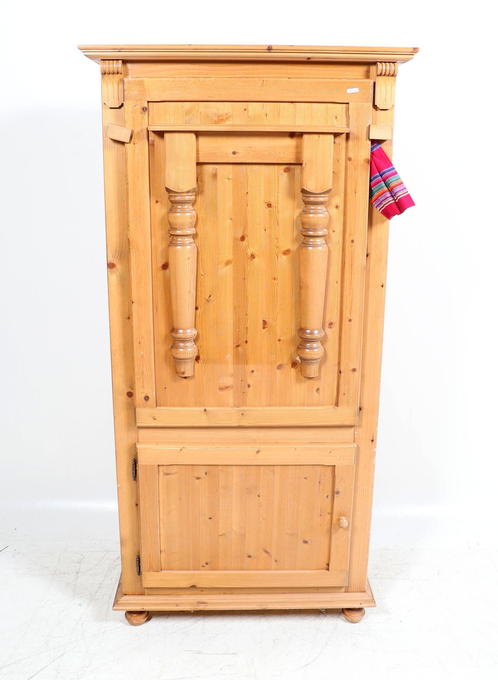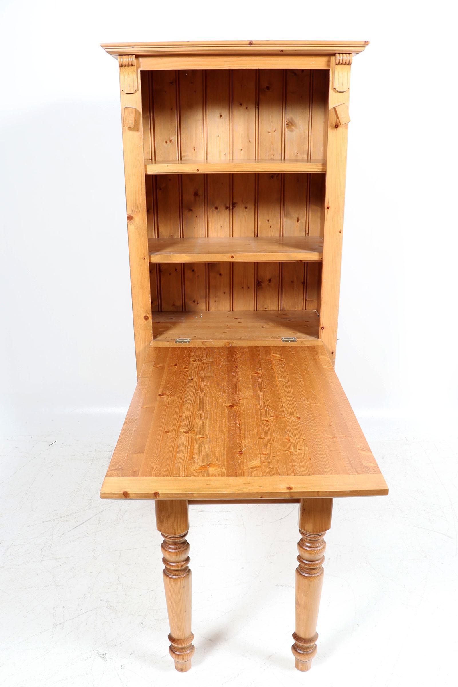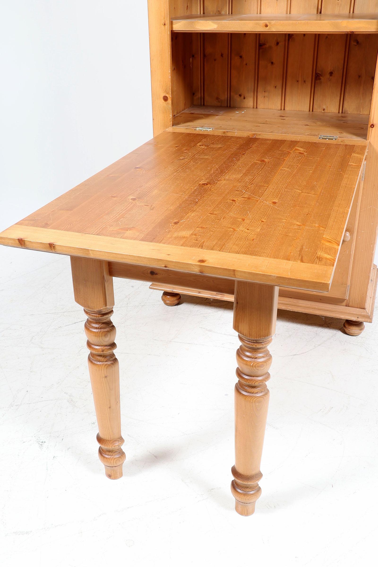 Grenenhouten kast met uitklapbaar tafelblad, h.190 x b.95 x d.48 cm.