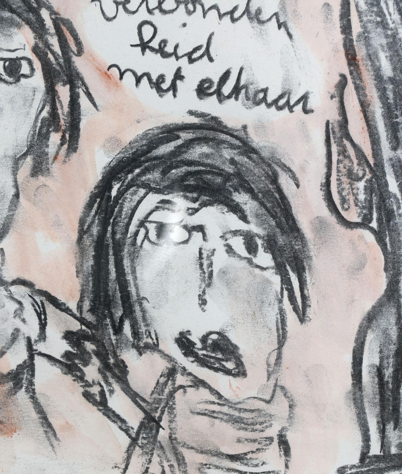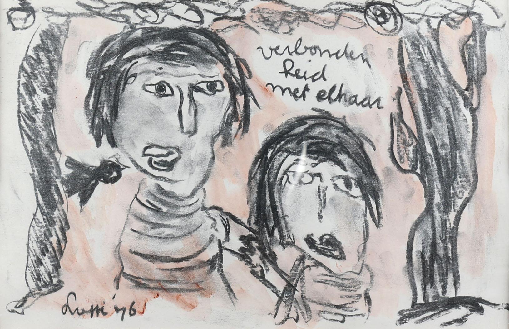 Charlotte 'Lotti' van der Gaag (1923-1999), Verbondenheid met elkaar, gemengde techniek op papier, 32 x 49 cm.
