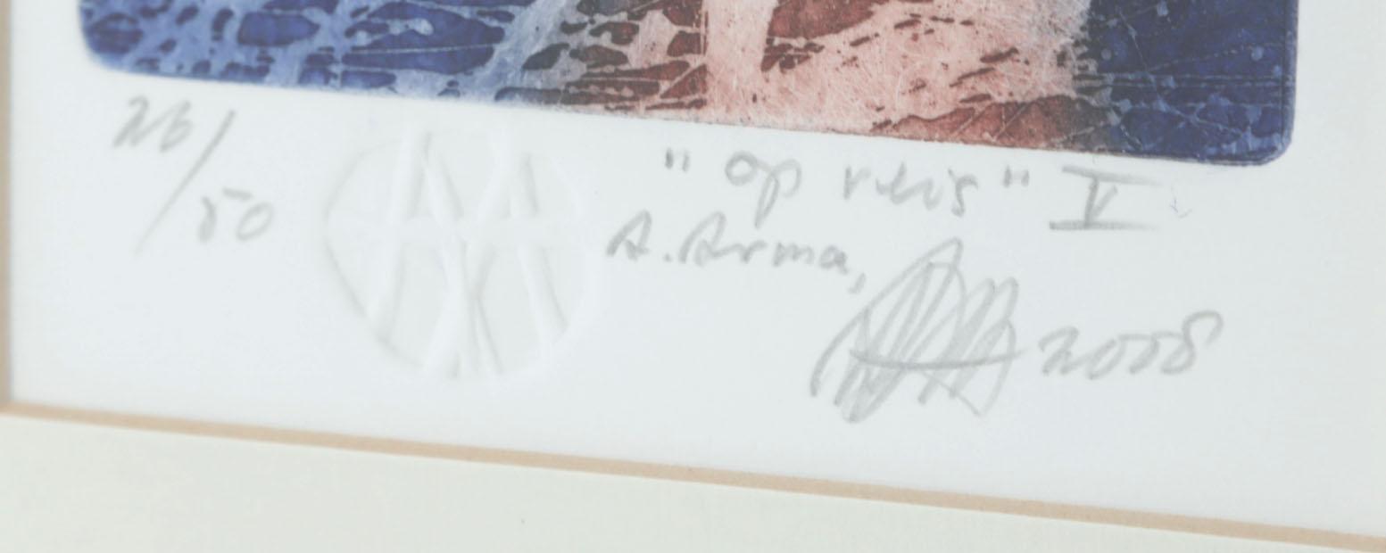Ad Arma (1953), Op reis V, handgesigneerde kleurenets, gedateerd 2008, genummerd 26/50, 13 x 11,5 cm.