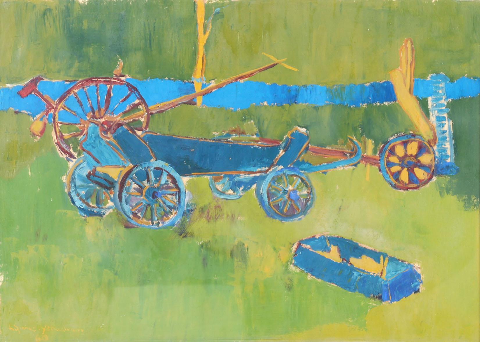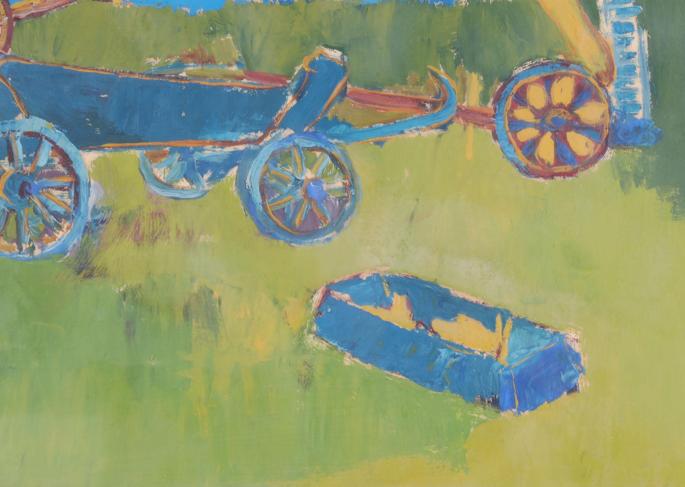 Leen Spaans (1928-1999), Boerenwagens, gouache op papier, 39 x 56 cm.