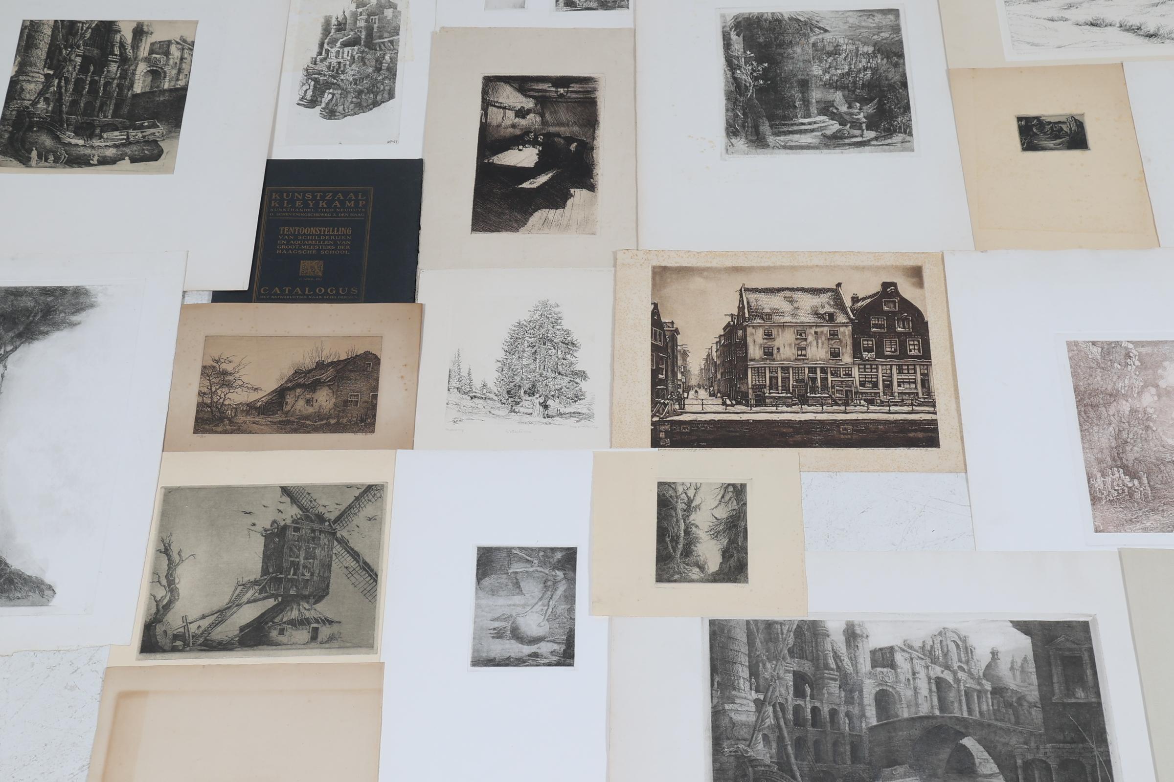 Map divers grafiek, w.o. diverse etsen van Willem Nijs, nadruk van een Rembrandt-ets, Cornelis Brandenburg, Toon de Jongh, Harald Pickert en Käthe Kollwitz