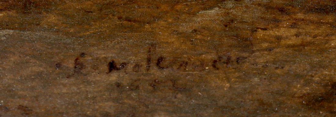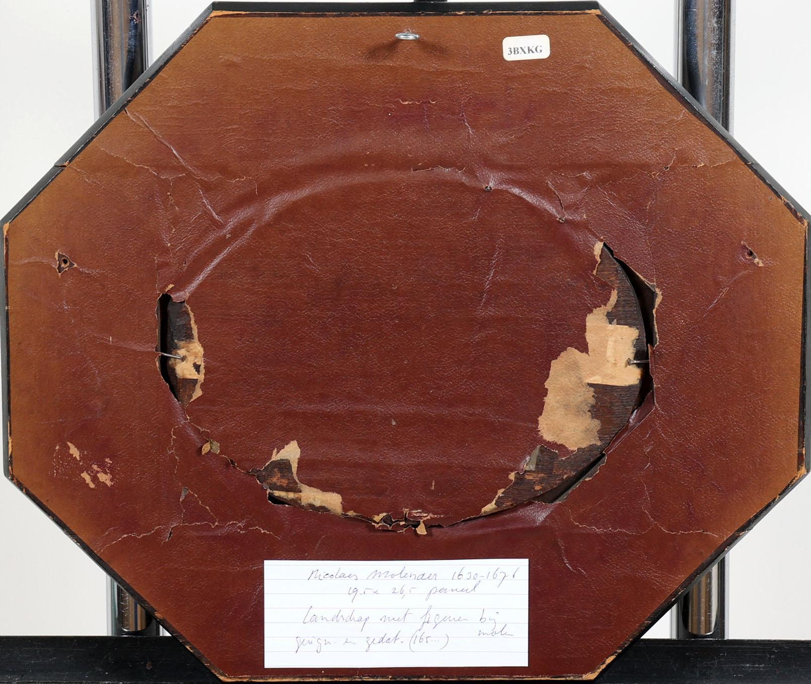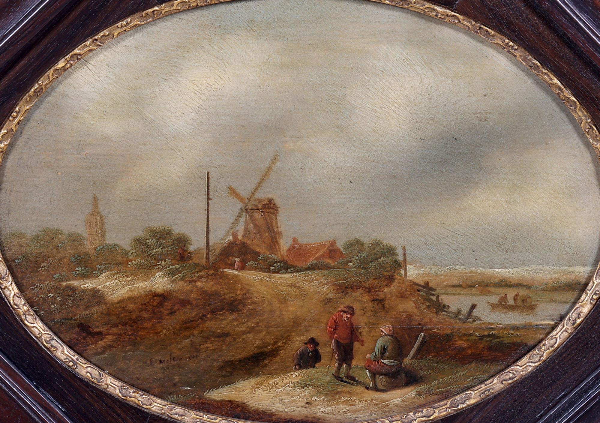 Nicolaes Molenaer (1630-1676), Personen in landschap met op de achtergrond een molen, olieverf op paneel, 19,5 x 26,5 cm.