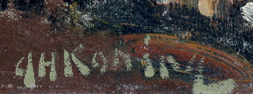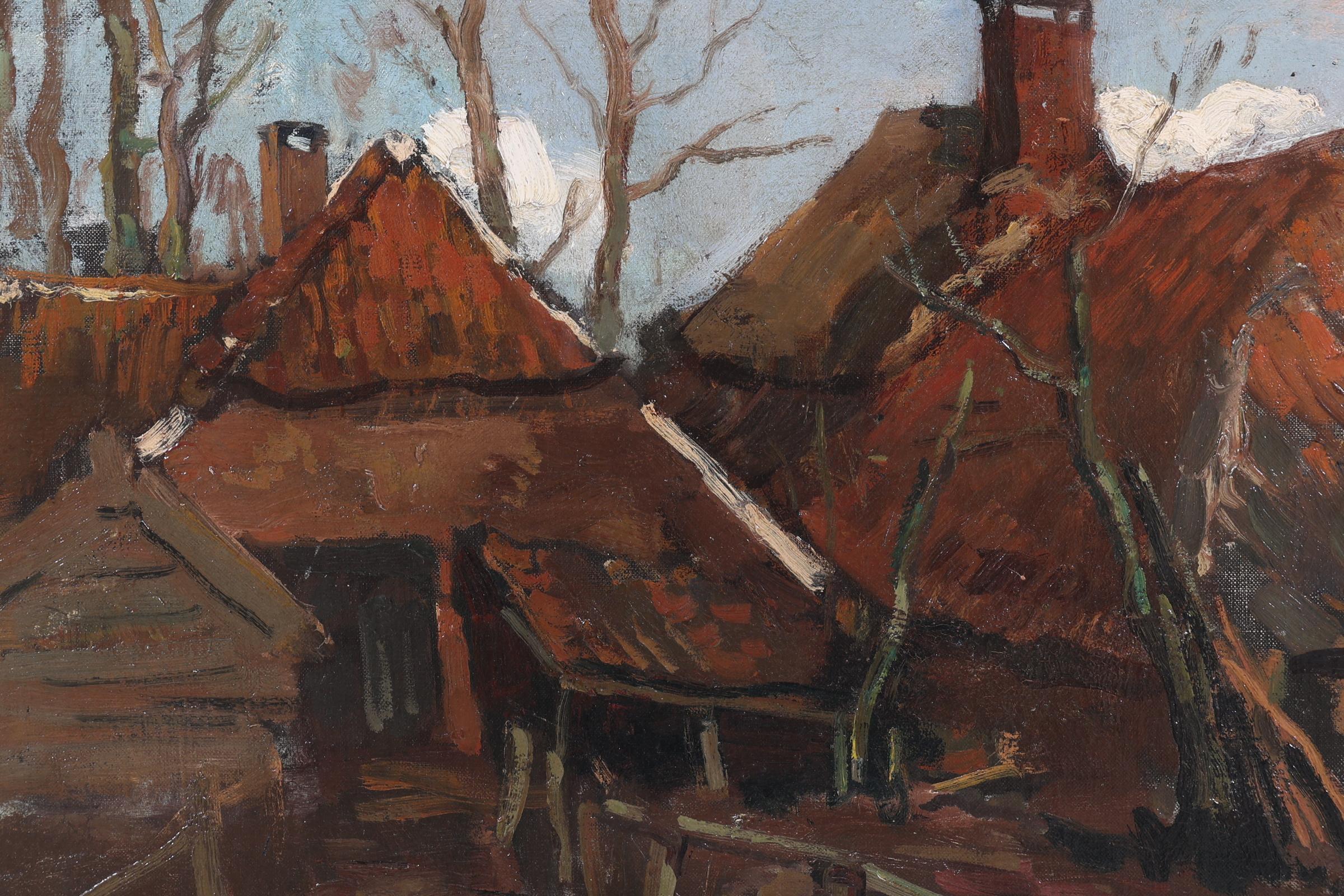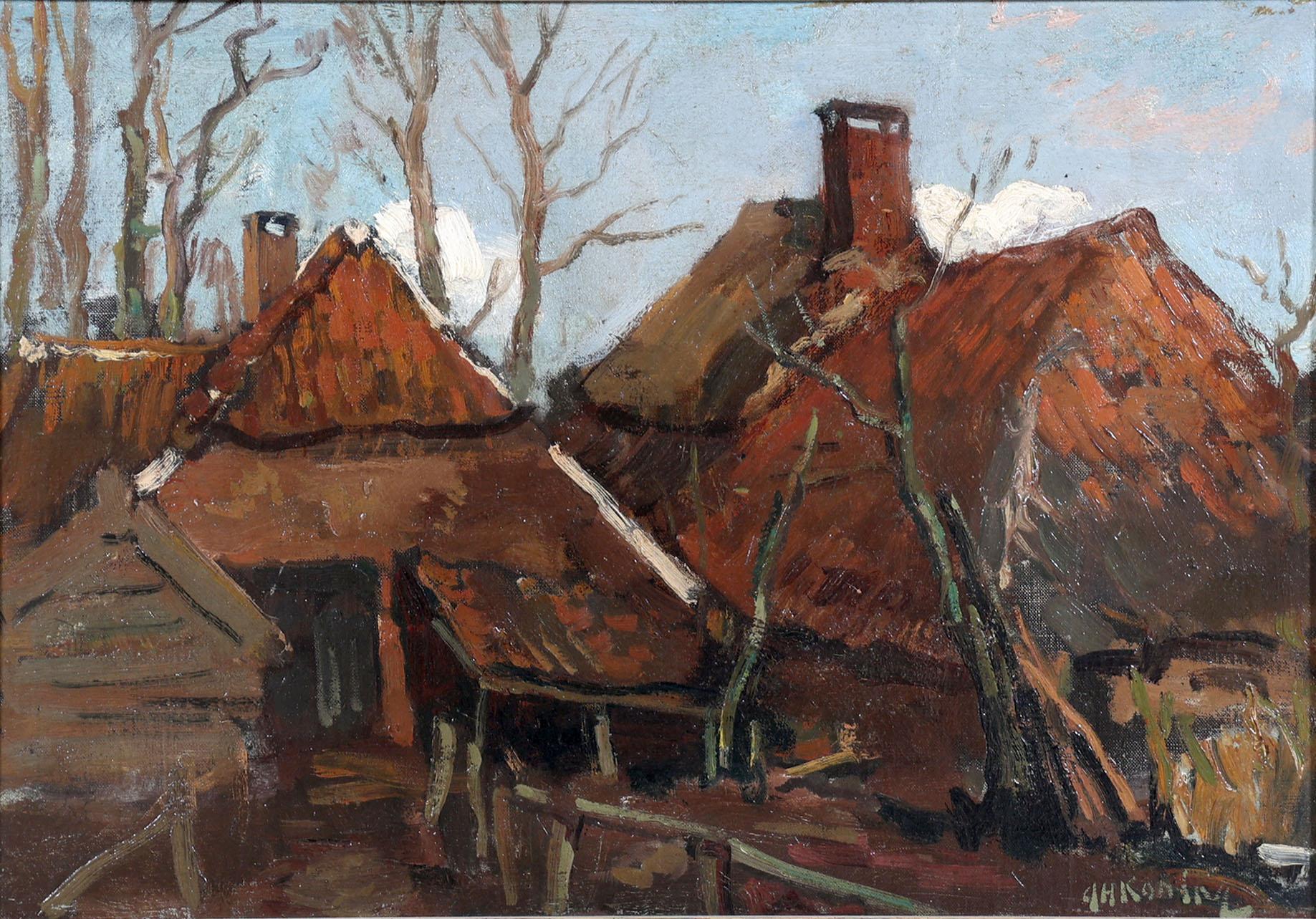 'Arnold' Hendrik Koning (1860-1945), Boerderijen, olieverf op paneel, 33,5 x 49 cm.