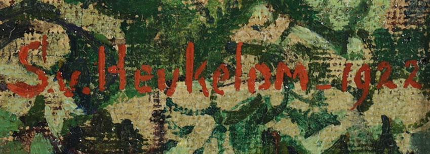 Sara van Heukelom (1885-1963), Tuin voor houten huis, olieverf op doek, gedateerd 1922, 50,5 x 67 cm.