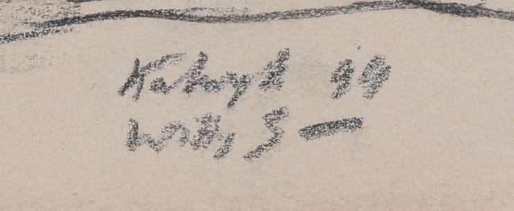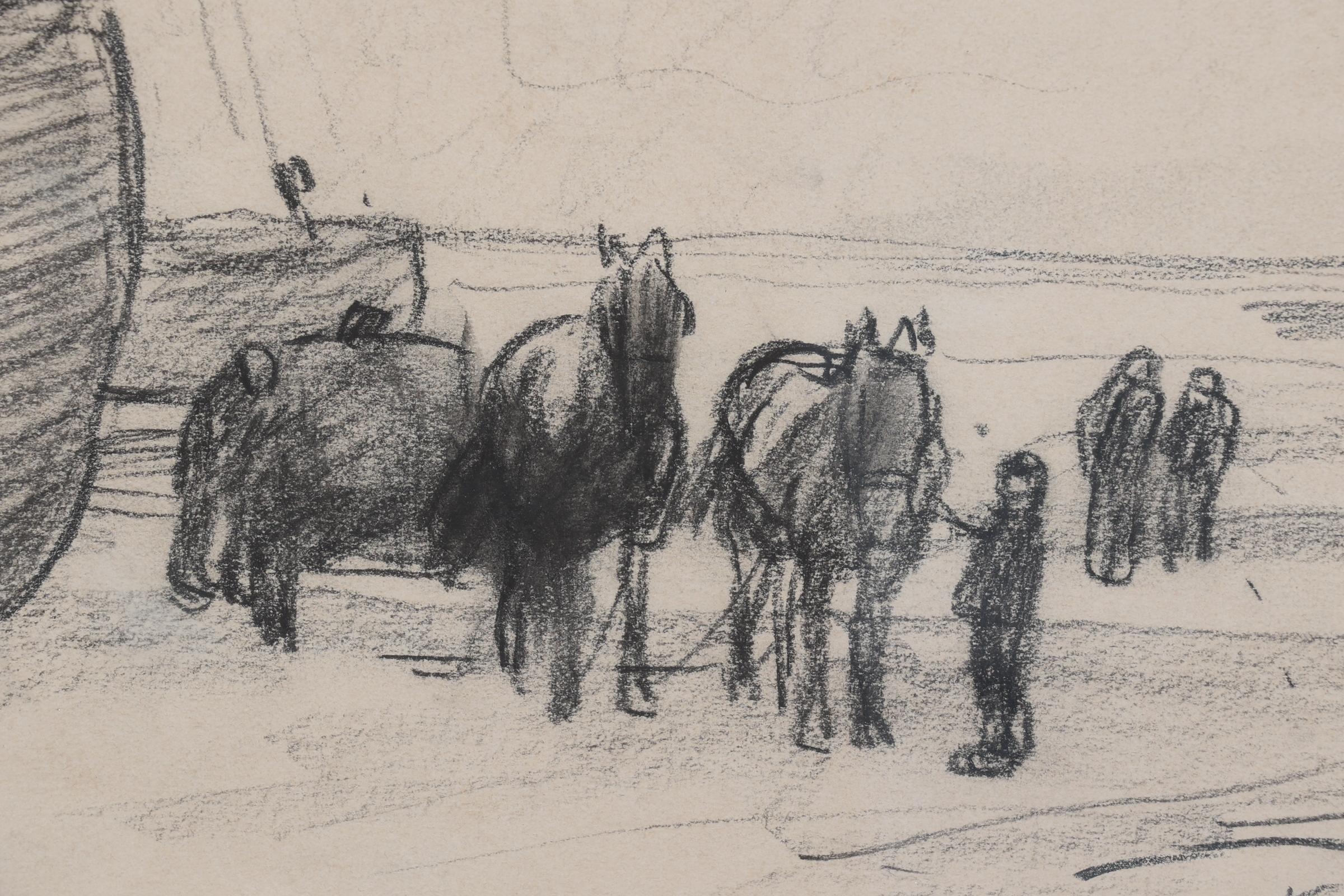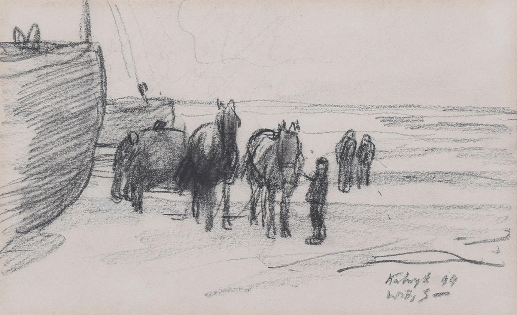 Jan Willem (Willy) Sluiter (1873 - 1949), Paarden te Katwijk aan Zee, houtskool op papier, gedateerd '99, 14 x 23 cm.