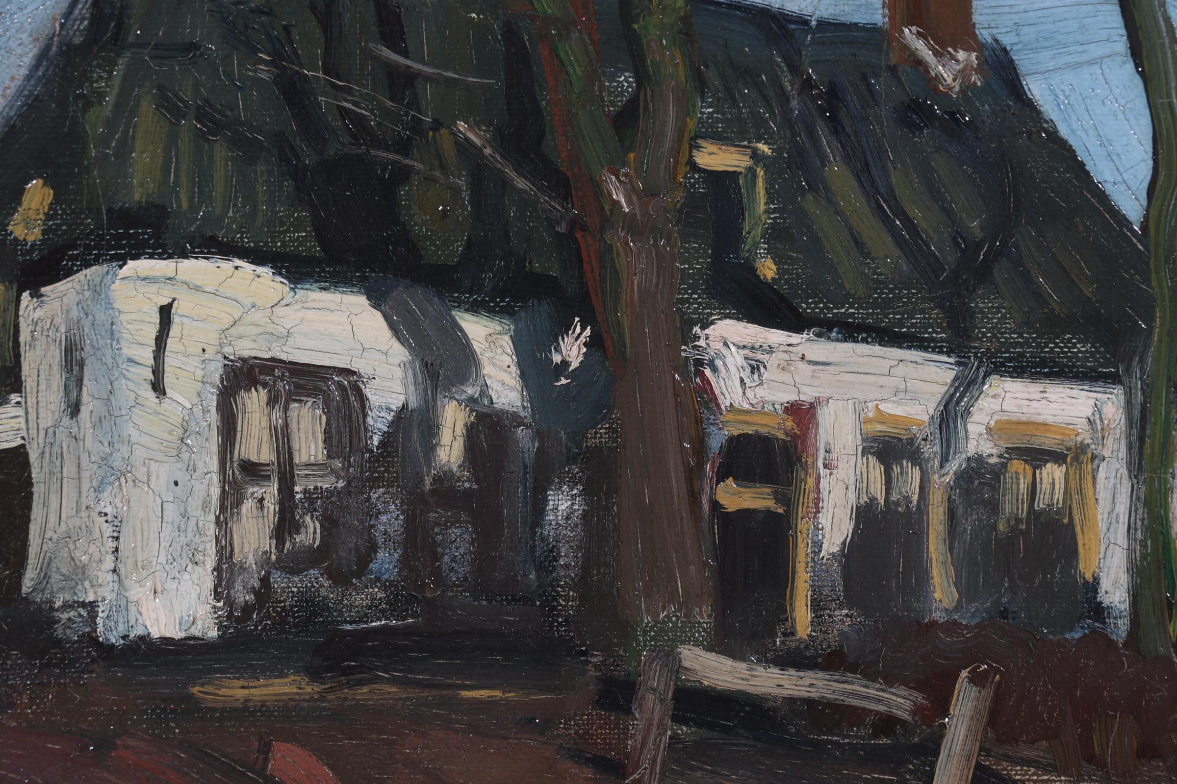 Ond. gesign., Boerderij met knotwilg, olieverf op board, 20 x 26,5 cm.