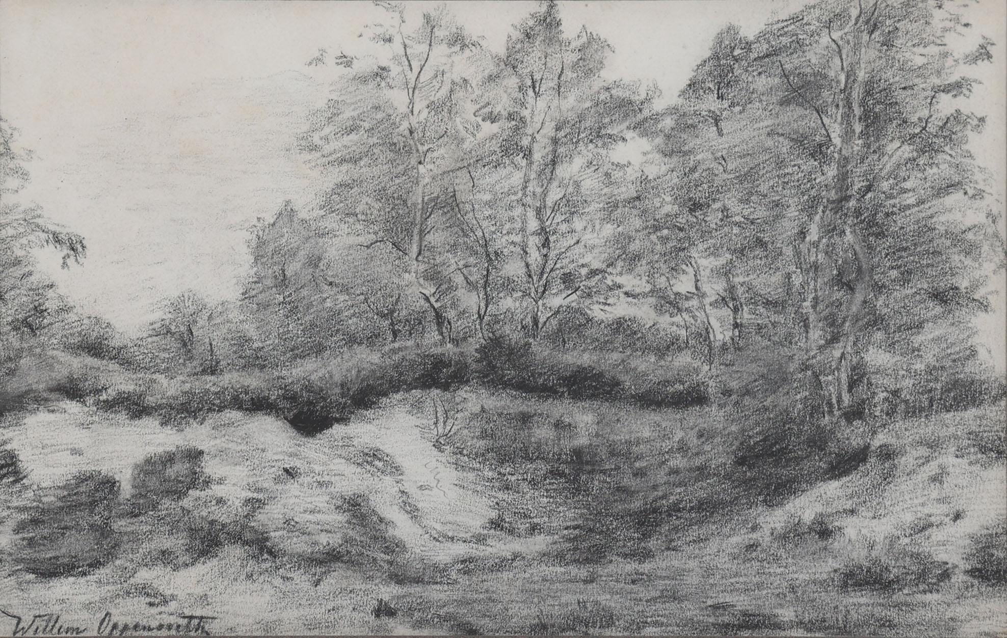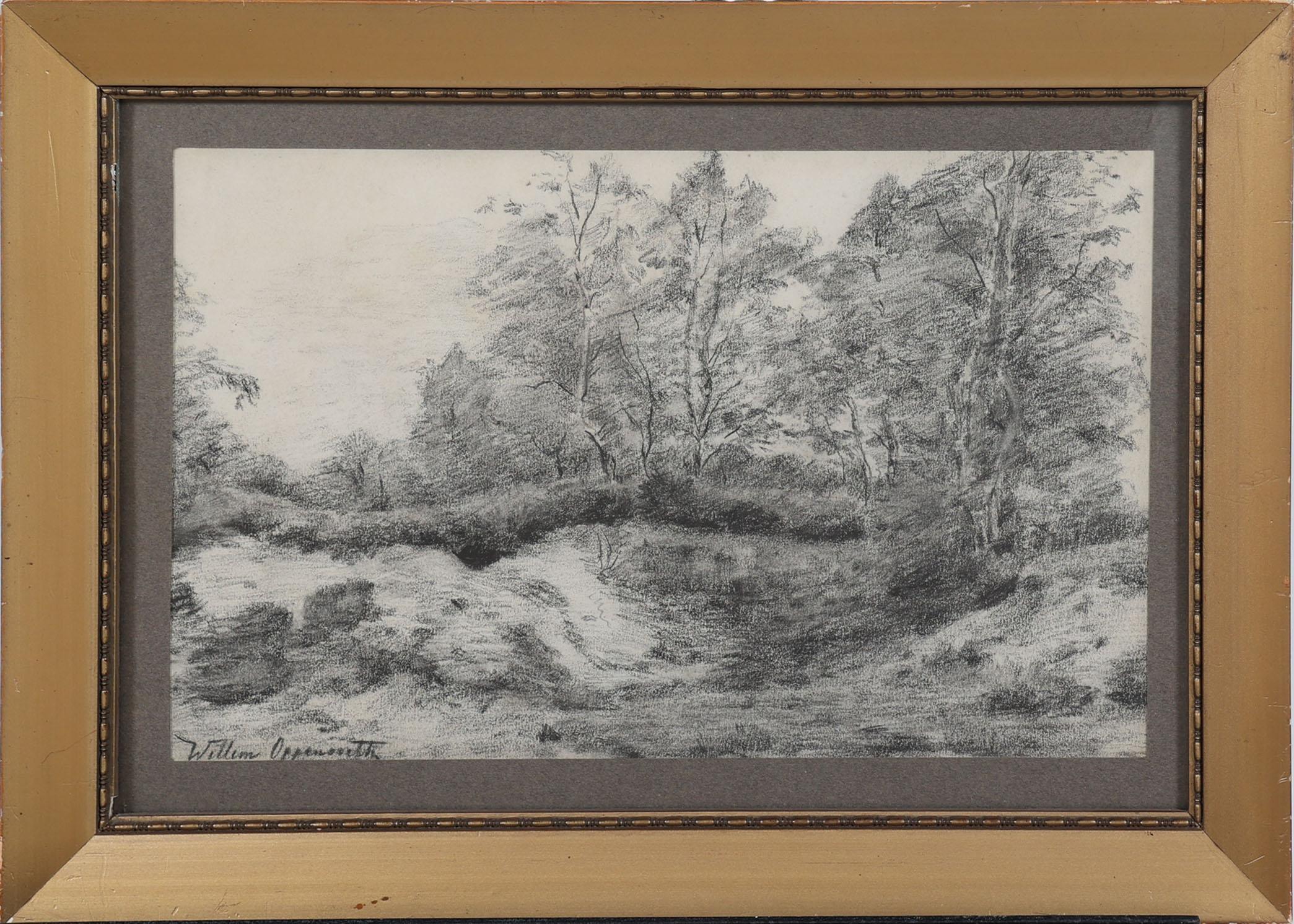 Willem J. Oppenoorth (1847-1905), Boslandschap, houtskooltekening, 17 x 26 cm.