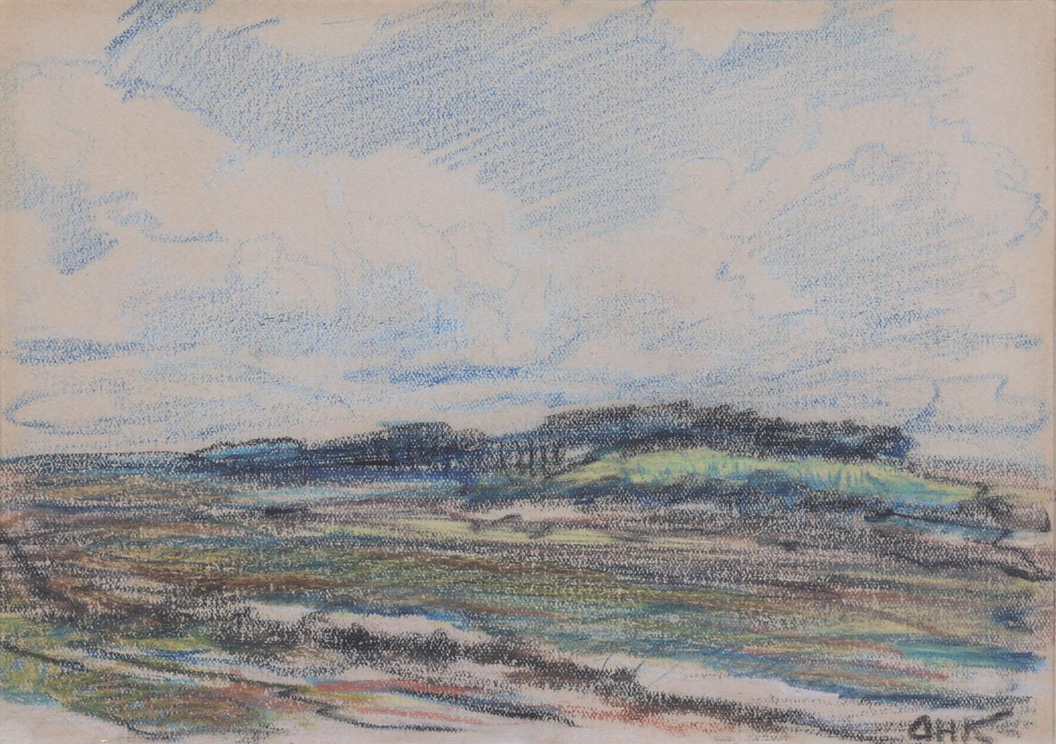 'Arnold' Hendrik Koning (1860-1945), Landschap, pasteltekening, gemonogrammeerd rechtsonder, 13,5 x 18,5 cm.