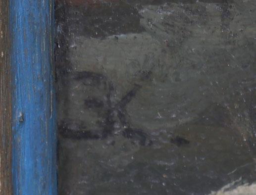 Monogram EK, Edzard Koning, Heidelandschap, marouflé, 23 x 30 cm.