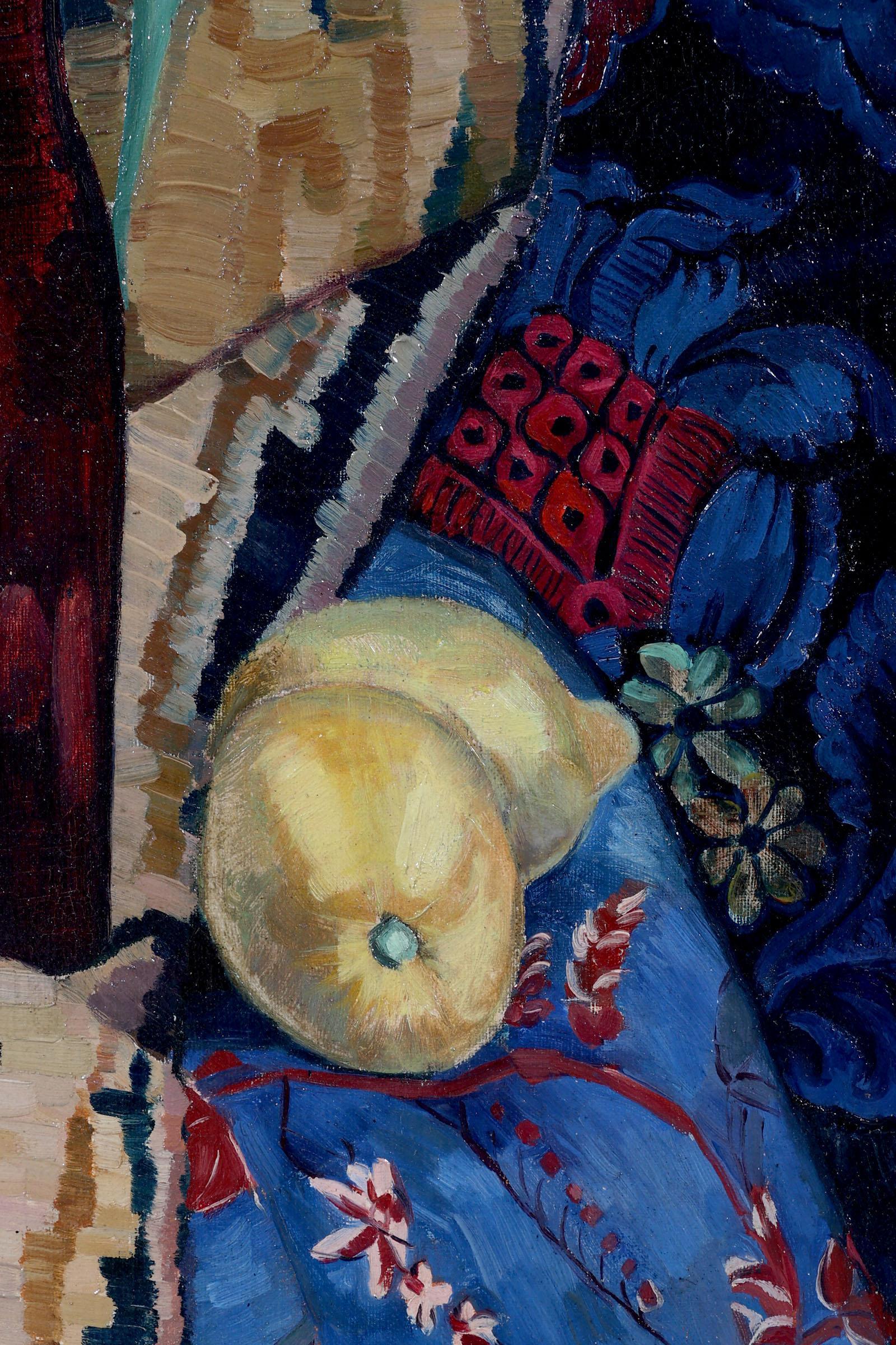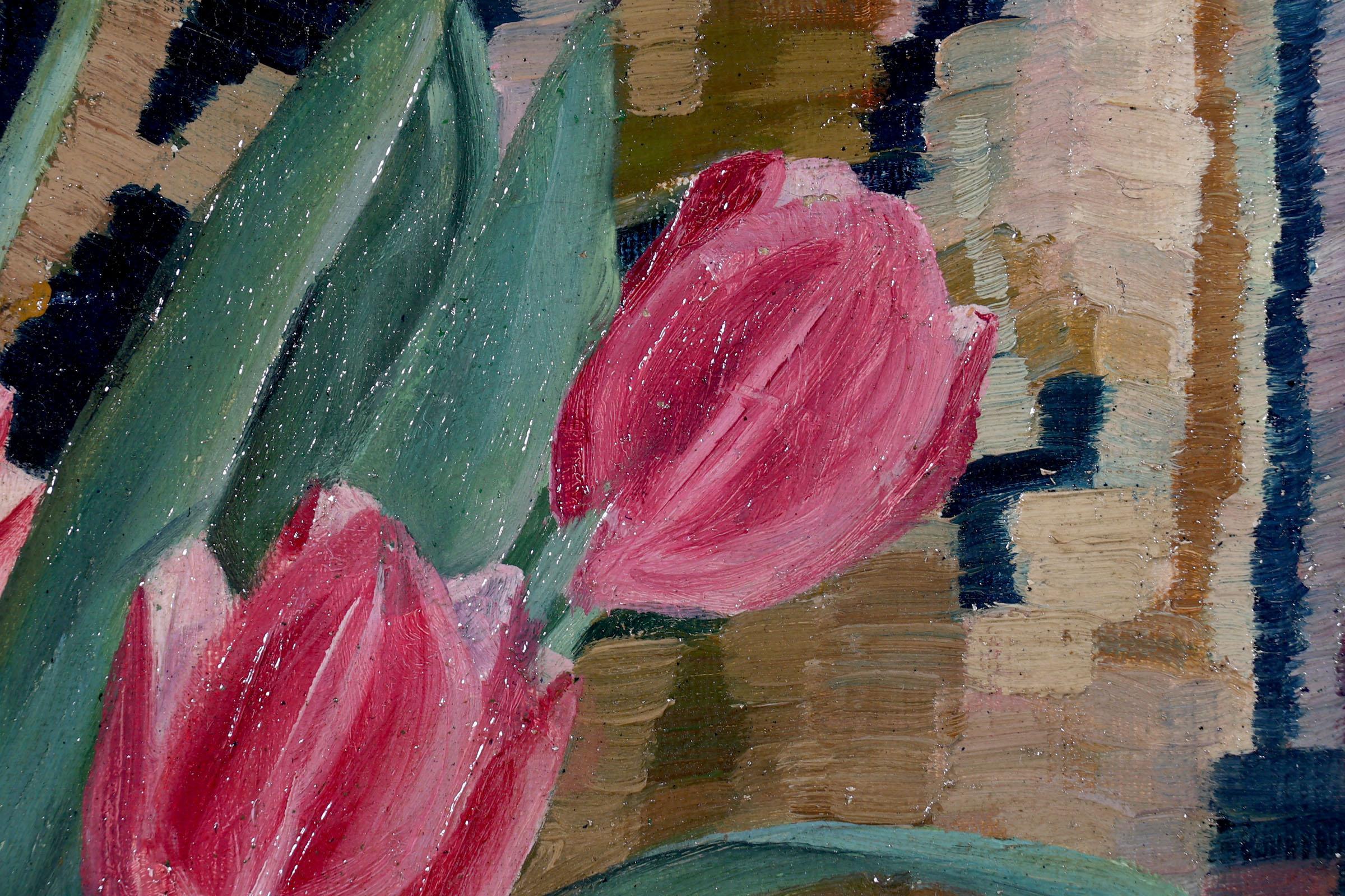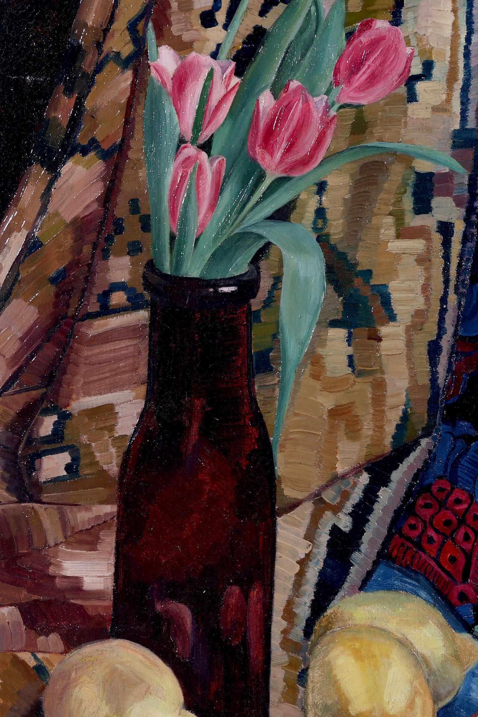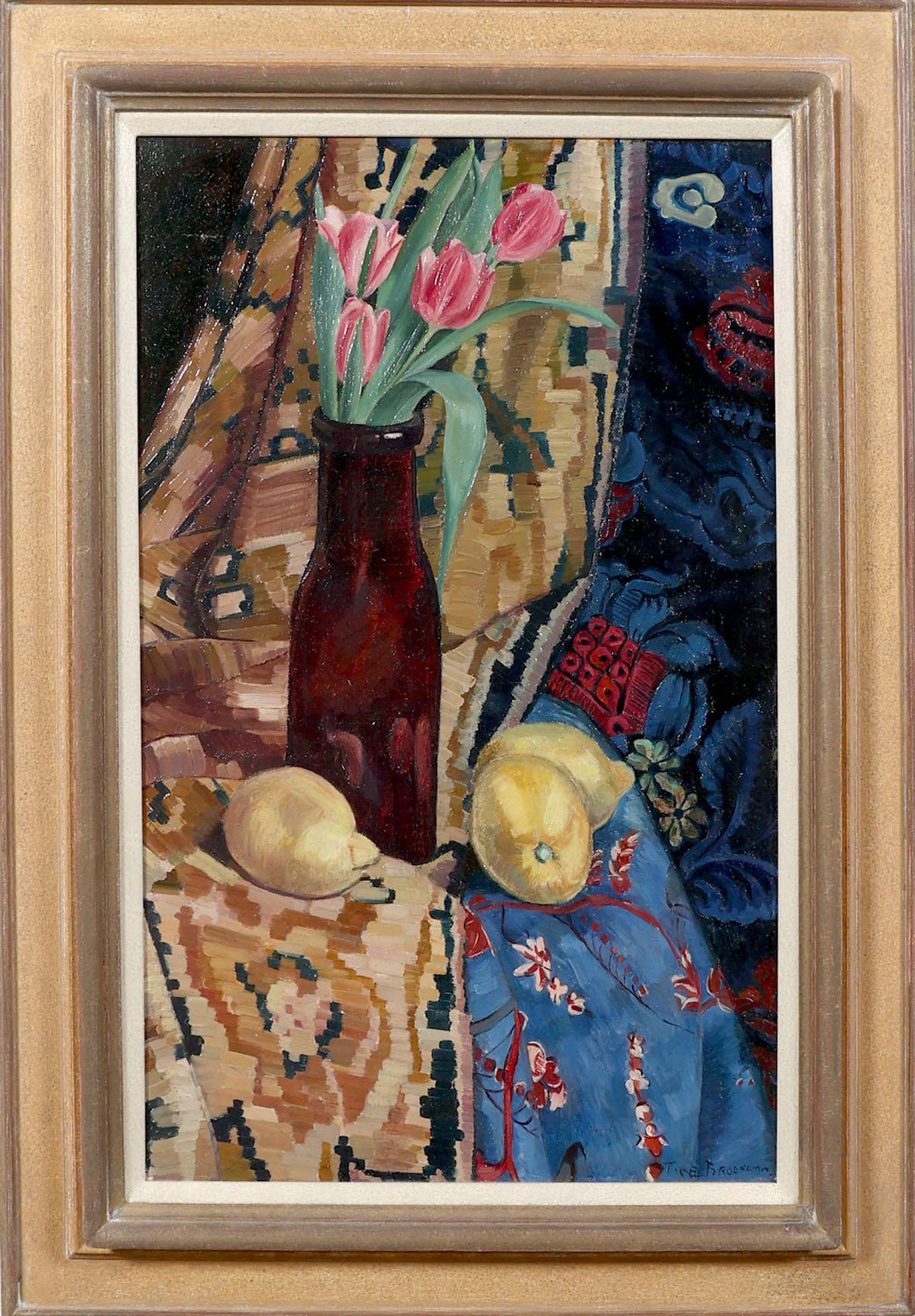 Tine Broekema, Stilleven met tulpen en citroenen, olieverf op doek, 64 x 39 cm.