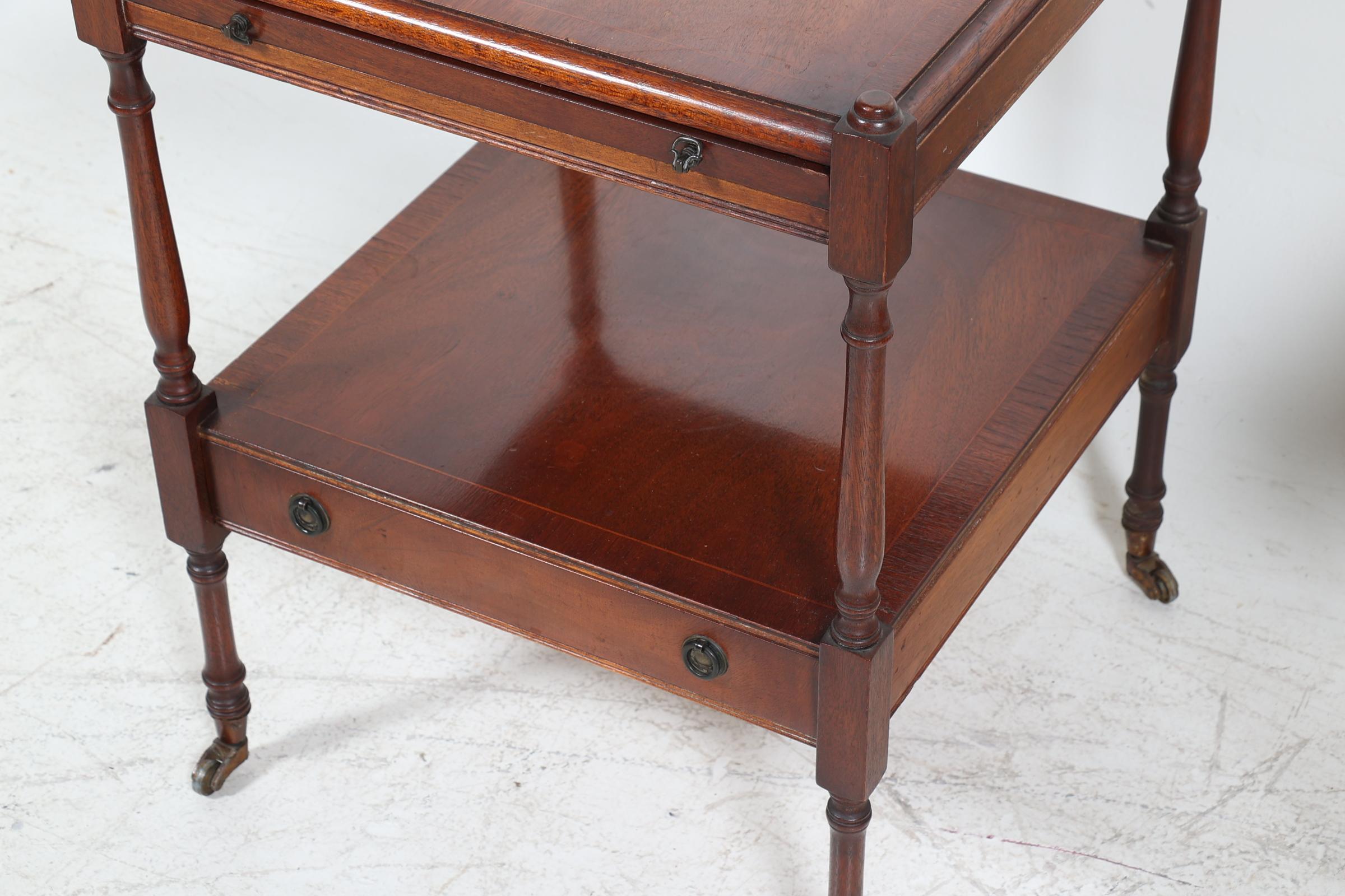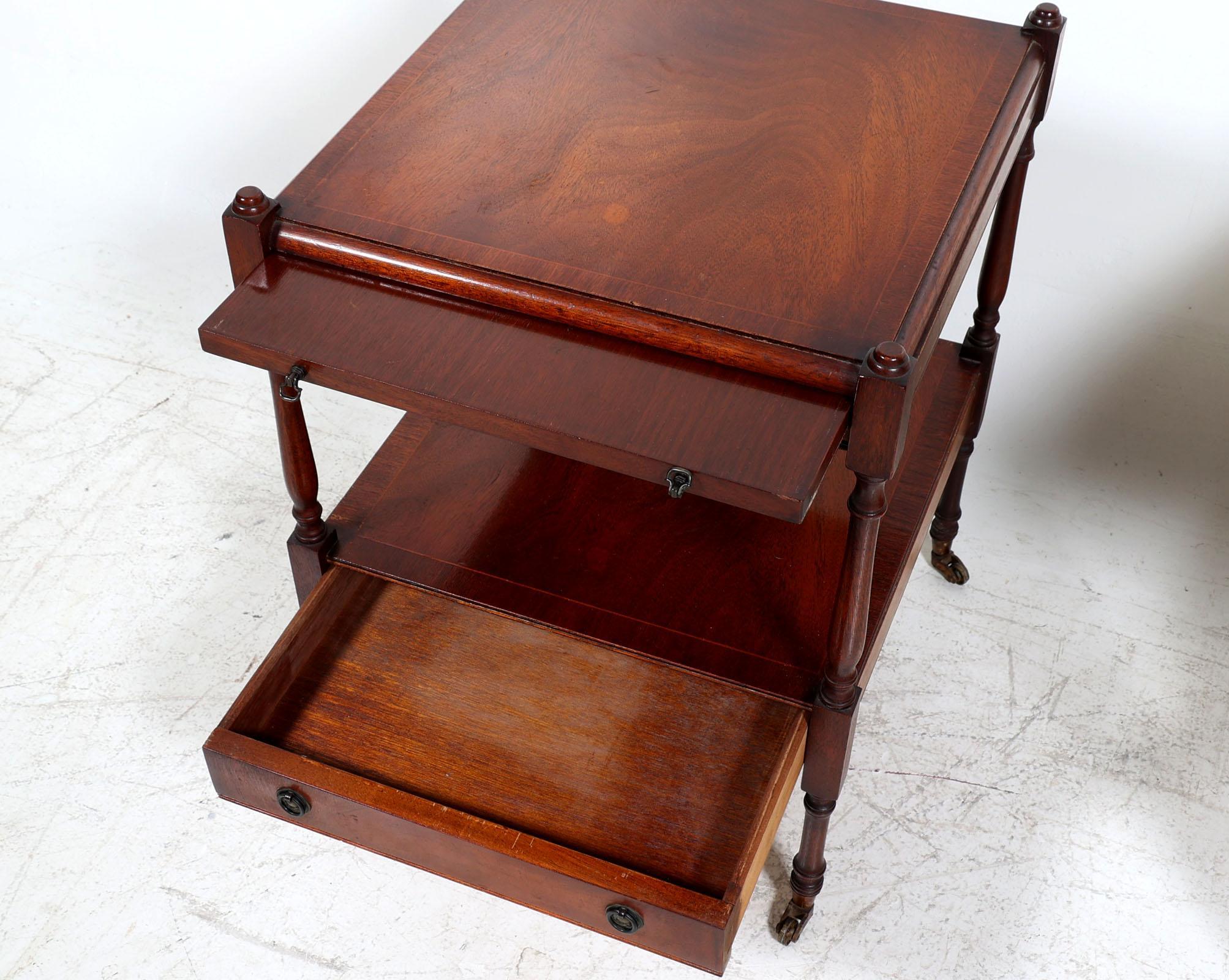 Set van 2 oude mahoniehouten bijzettafels, h.60 x b.44 x d.44 cm.