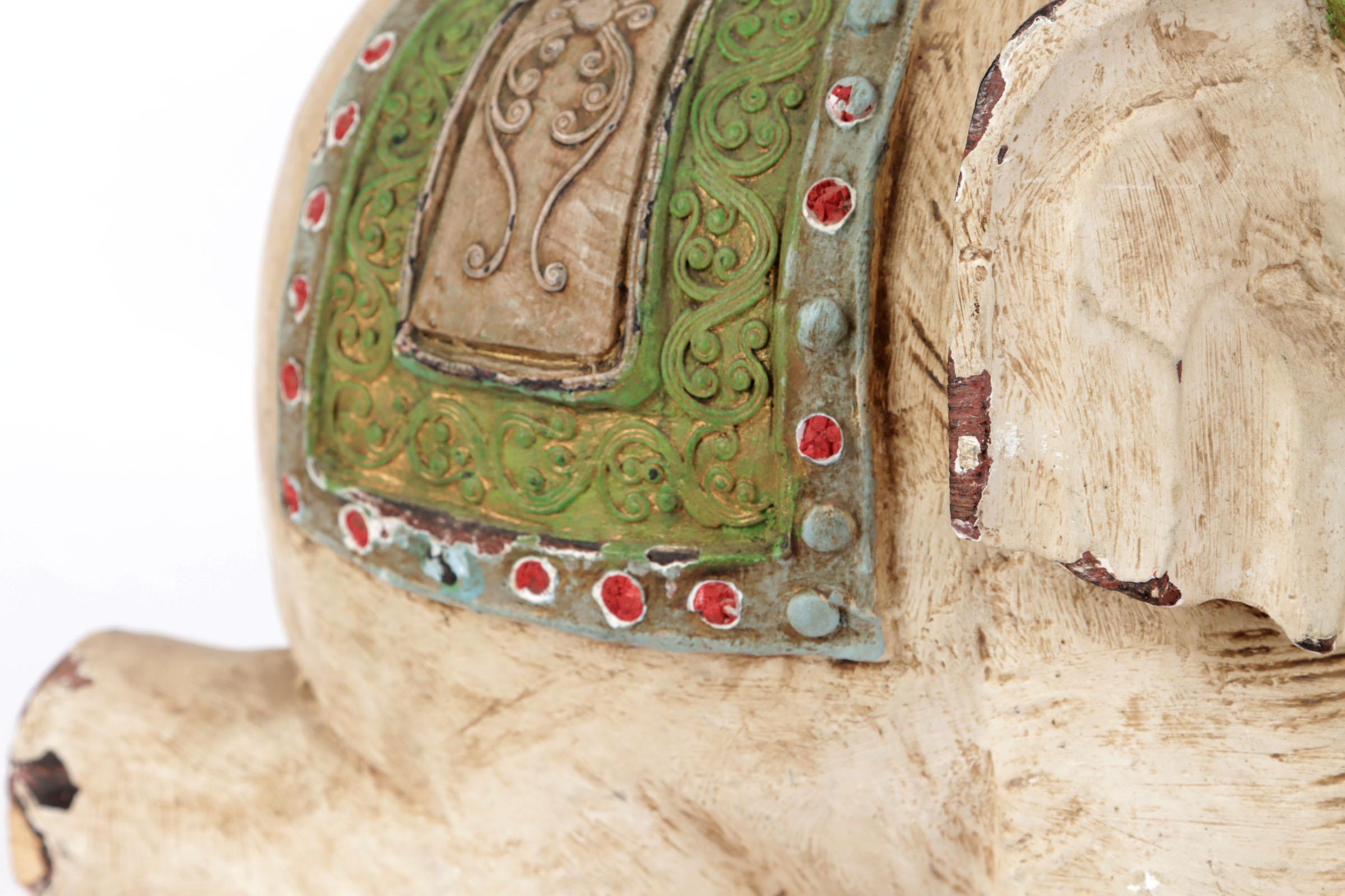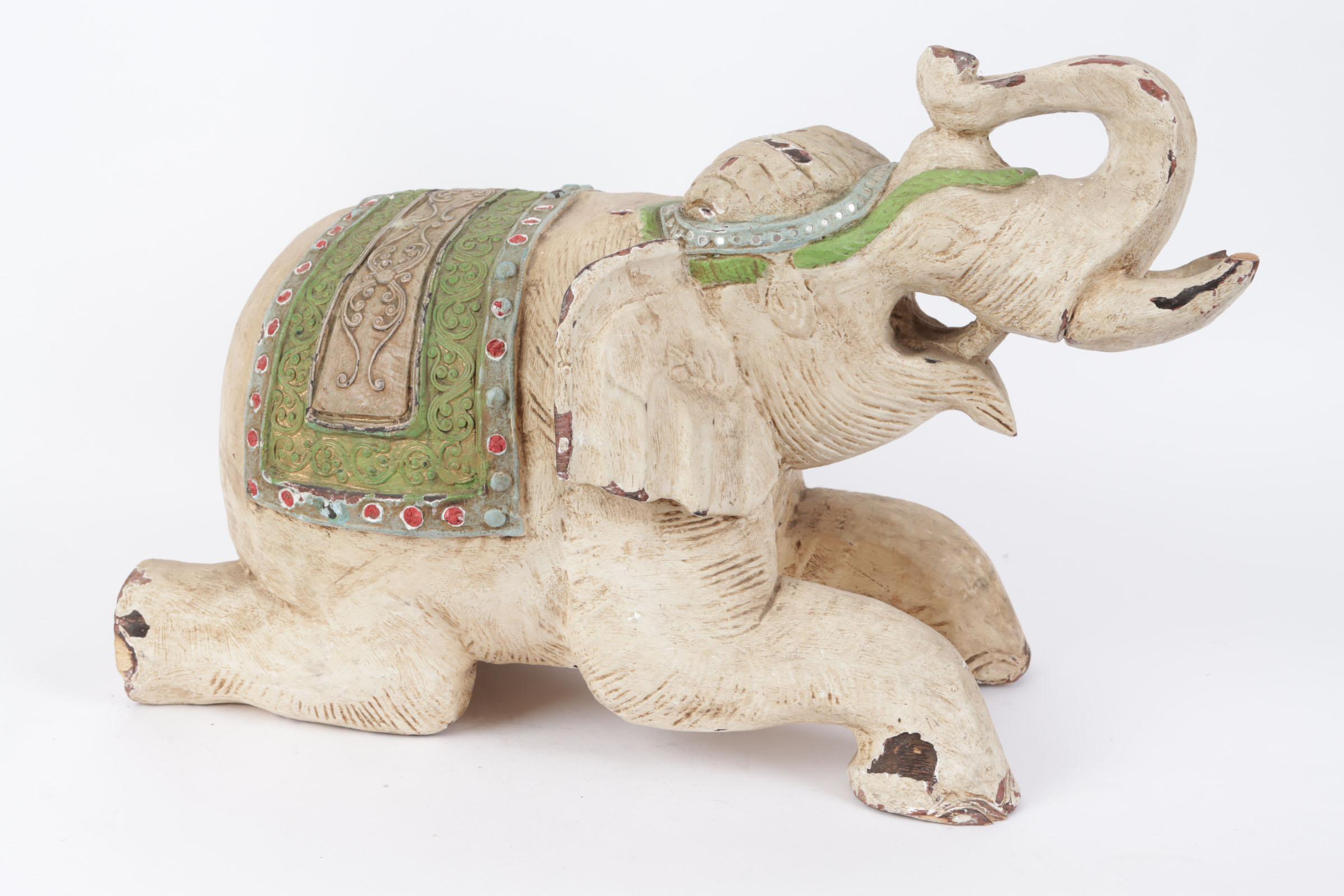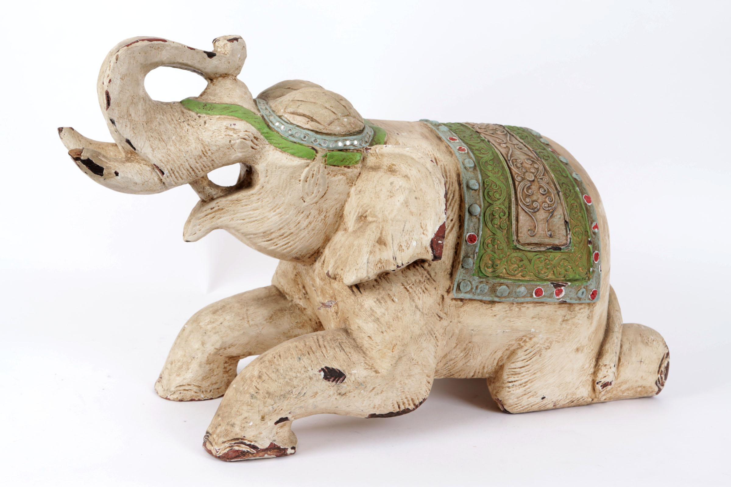 Gepolychromeerd houten beeld van een Olifant, h.34 cm.