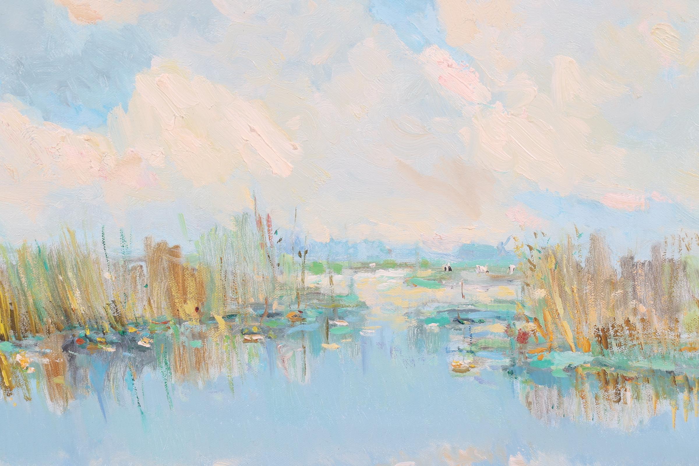Eef van Brakel (1930-2014), Landschap aan het water, olieverf op doek, 38,5 x 48 cm.
