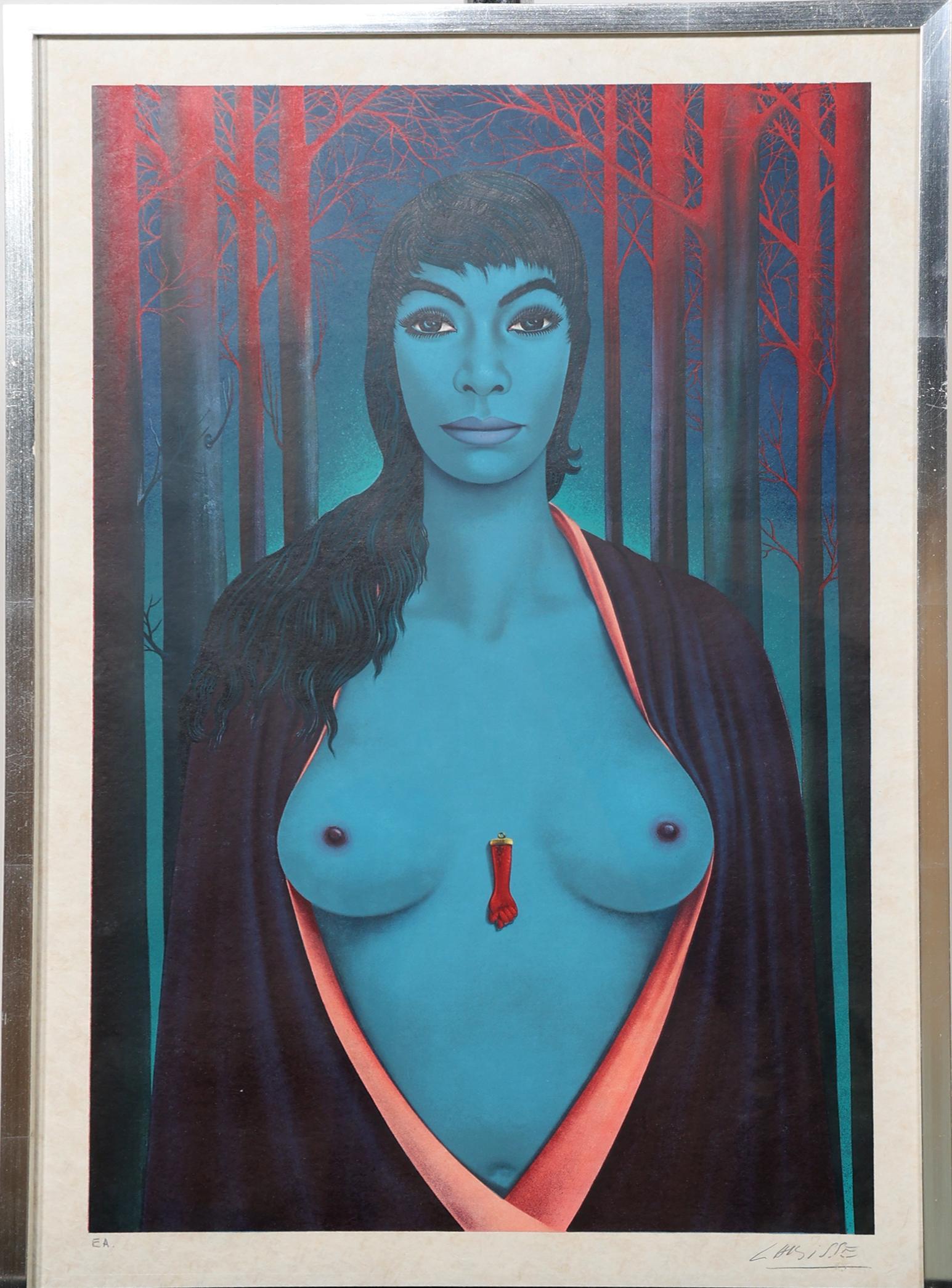 Felix Labisse (1905-1982), Lady in Blue, handgesigneerde lithografie, Epreuve d'artiste, 72 x 48 cm.