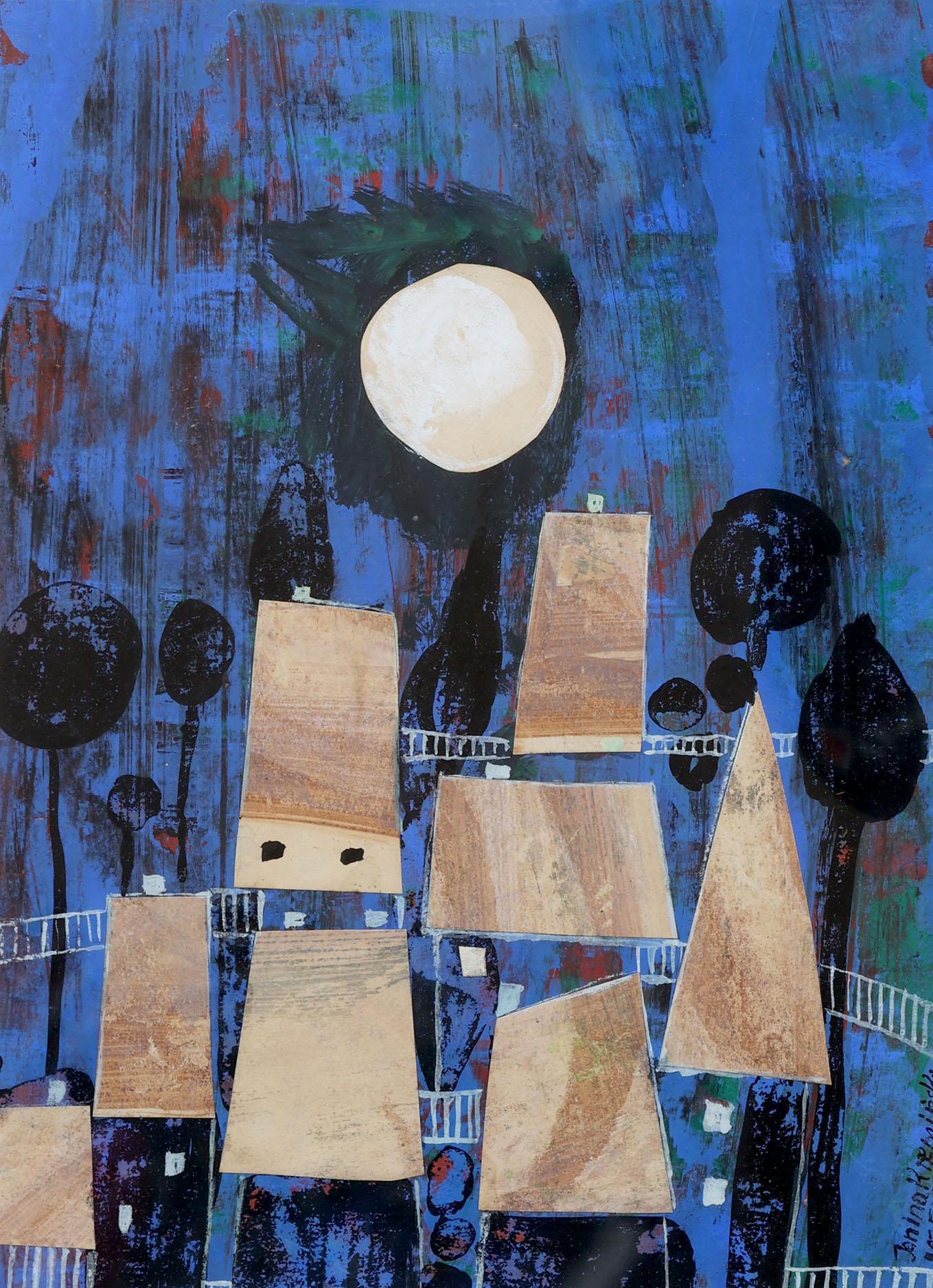 Janina Krzeminska (1927-1996), Abstracte collage, gouache, gesigneerd en gedateerd, 27 x 19,5 cm.