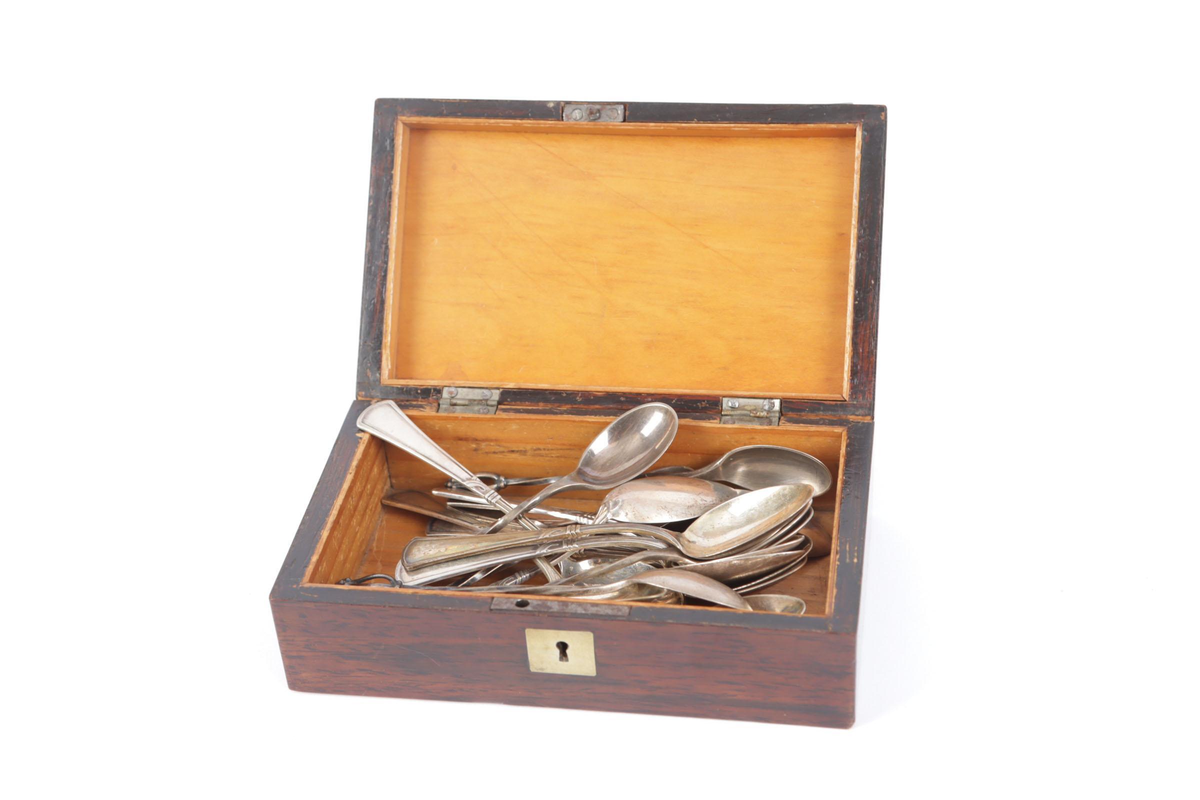 Antiek lepeldoosje met diverse zilveren lepeltjes
