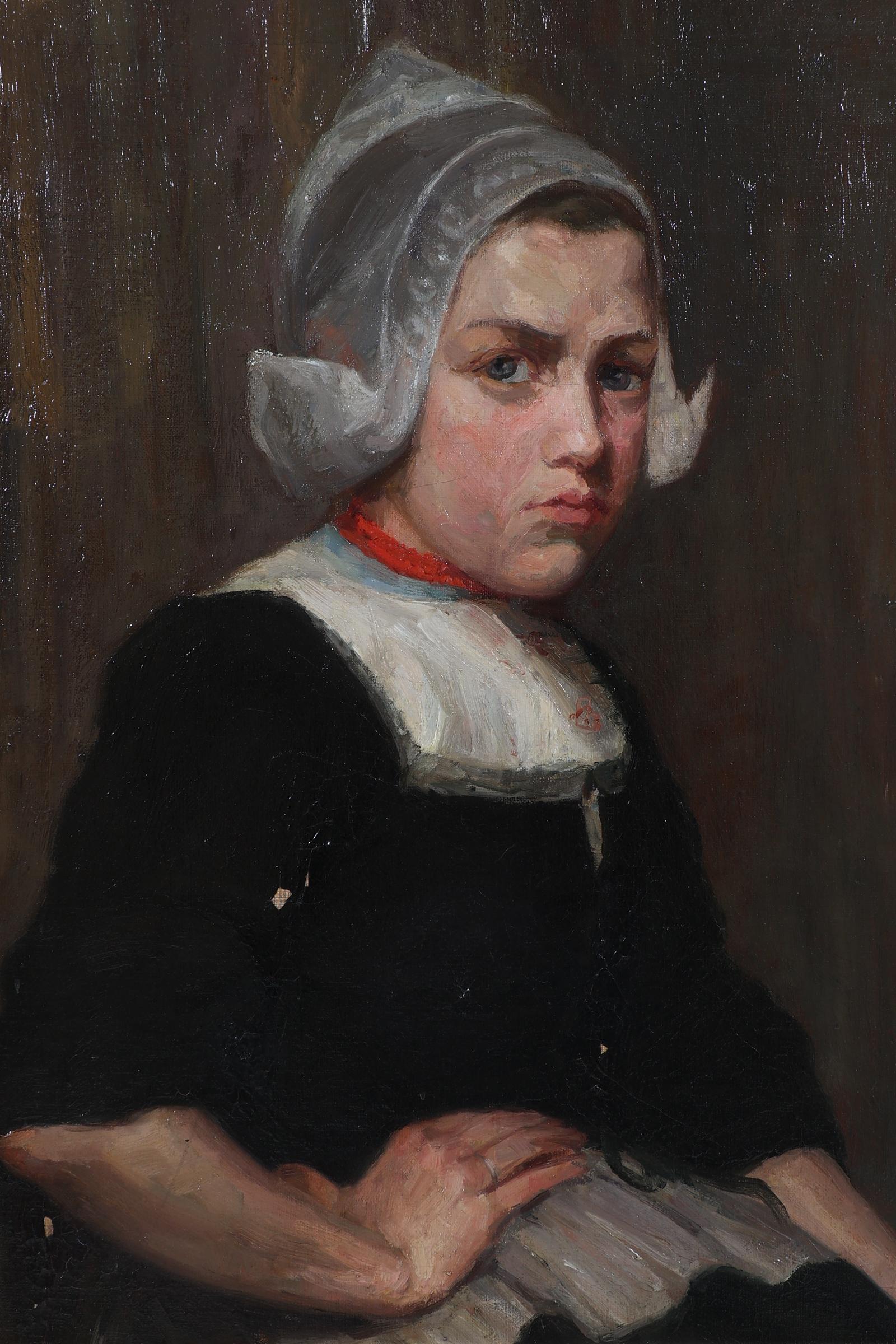 Jacoba Surie (1879-1970), Portret van een Volendams meisje, olieverf op doek, 66 x 55 cm. (kleine verfbeschadigingen)