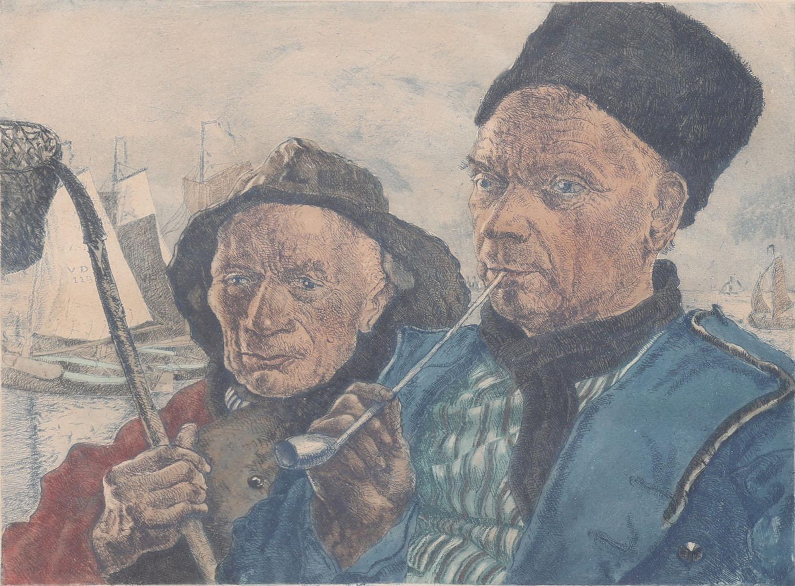 G. Hering, Volendamse vissers, kleurenets, 33 x 27 cm.