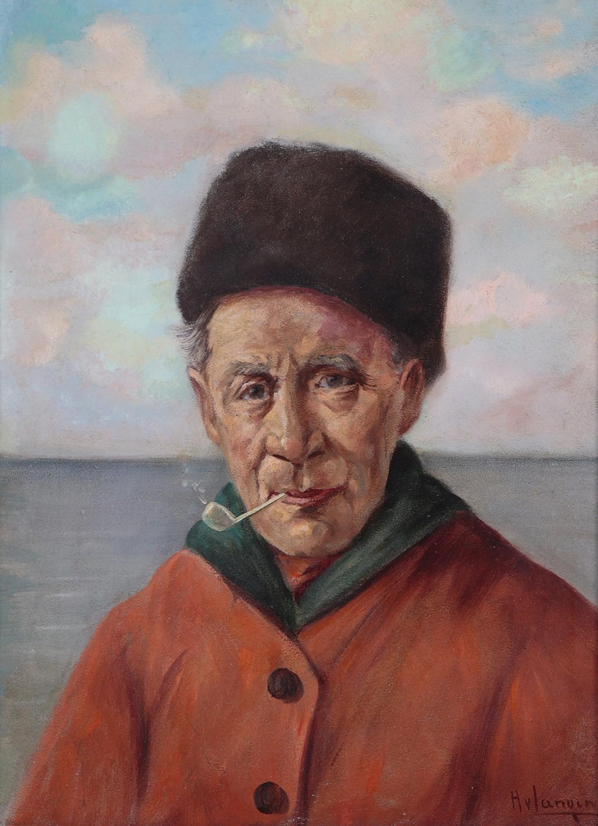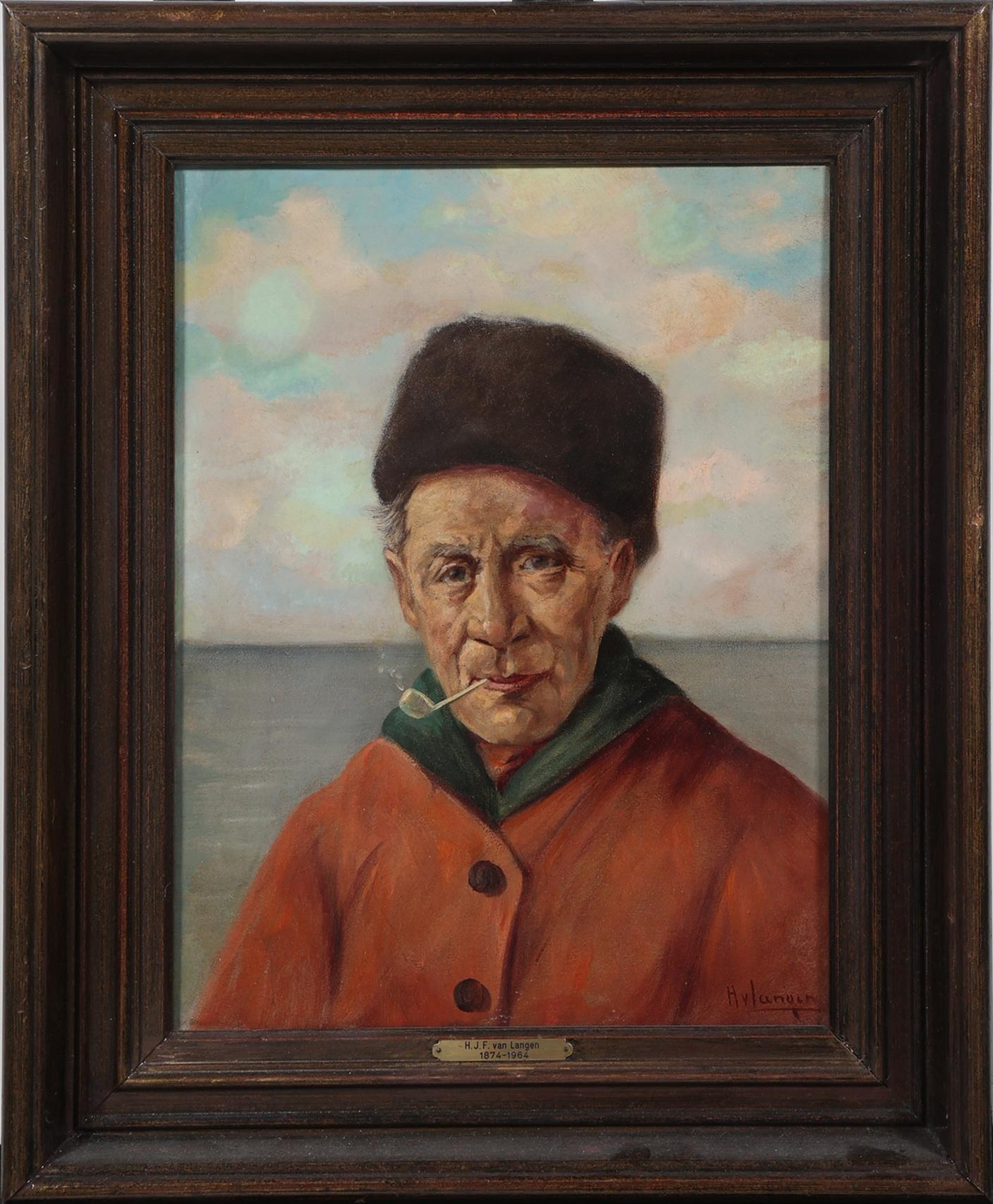 Hendrikus Johannes Franciscus van Langen (1874-1964), Portret van een Volendamse visser, olieverf op doek 40 x 30 cm.