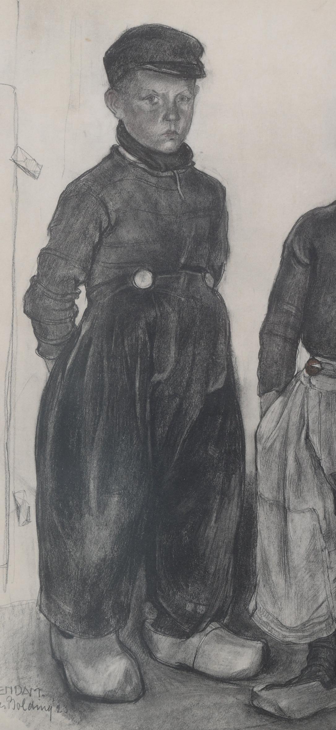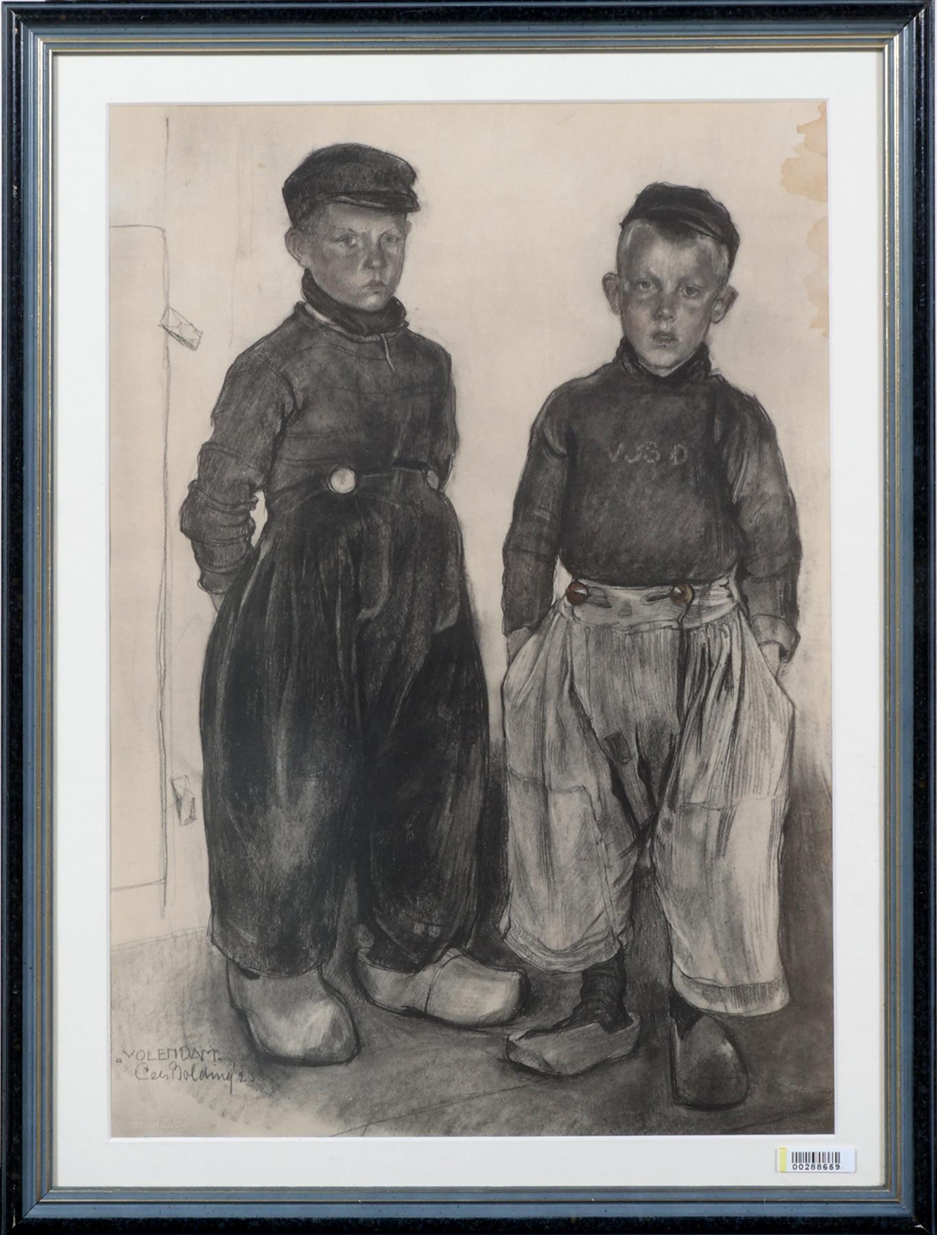 Kees Bolding, Twee Volendamse jongetjes, lithografie, 44 x 30 cm.