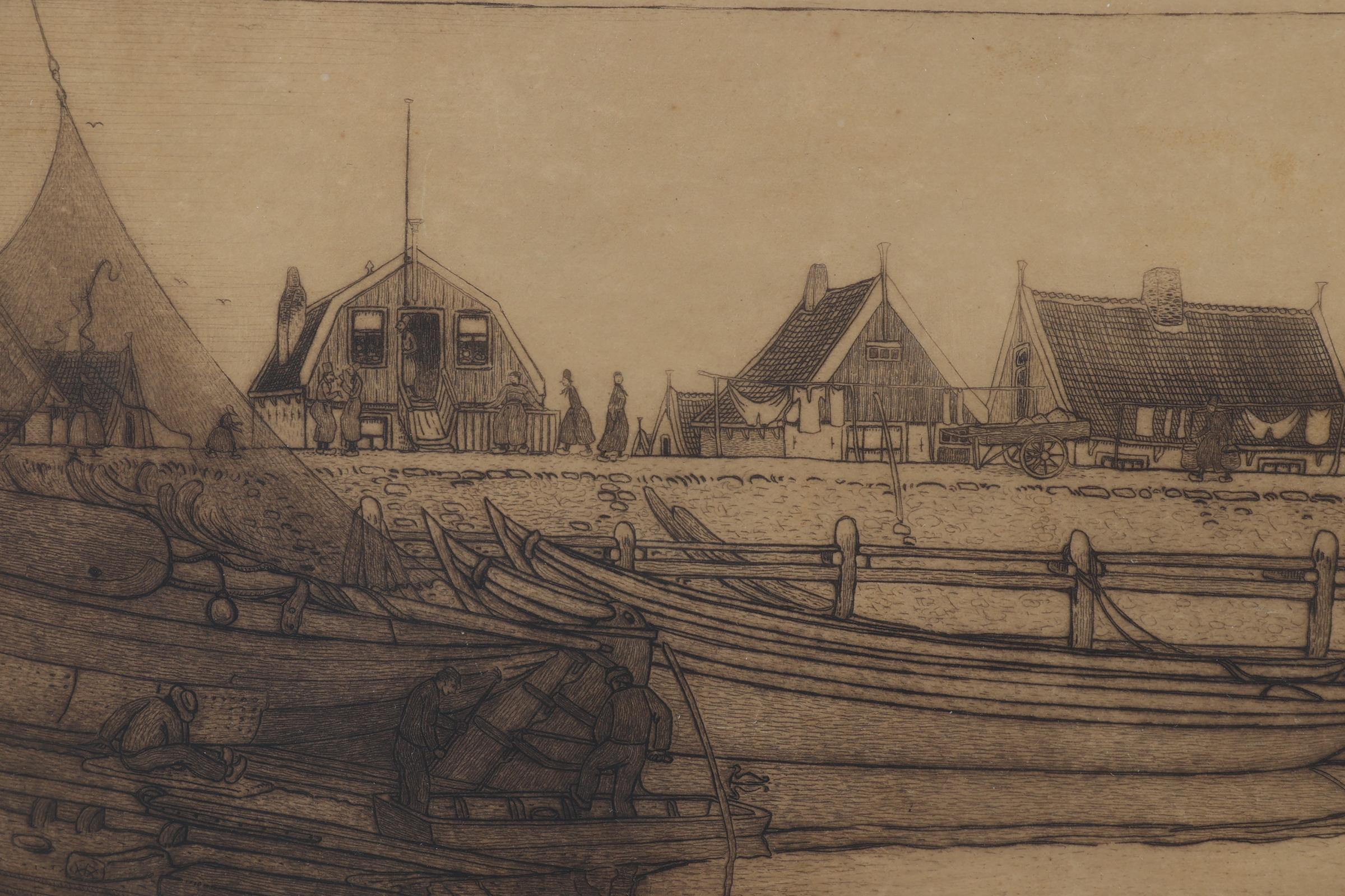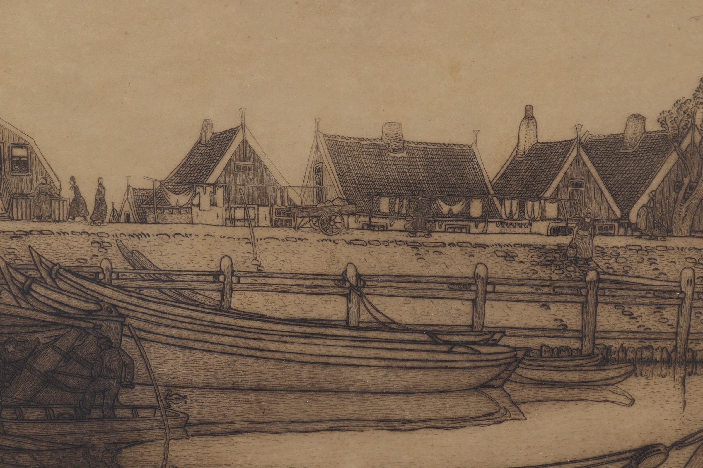 W. Nieuwenkamp, Zicht op Volendam, handgesigneerde drogenaald ets, 41 x 22 cm.