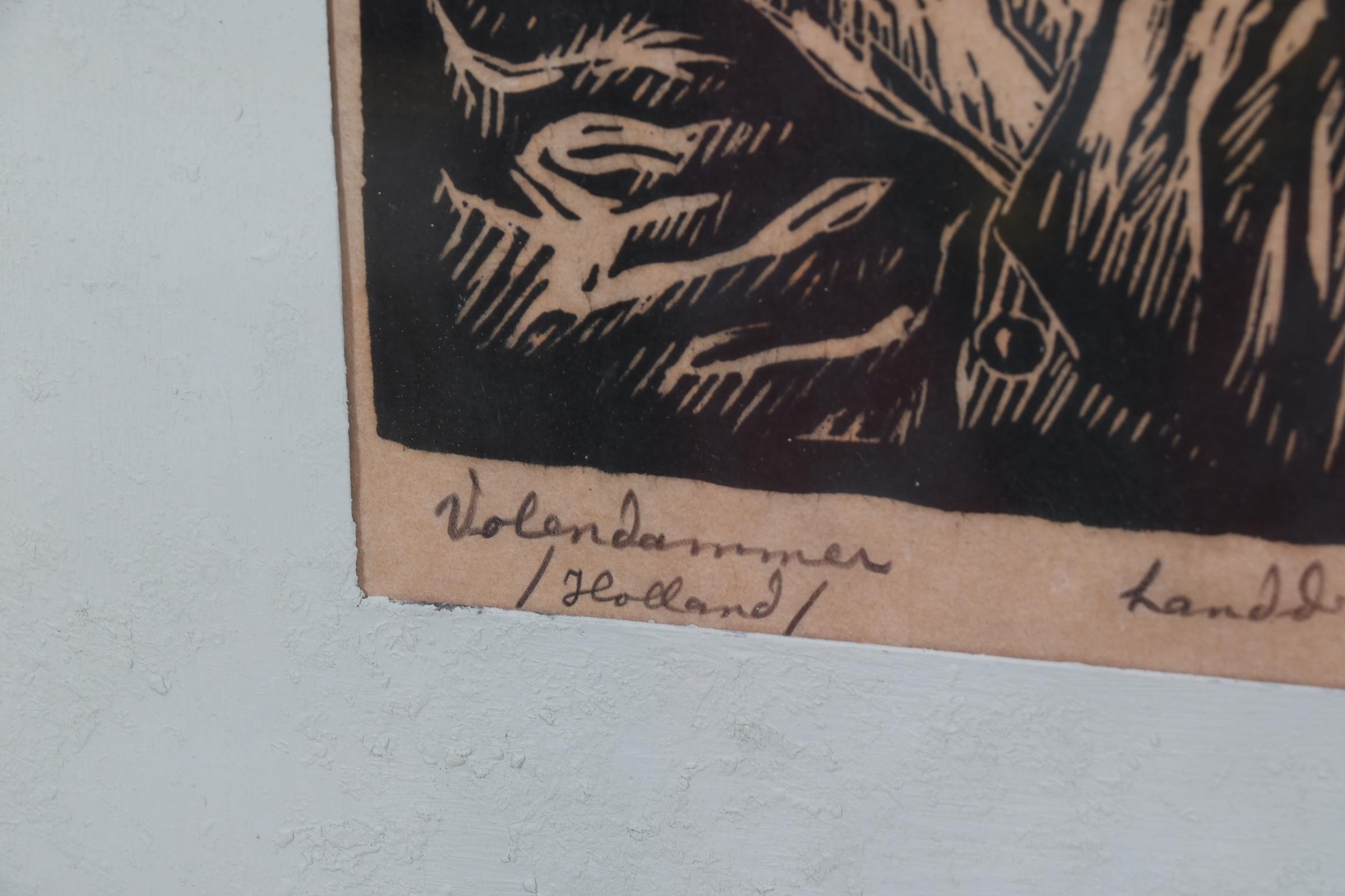 Frieda Rutgers van der Loeff-Mielziner (1877-1948), Portret van een Volendammer, handgesigneerde houtsnede, 35 x 22 cm.